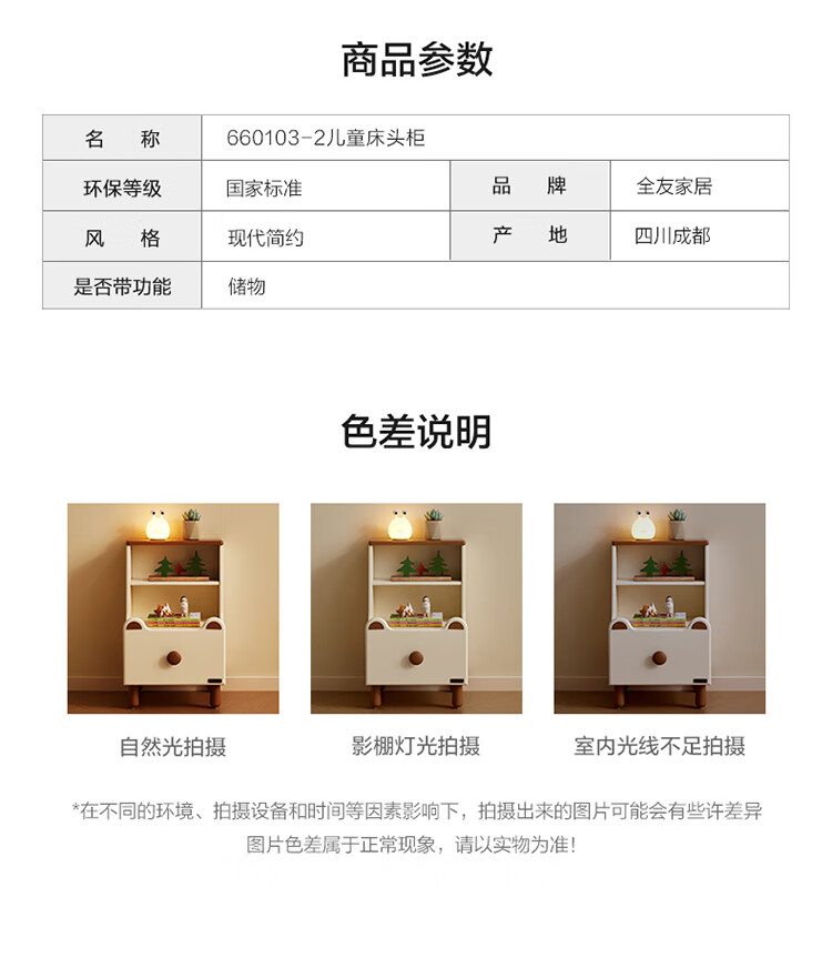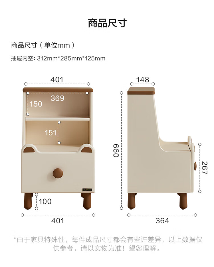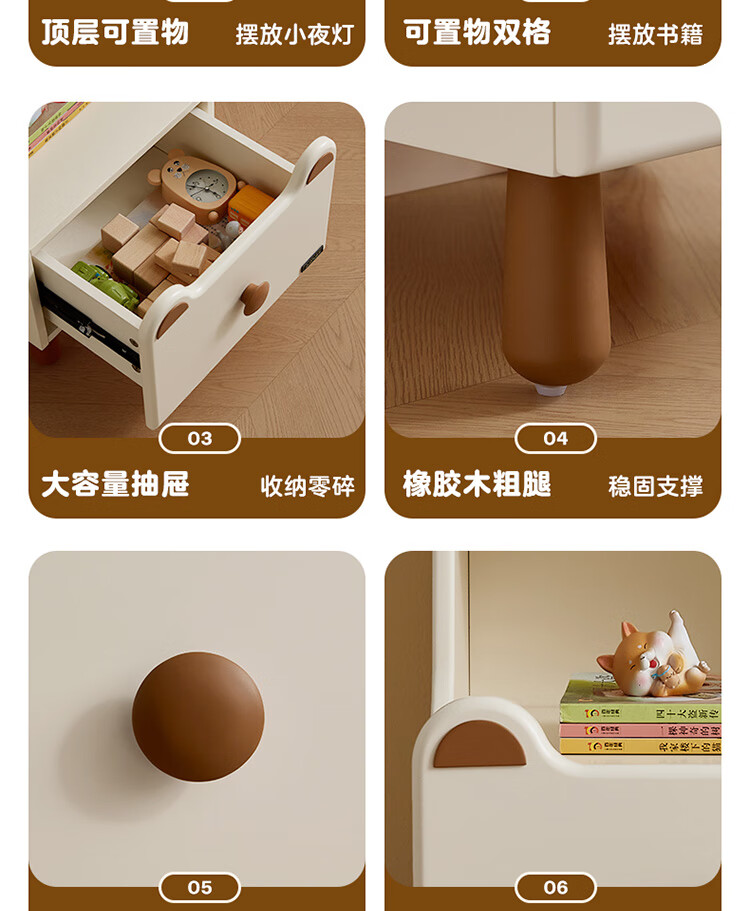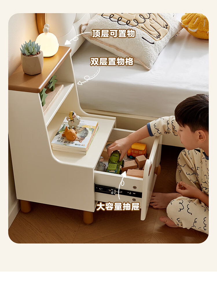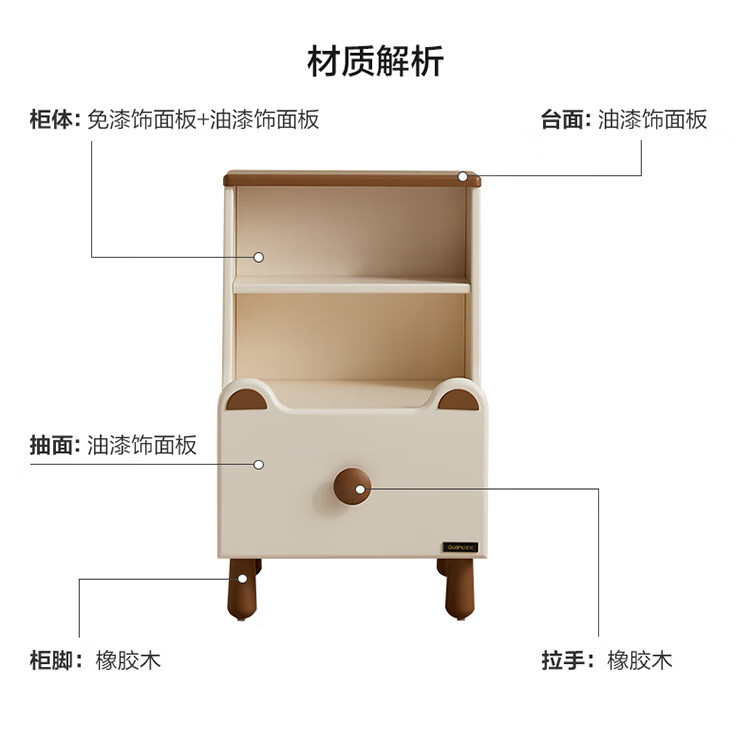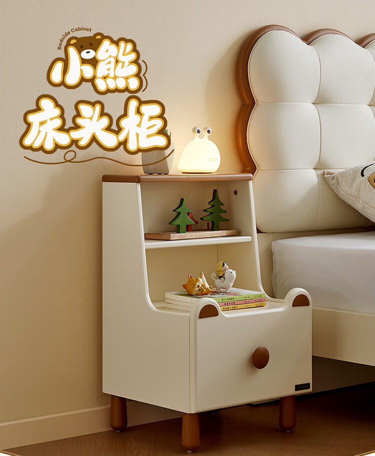 全友家居现代简约床头柜儿童房小柜子收纳置物柜家具抽屉式家具边柜子 小熊床头柜*1
