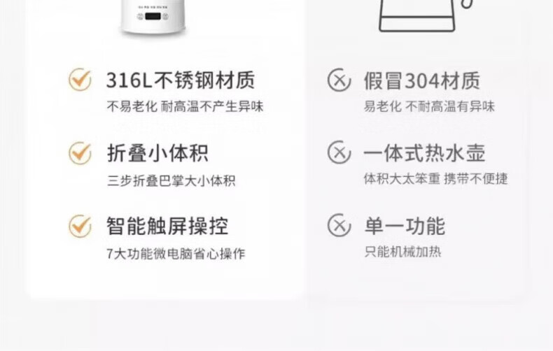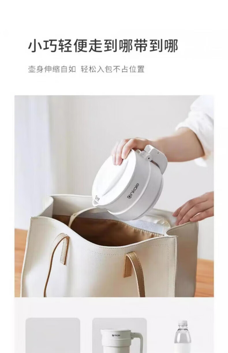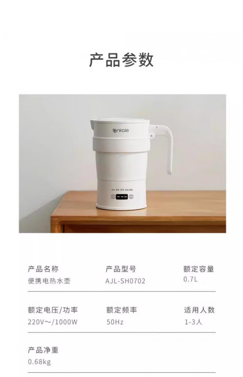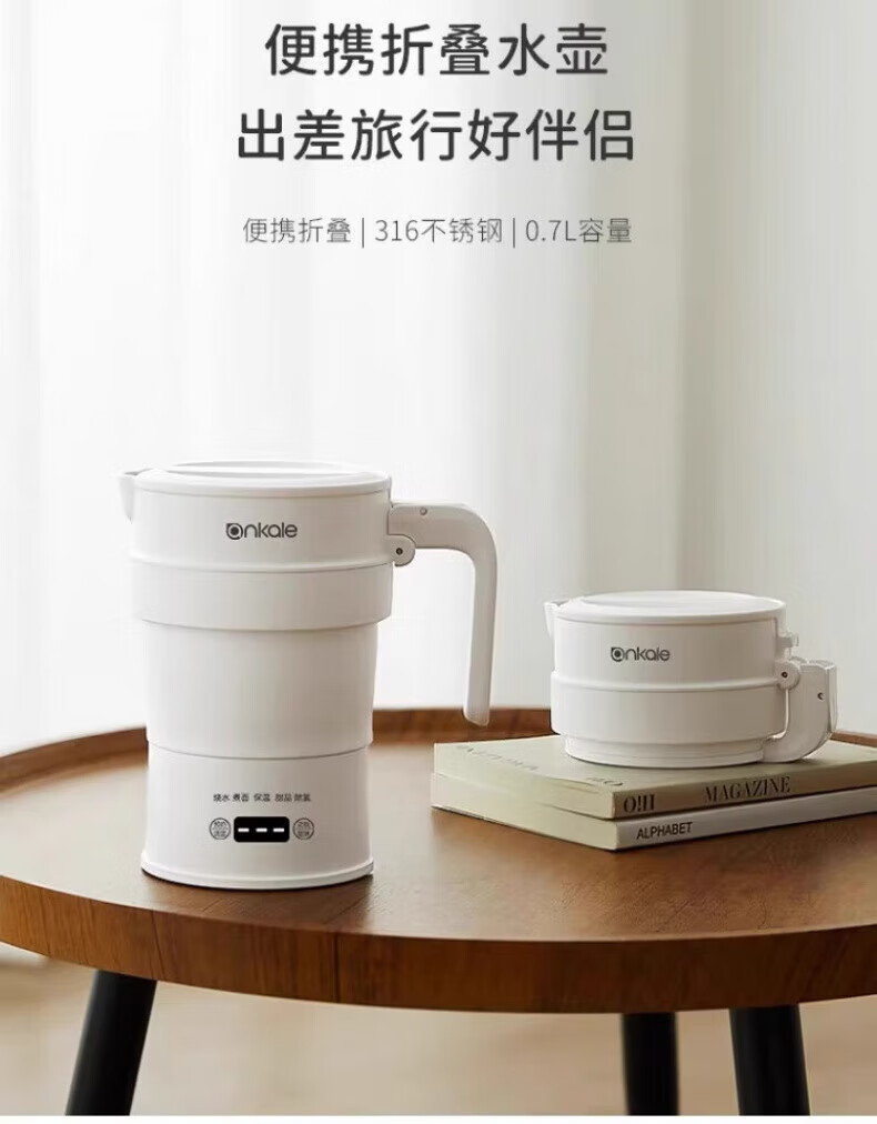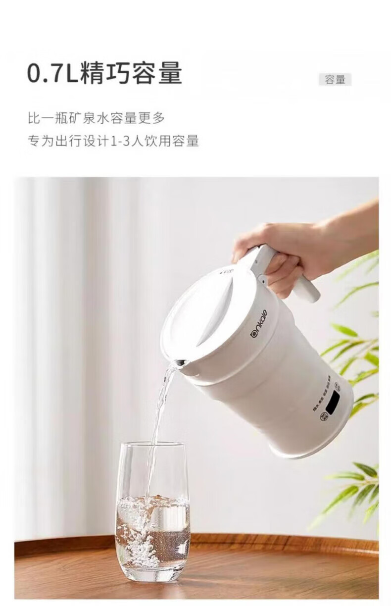 DEATKN德国高端折叠烧水壶便携式316不锈钢水壶户外旅行出差宿舍 0.7L 白色-可折叠便携[316不锈钢]