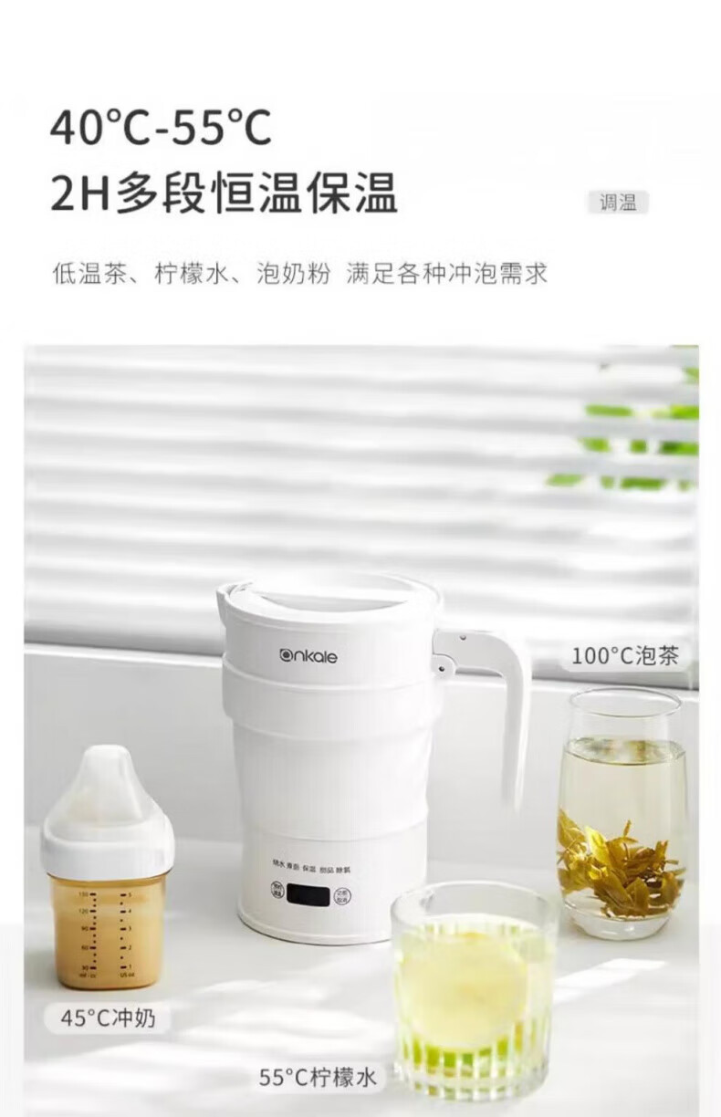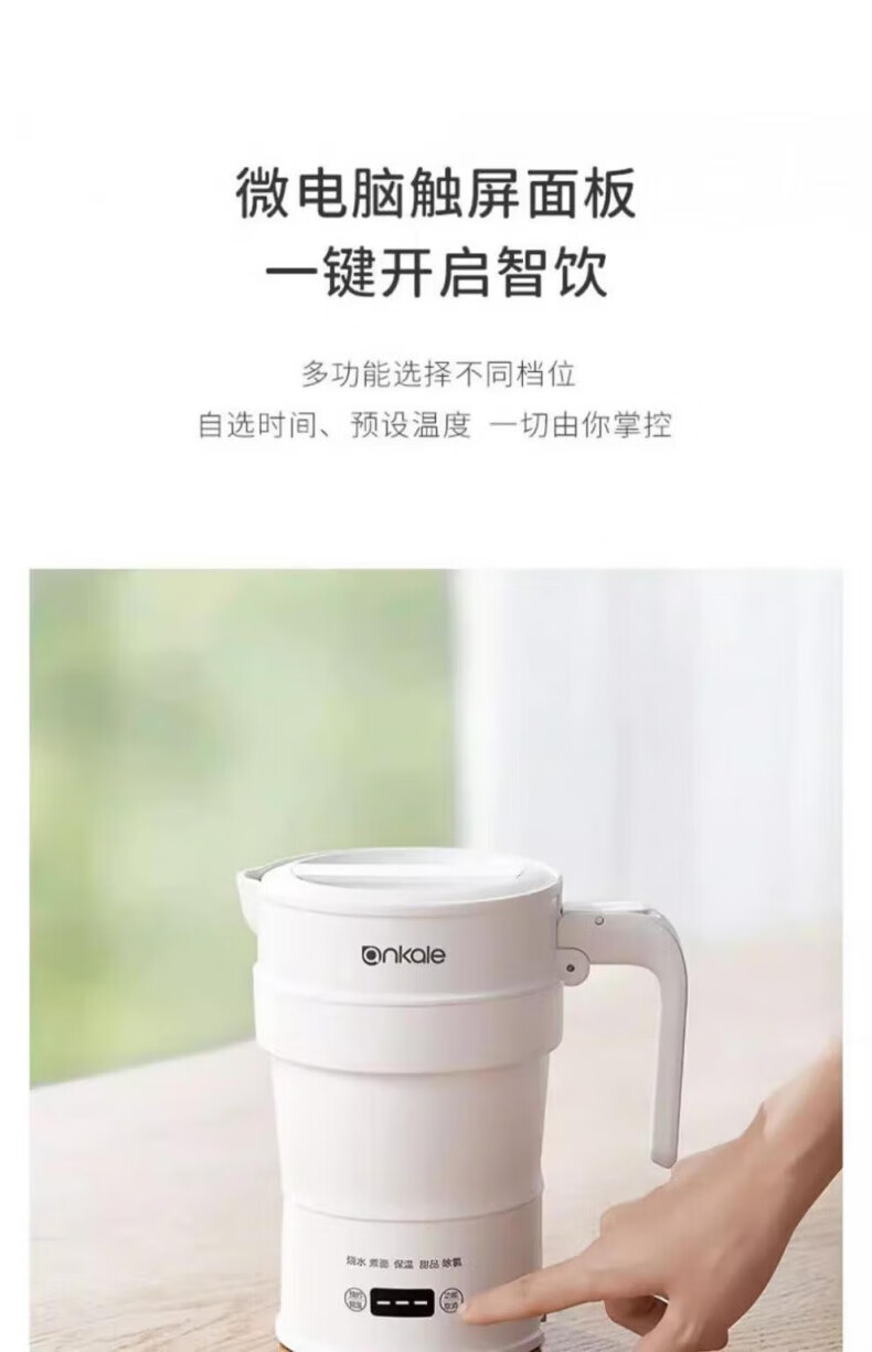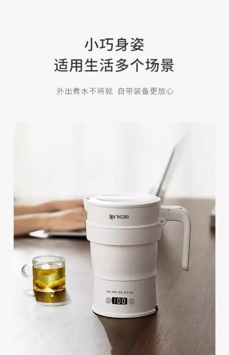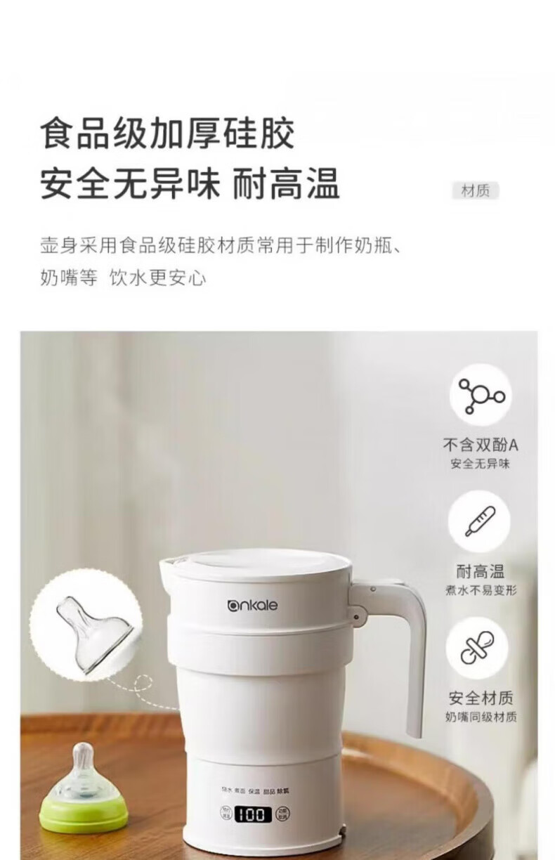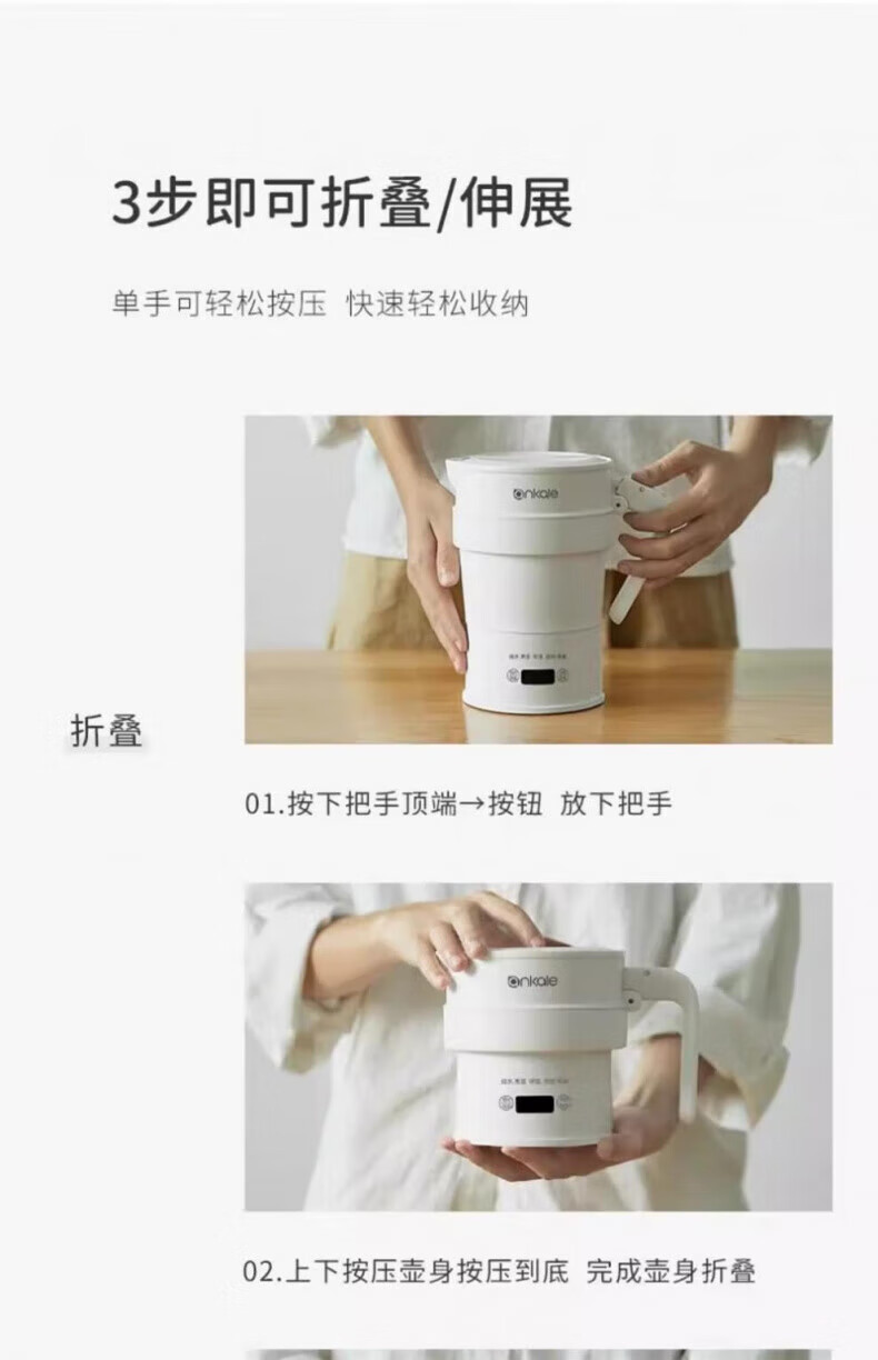 DEATKN德国便携式烧水壶电水壶折叠烧水壶旅行出差小型保温烧水壶宿 0.6L [开关款+折叠水杯]婴儿级