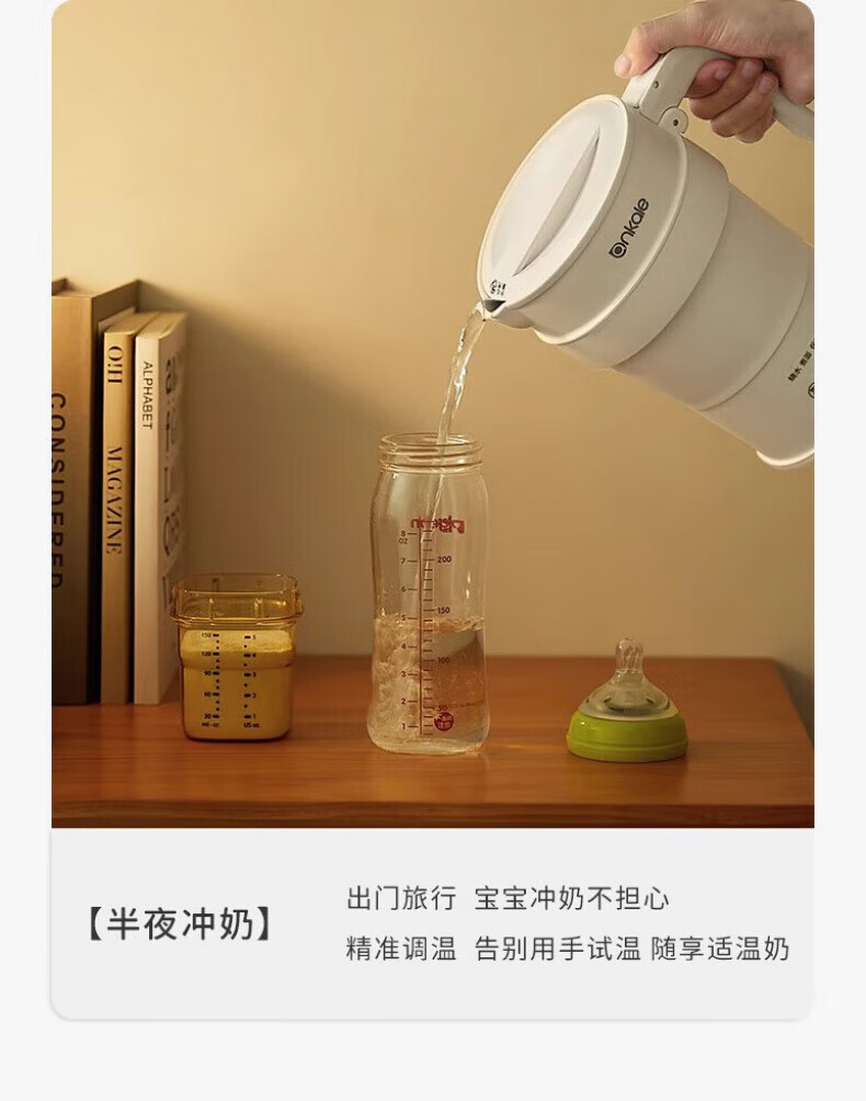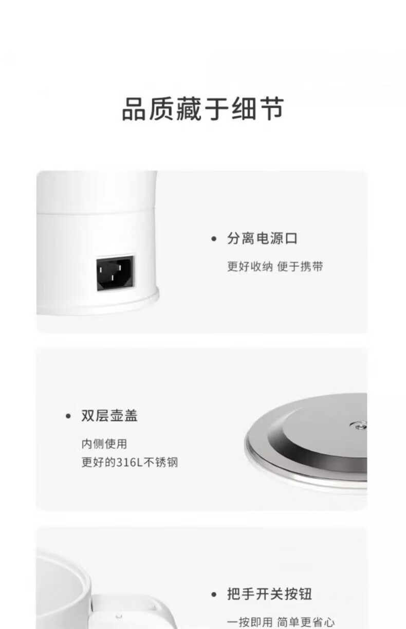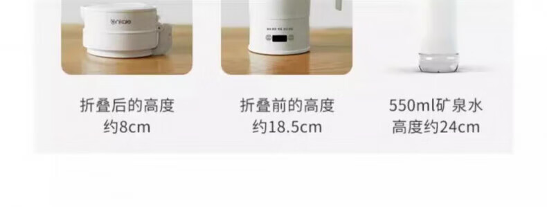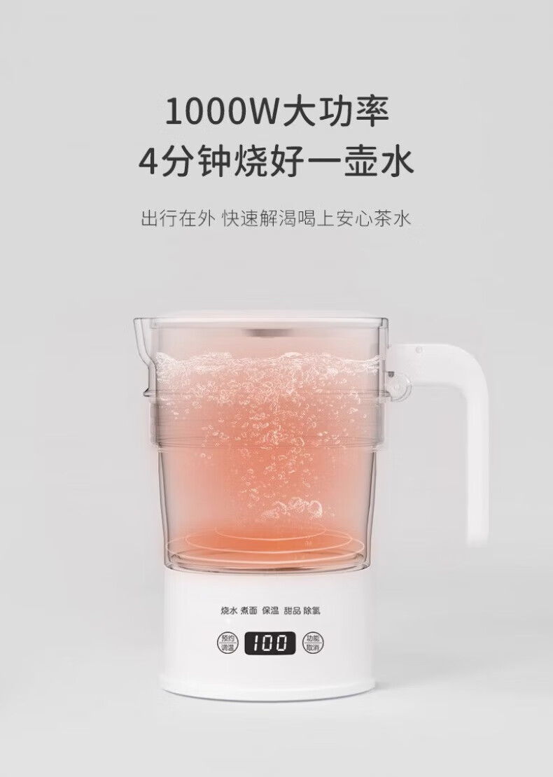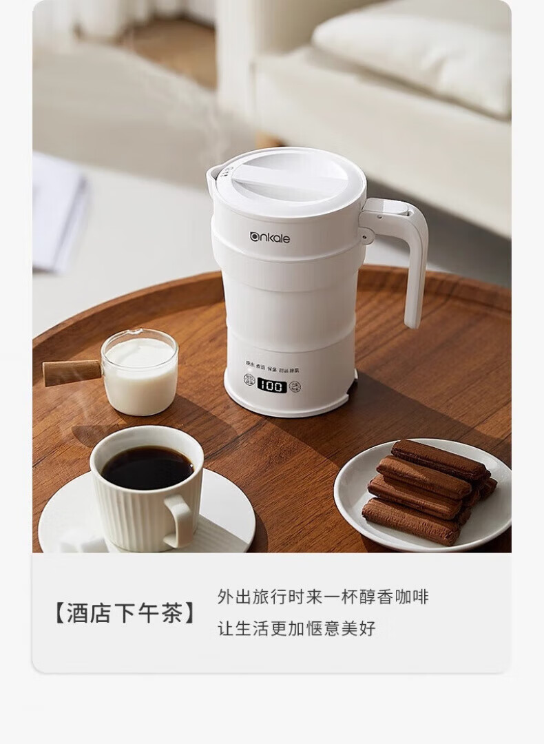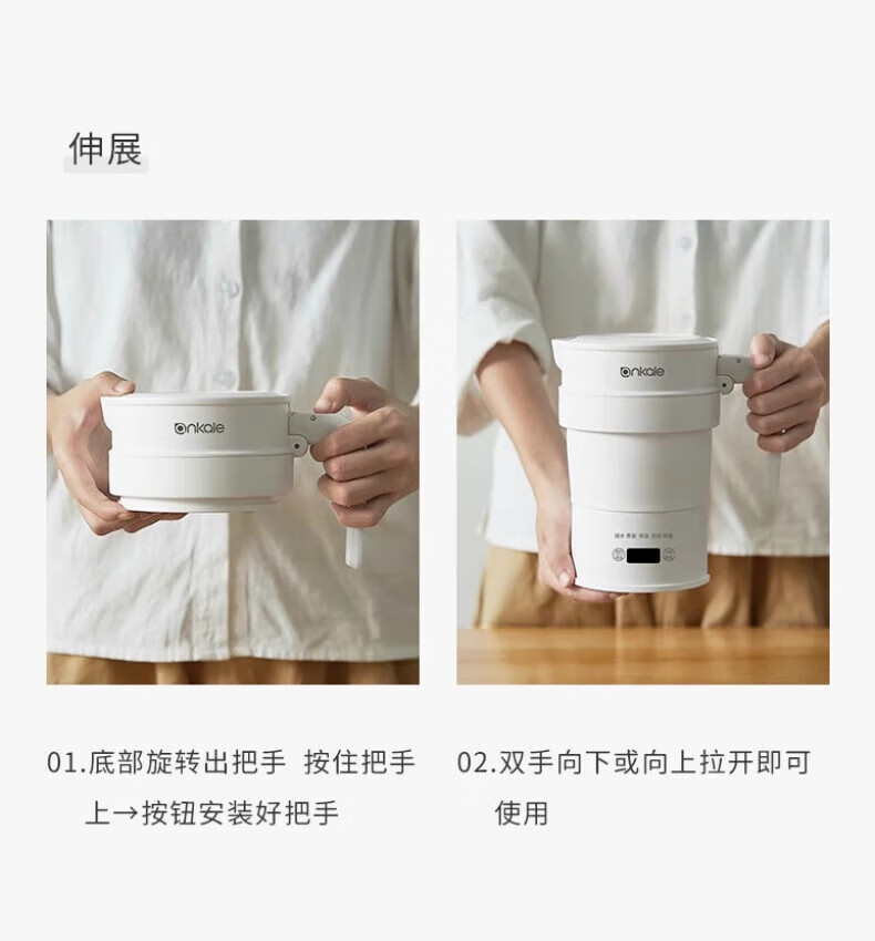 DEATKN德国便携式烧水壶电水壶折叠烧水壶旅行出差小型保温烧水壶宿 0.6L [开关款+折叠水杯]婴儿级