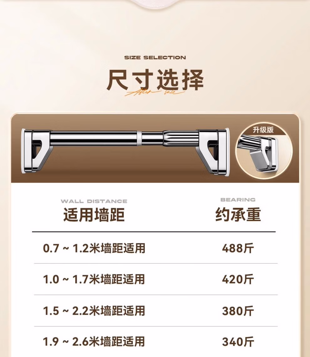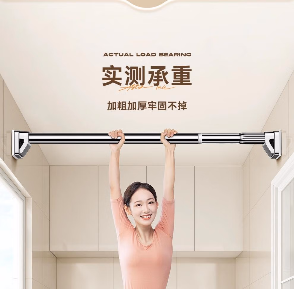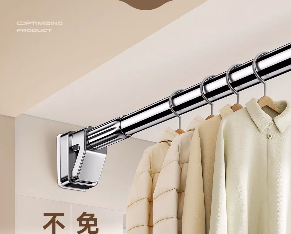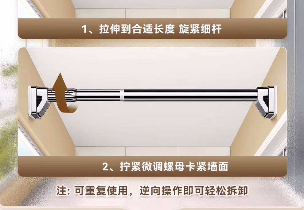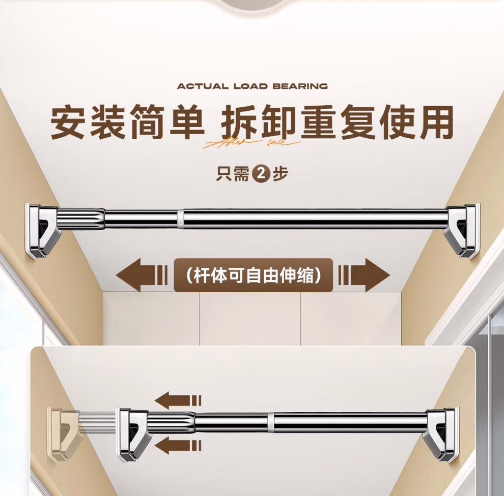 DEATKN德国晾衣杆伸缩杆免打孔秒安装窗帘杆浴帘杆不锈钢挂衣固定式 磨砂黑【33管径】升级吸盘款-承重翻倍 可伸缩适用0.4-0.5米墙距【秒安装】