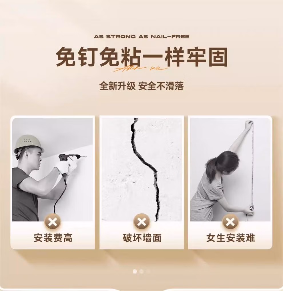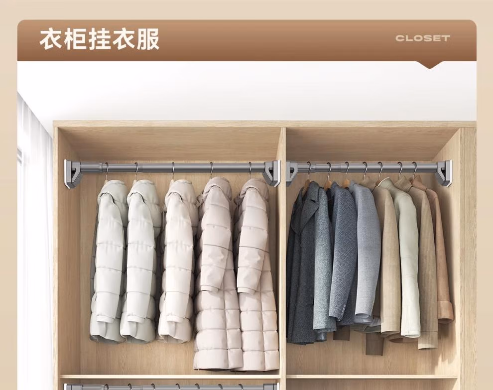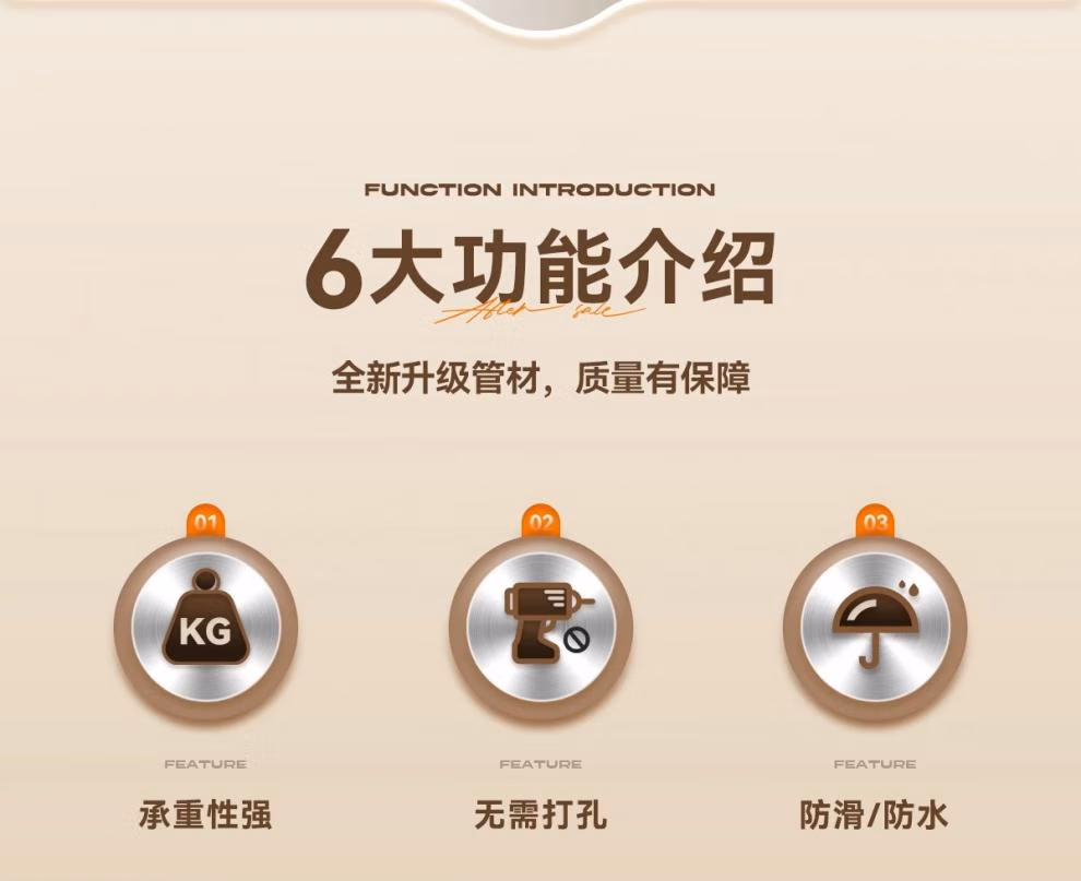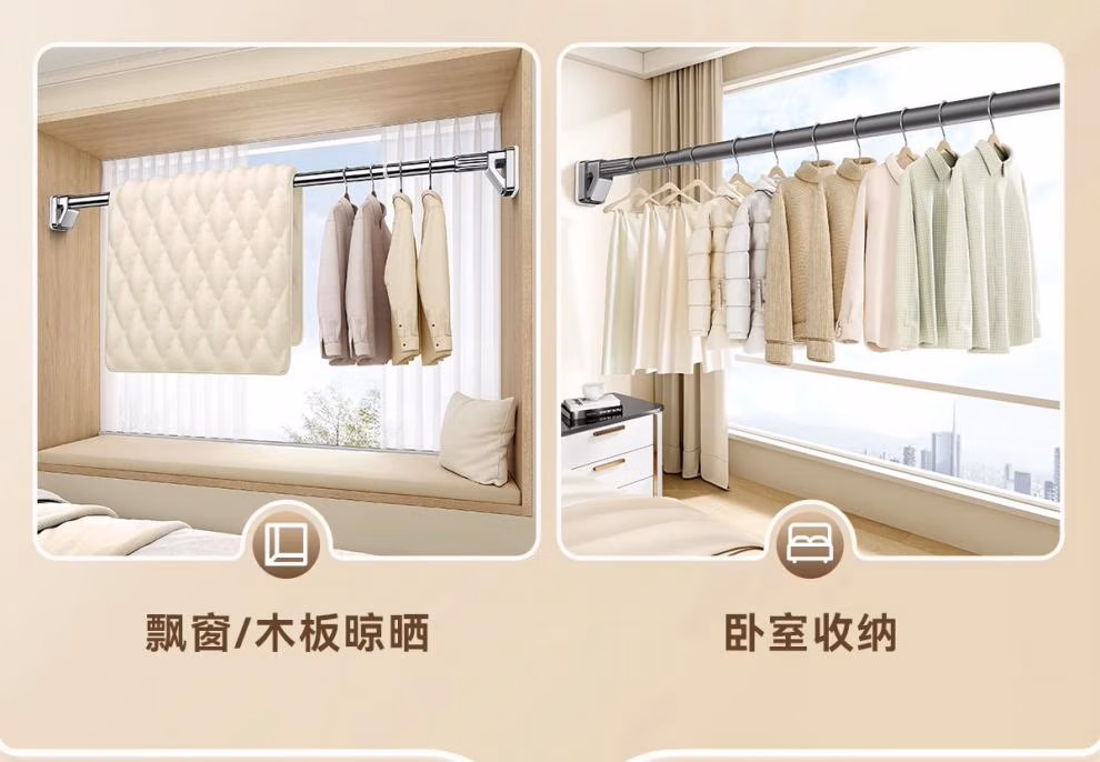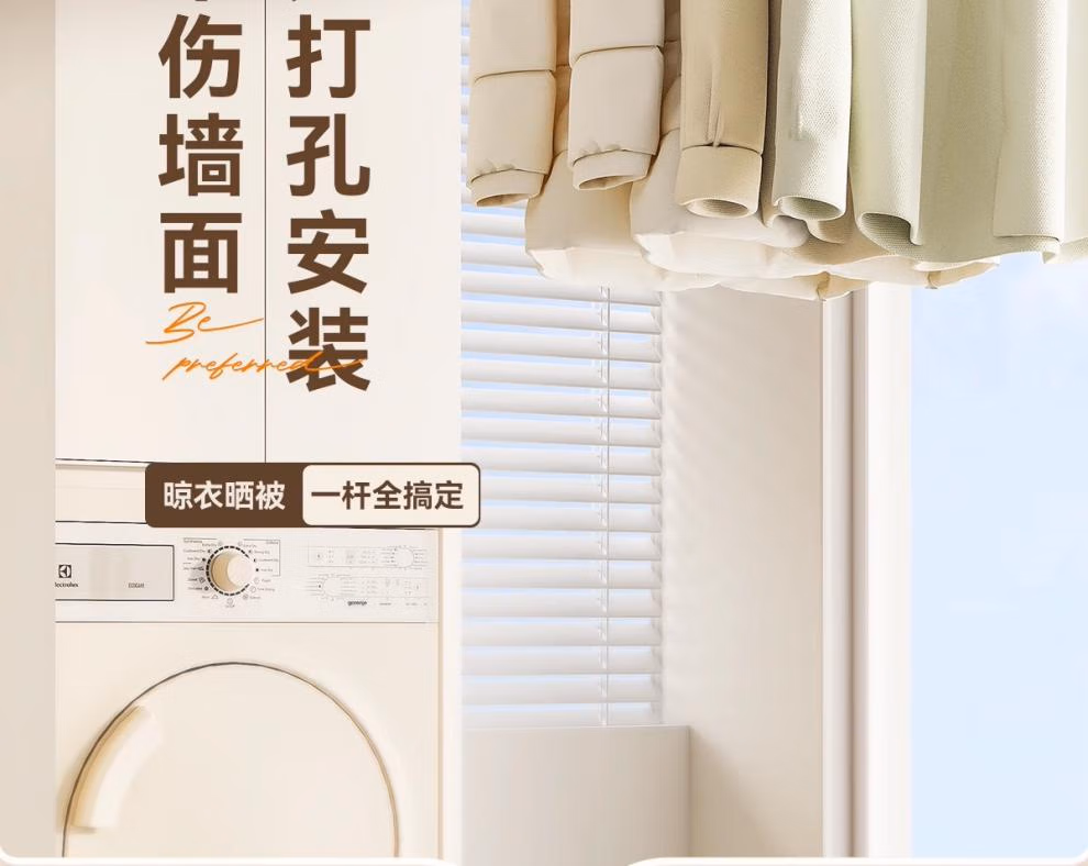 DEATKN德国晾衣杆伸缩杆免打孔秒安装窗帘杆浴帘杆不锈钢挂衣固定式 磨砂黑【33管径】升级吸盘款-承重翻倍 可伸缩适用0.4-0.5米墙距【秒安装】