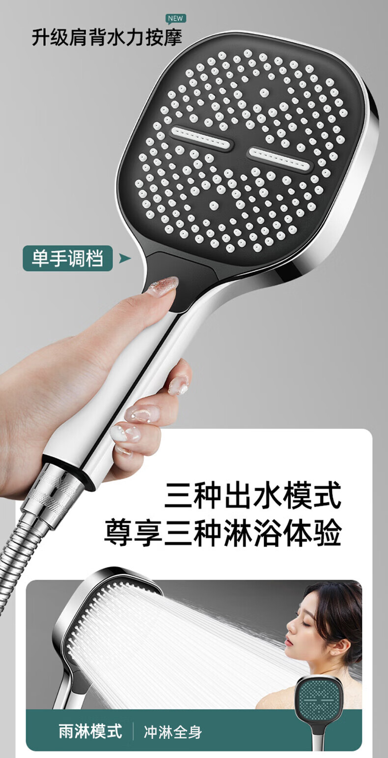 九牧(JOMOO)钢琴键花洒淋浴套装置物喷枪无顶喷分体淋浴花洒家用花洒35336 【经典银】