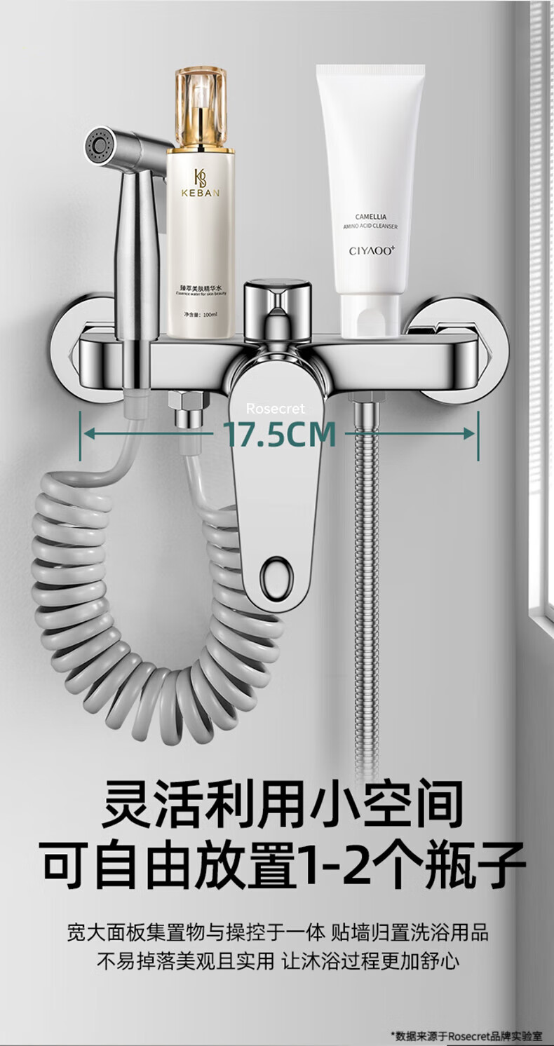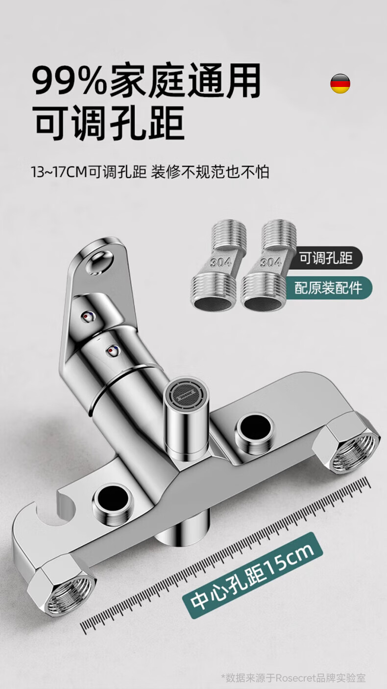 Rosecret【德国】淋浴花洒套装全铜主体家用浴室卫生间洗澡混水阀花洒全套 【三档花洒+喷枪淋浴花洒套装】亮银色 大流量出水丨自由升降杠丨配安装件包