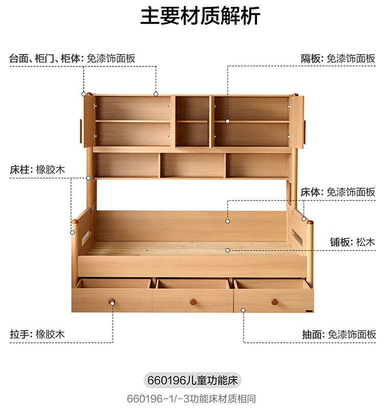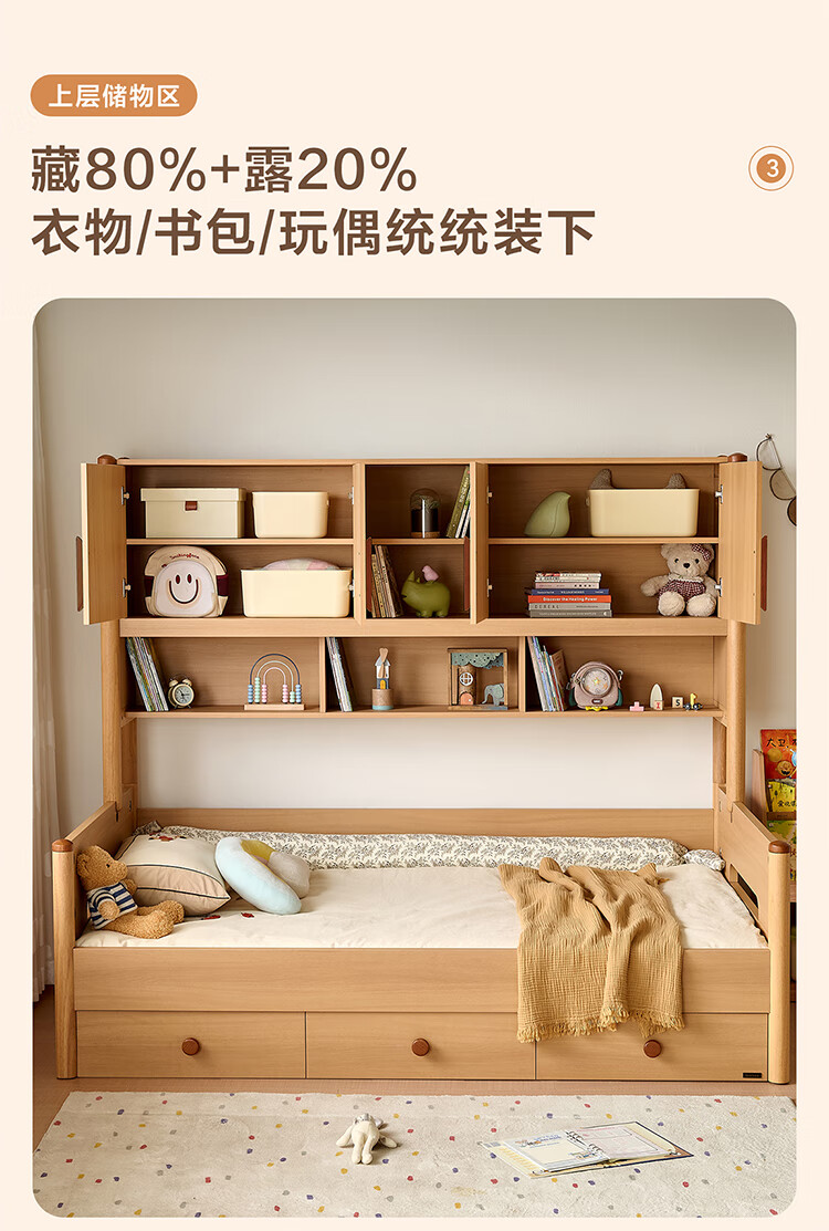 全友家居原木风儿童床柜子一体组合床1.5米储物床小户型单人榻榻米床 【原木色】功能床 1.2×2米【床柜一体 多元收纳】