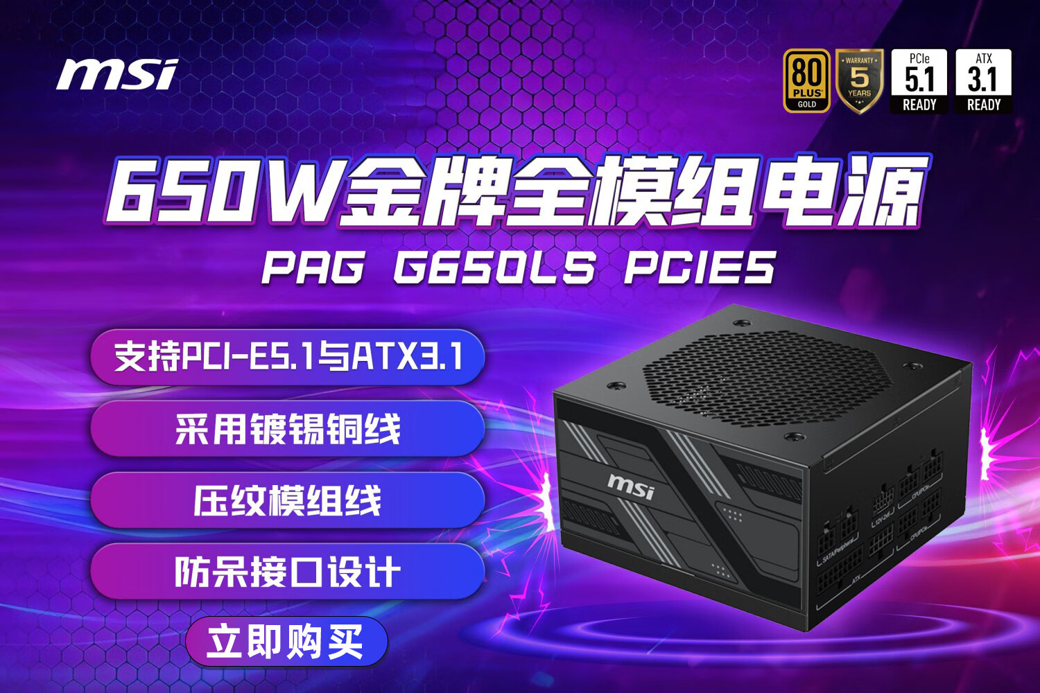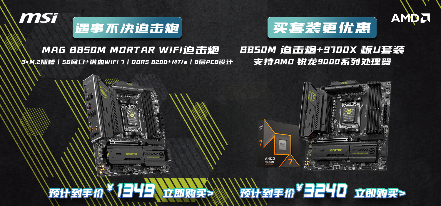 微星(MSI)B850M GAMING PLUS WIFI7主板 5G网口 支持CPU 9800X3D/7800X3D/9700X/9600X/(AMD B850/AM5接口)