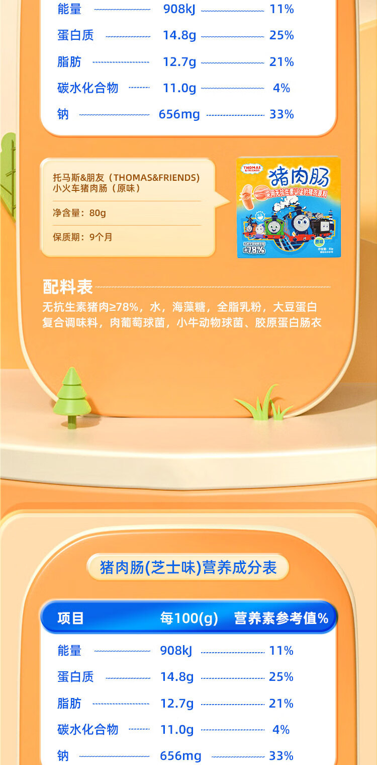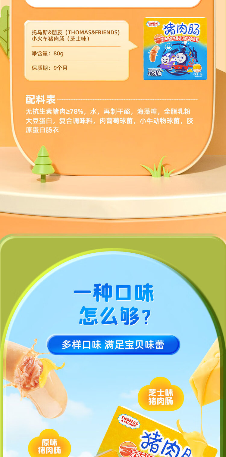 小火车(THOMAS & FRIENDS)儿童宝宝零食无抗生素即食解馋猪肉肠原味80g