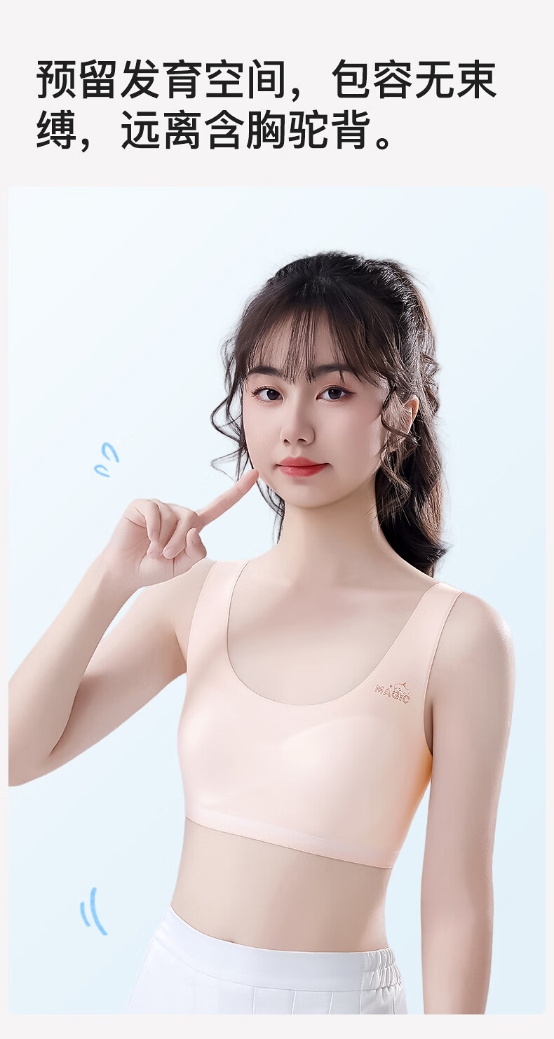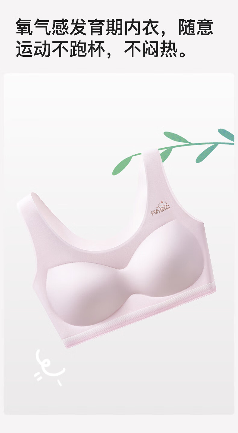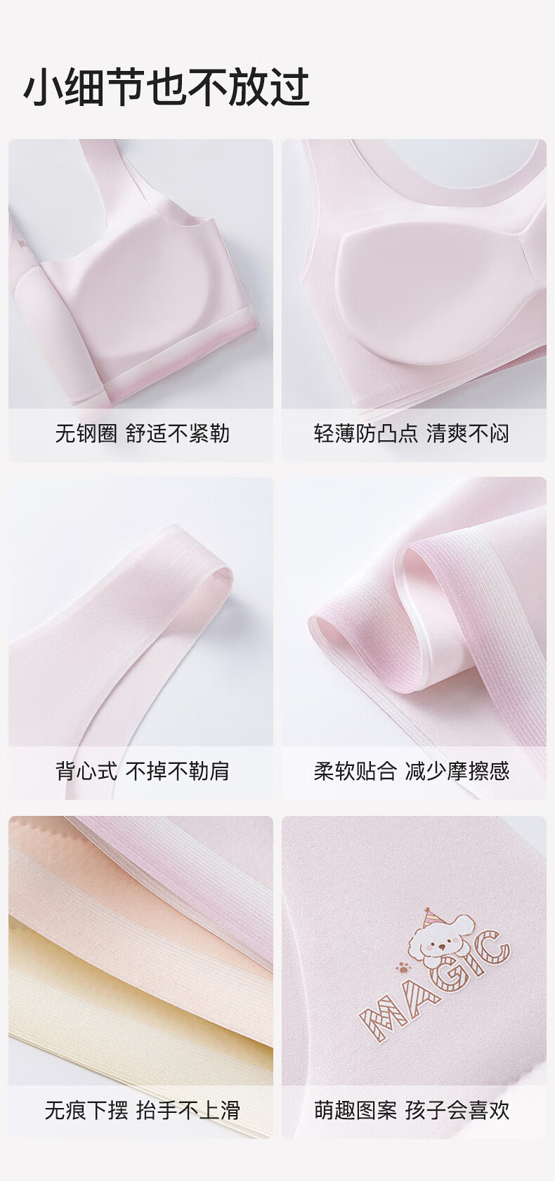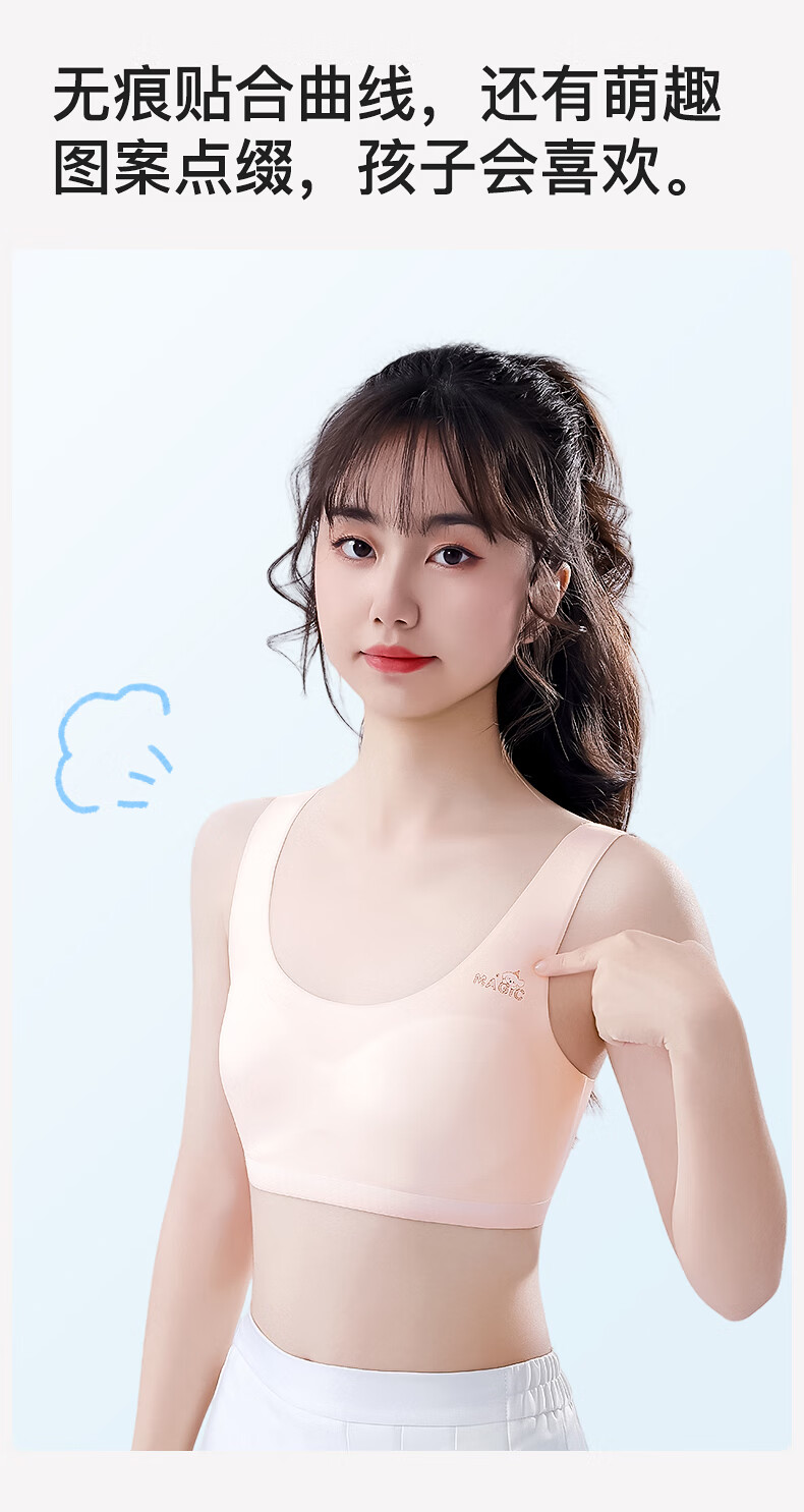 猫人儿童内衣发育期女童文胸二阶段青春期少女学生运动防凸点无痕背心 粉色+黄色 【舒适隐形 高弹透气】 165 (L) 【 建议体重80-105斤】