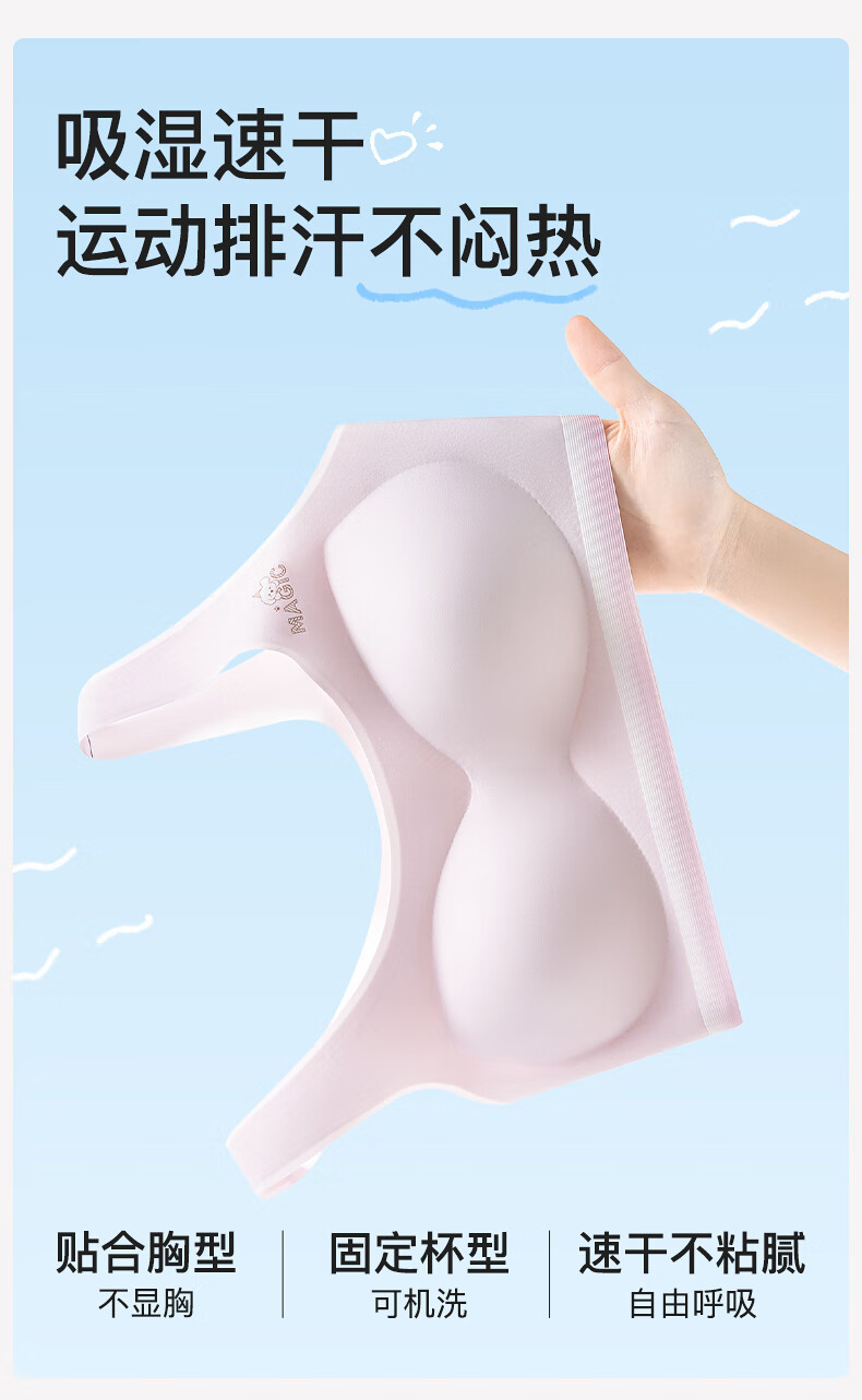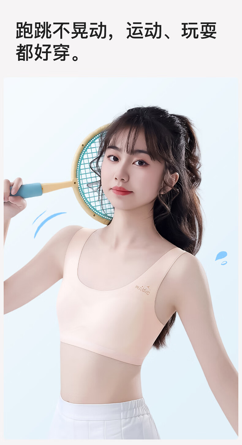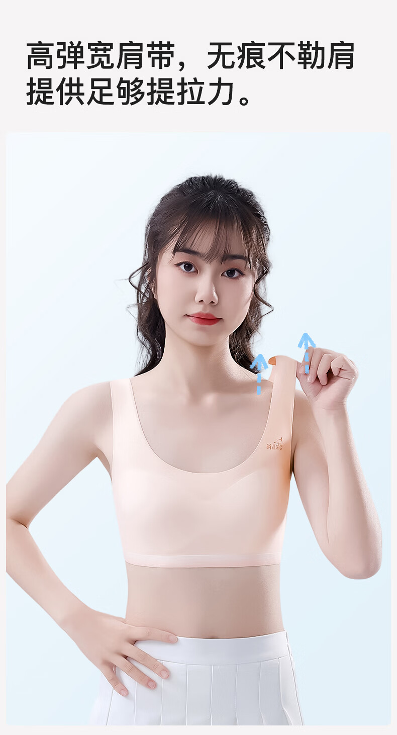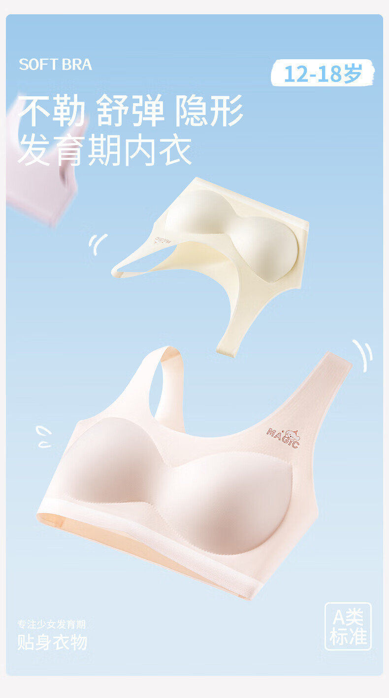 猫人儿童内衣发育期女童文胸二阶段青春期少女学生运动防凸点无痕背心 粉色+黄色 【舒适隐形 高弹透气】 165 (L) 【 建议体重80-105斤】