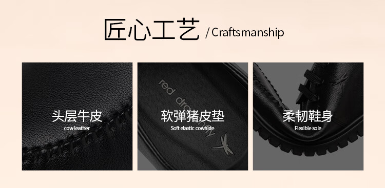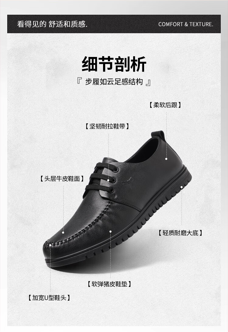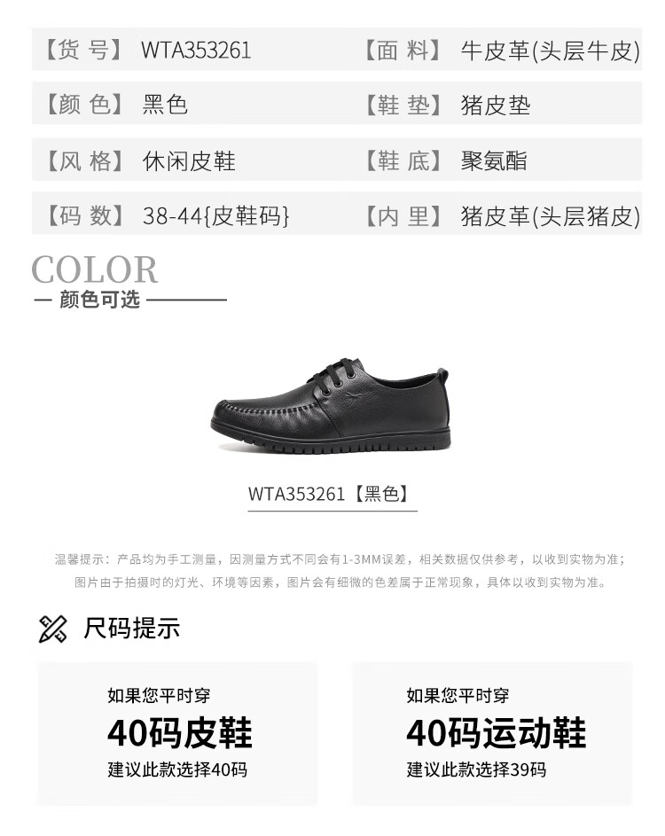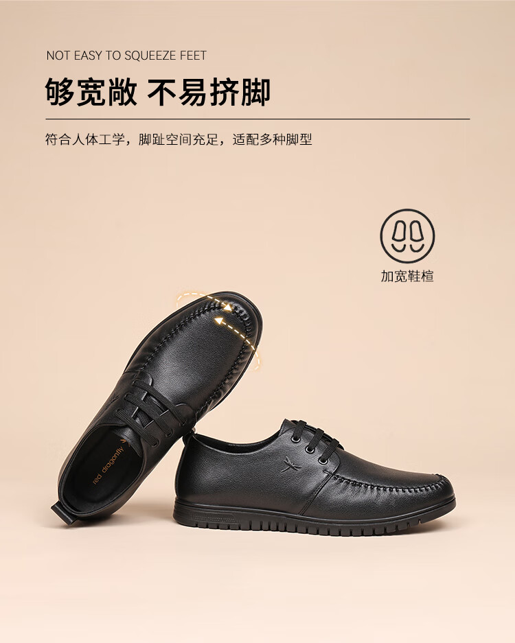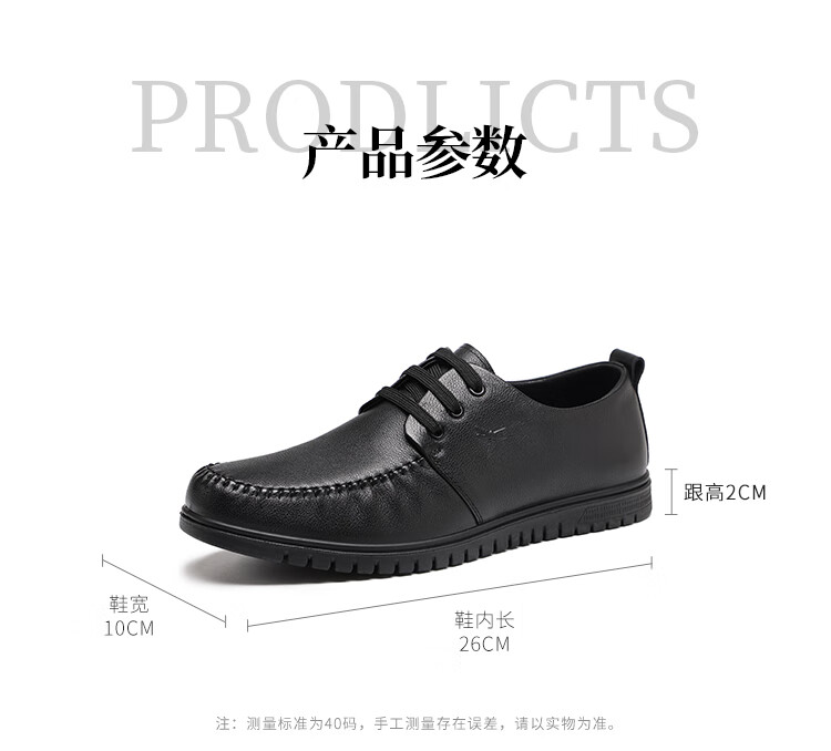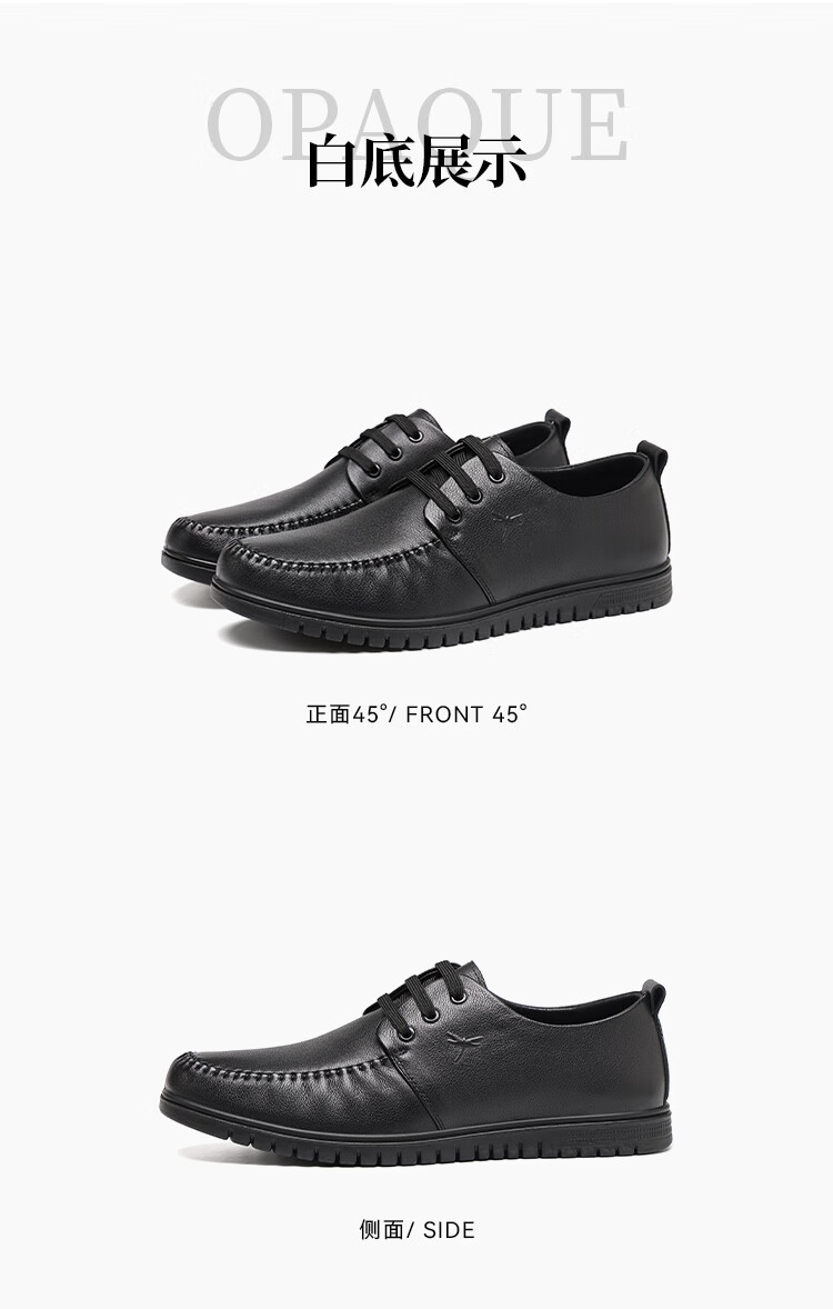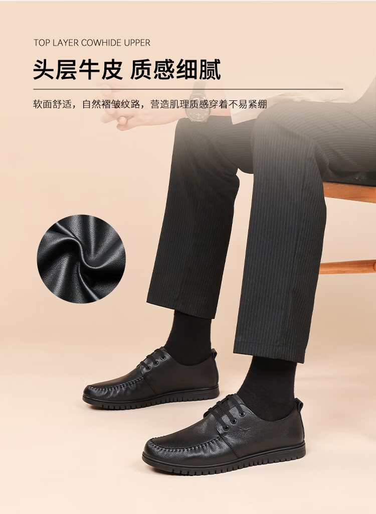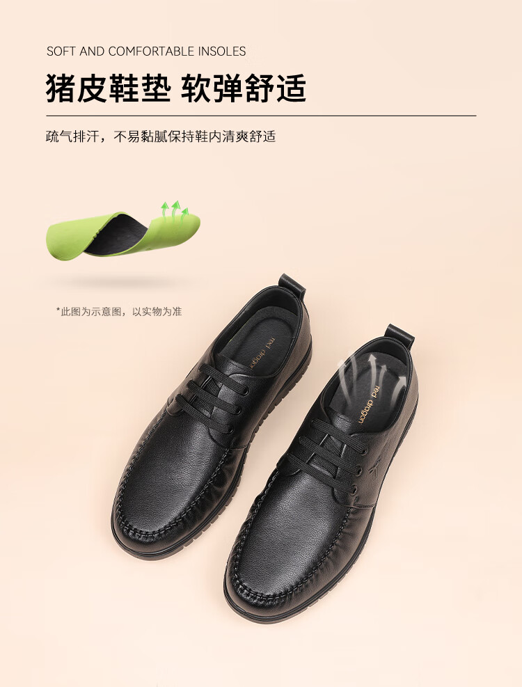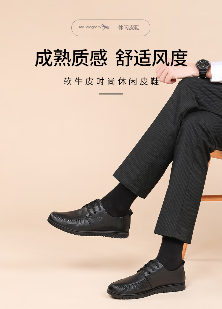 红蜻蜓皮鞋男秋季牛皮时尚商务休闲鞋系带软底正装鞋男WTA353261黑色40