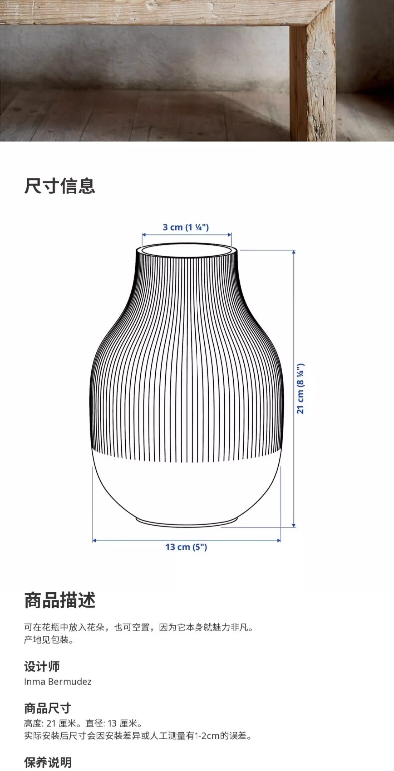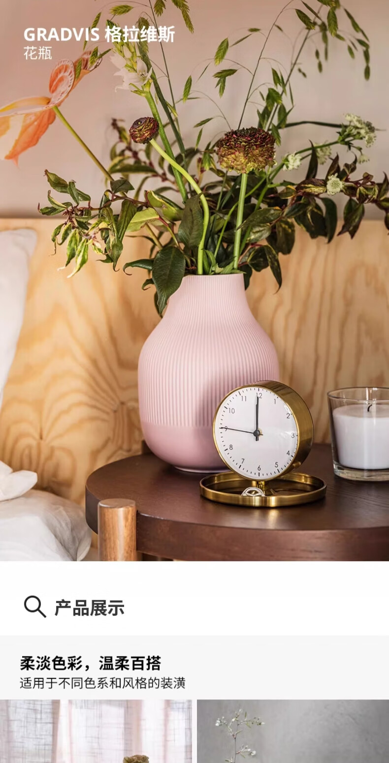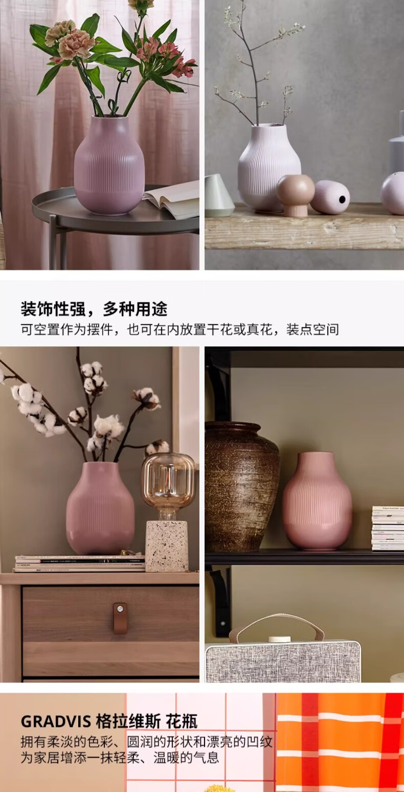 宜家(IKEA)GRADVIS 格拉维斯花瓶粉红色现代简约北欧风客厅用家用 21cm 花瓶粉红色