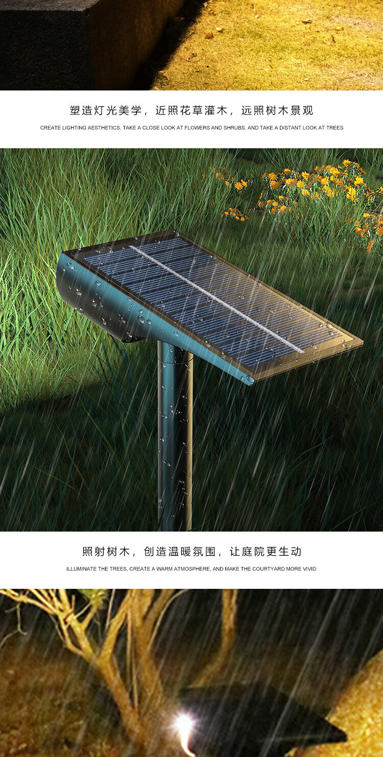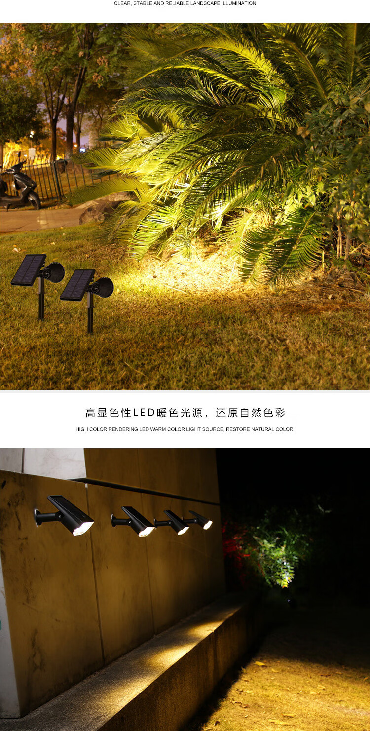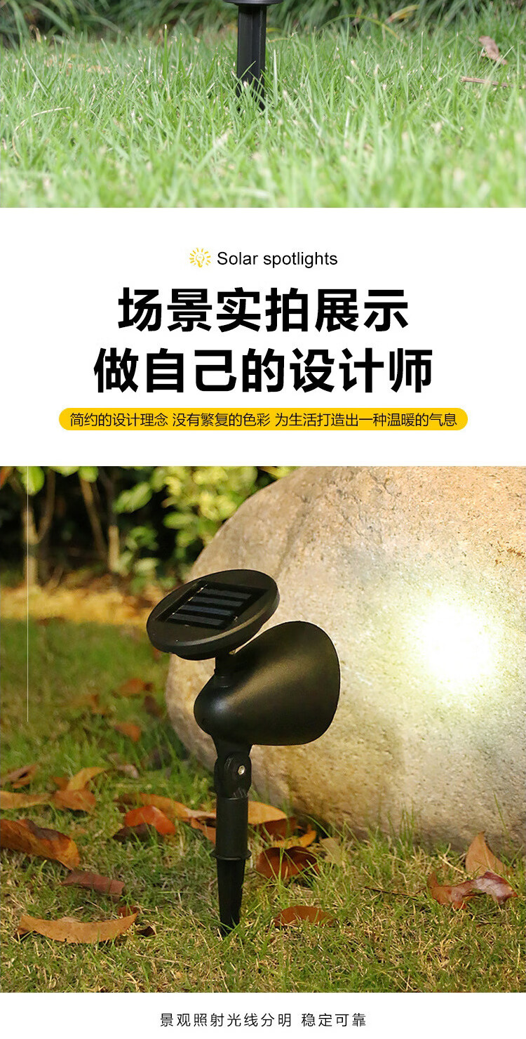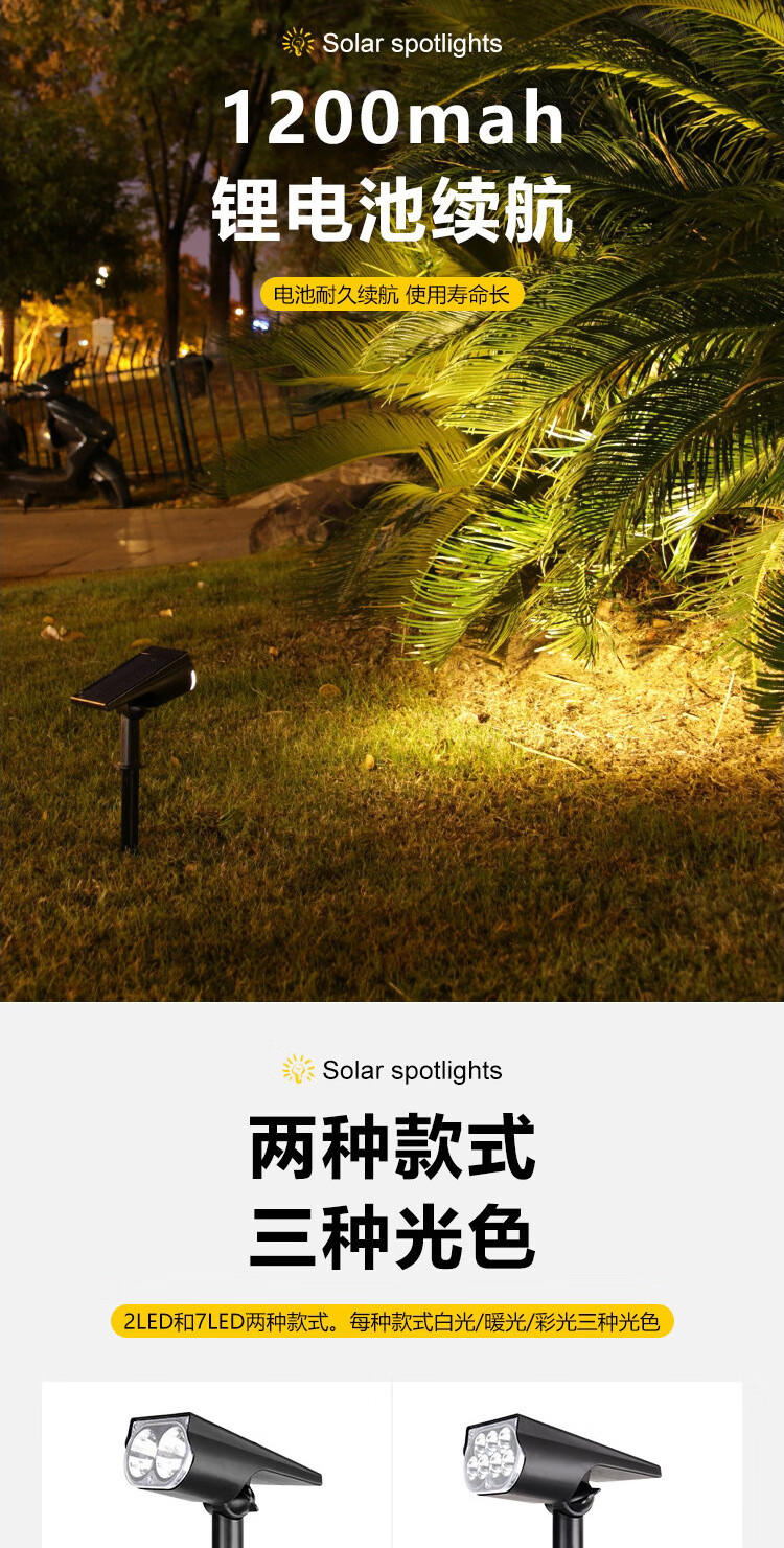 振牛太阳能射灯户外超亮防水插地草坪家用室外景观庭院花园照树氛围灯 A款-7灯珠-白光 地插壁装两用-智能光控感应