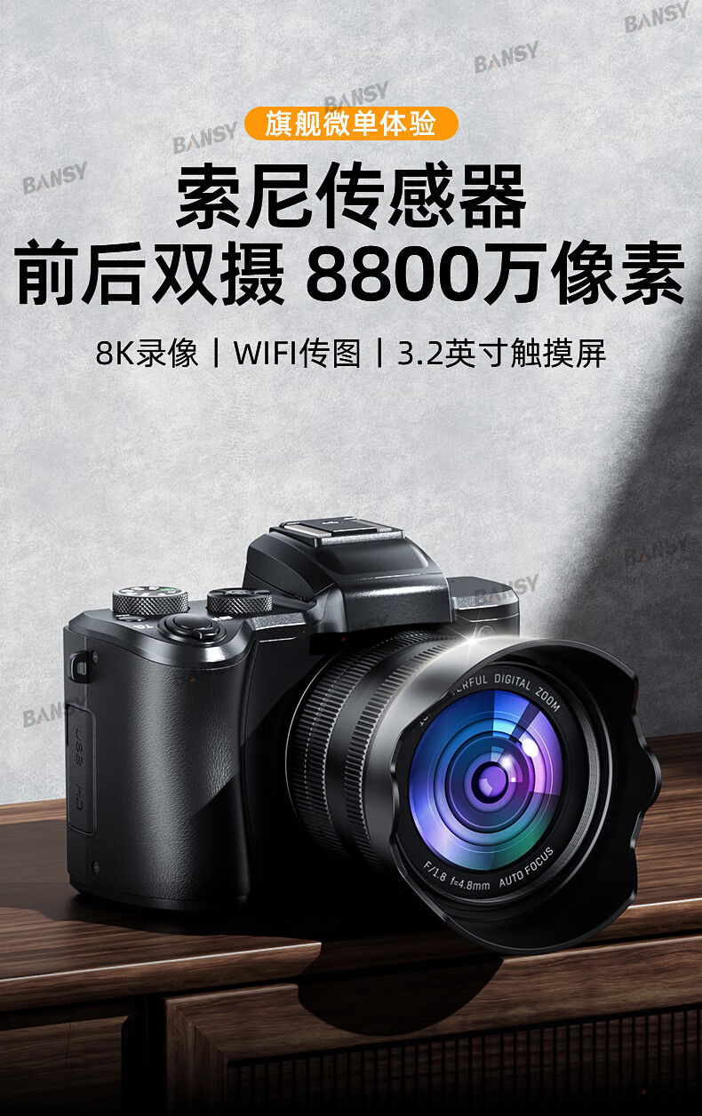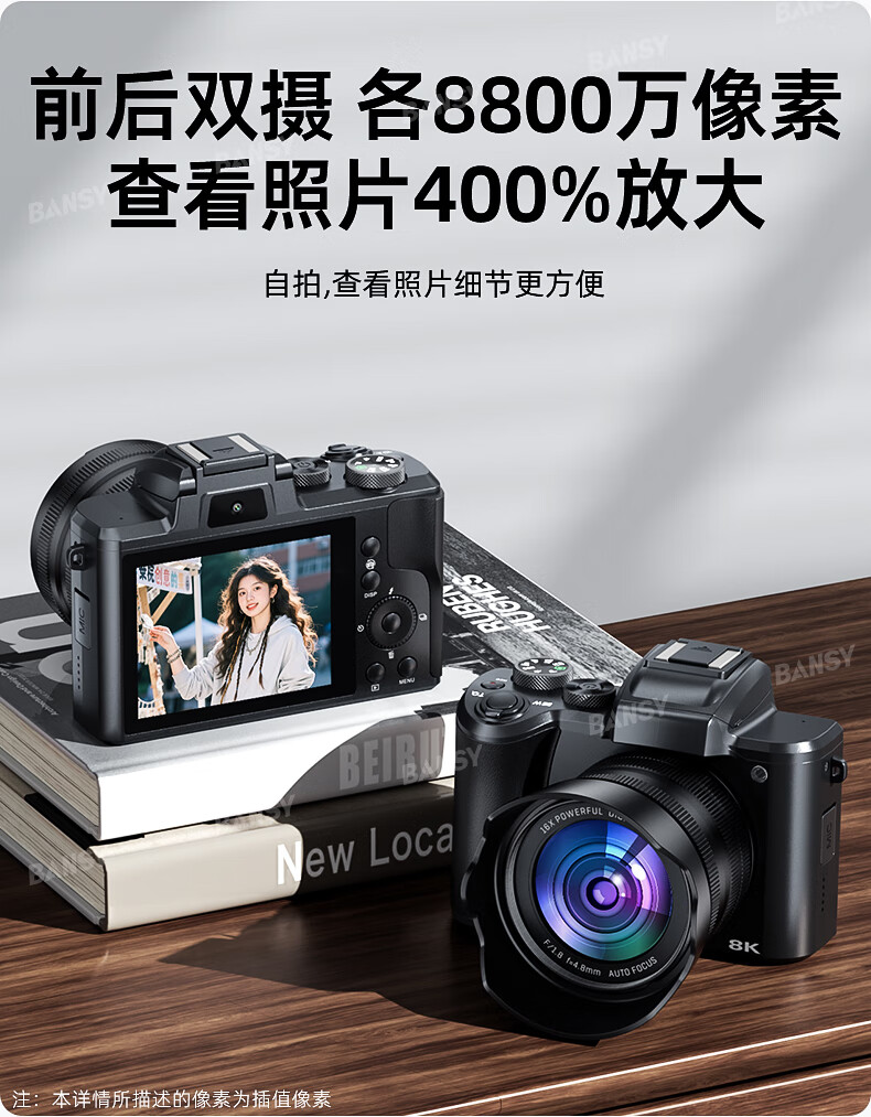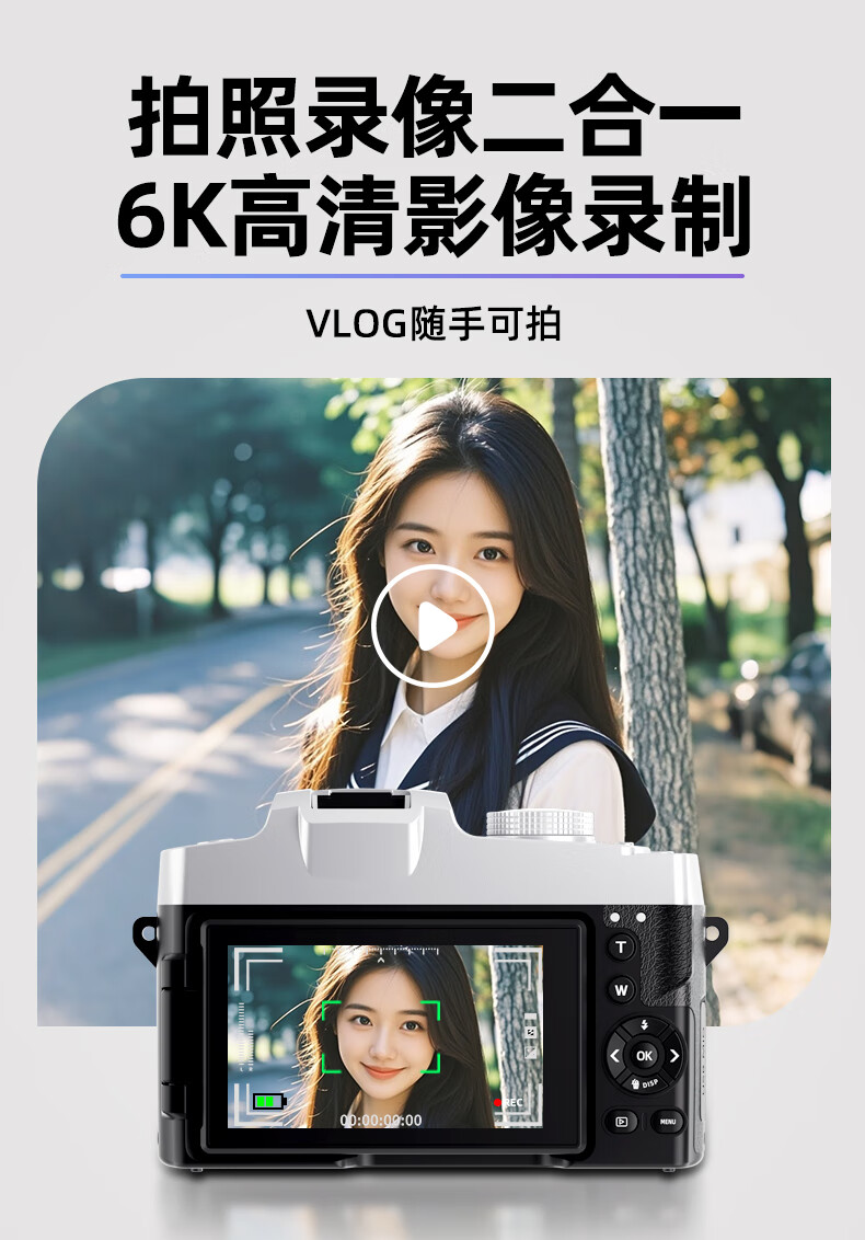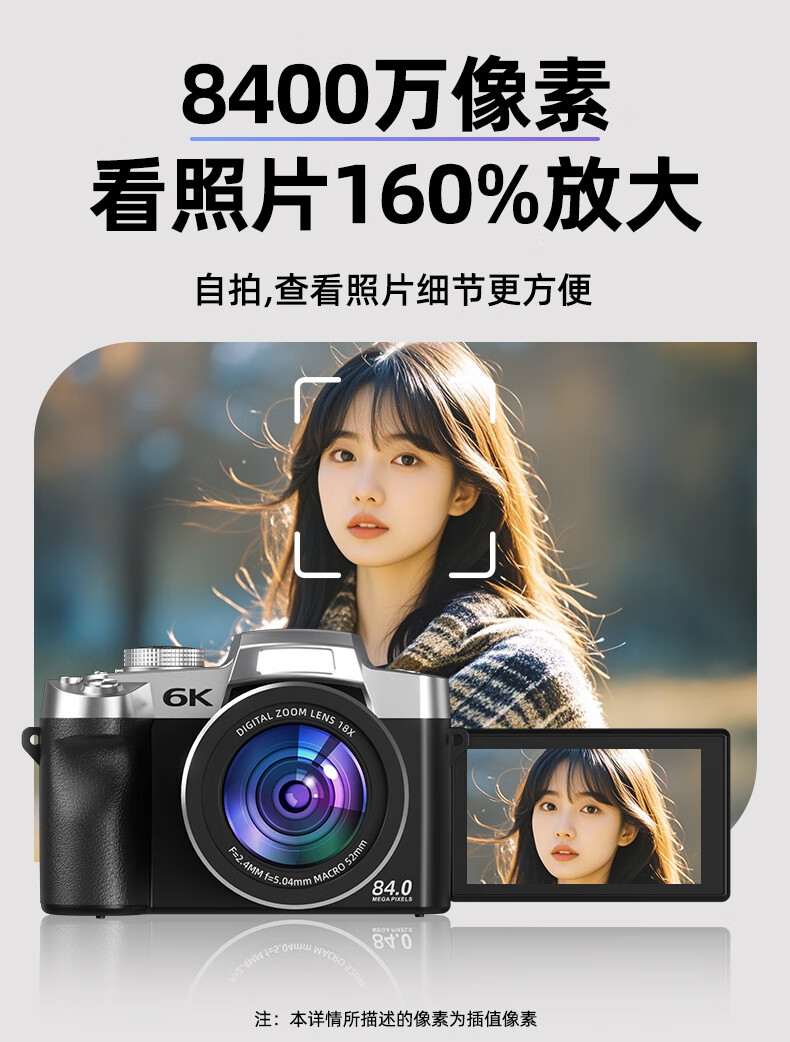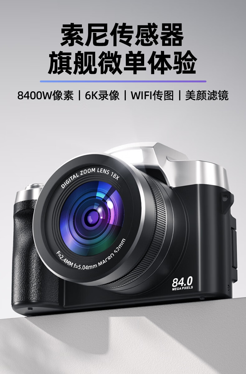 伴兮6K高清微单数码相机学生党可上传手机替代ccd相机拍照旅游专用摄影入门级照相机高中生翻转屏自拍 64G卡【6K超清翻转触屏+8400万像素】京仓 索尼传感器丨WiFi传图丨美颜滤镜丨高倍变焦