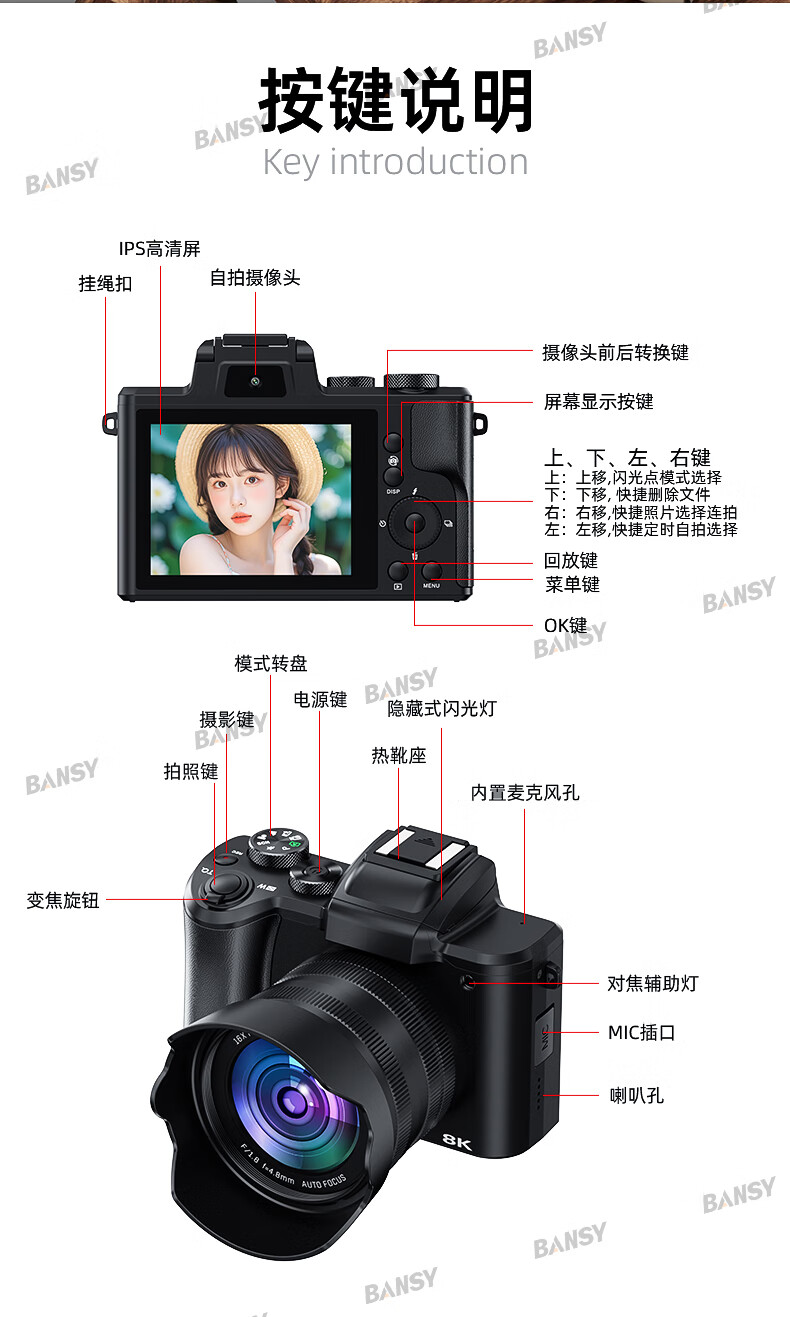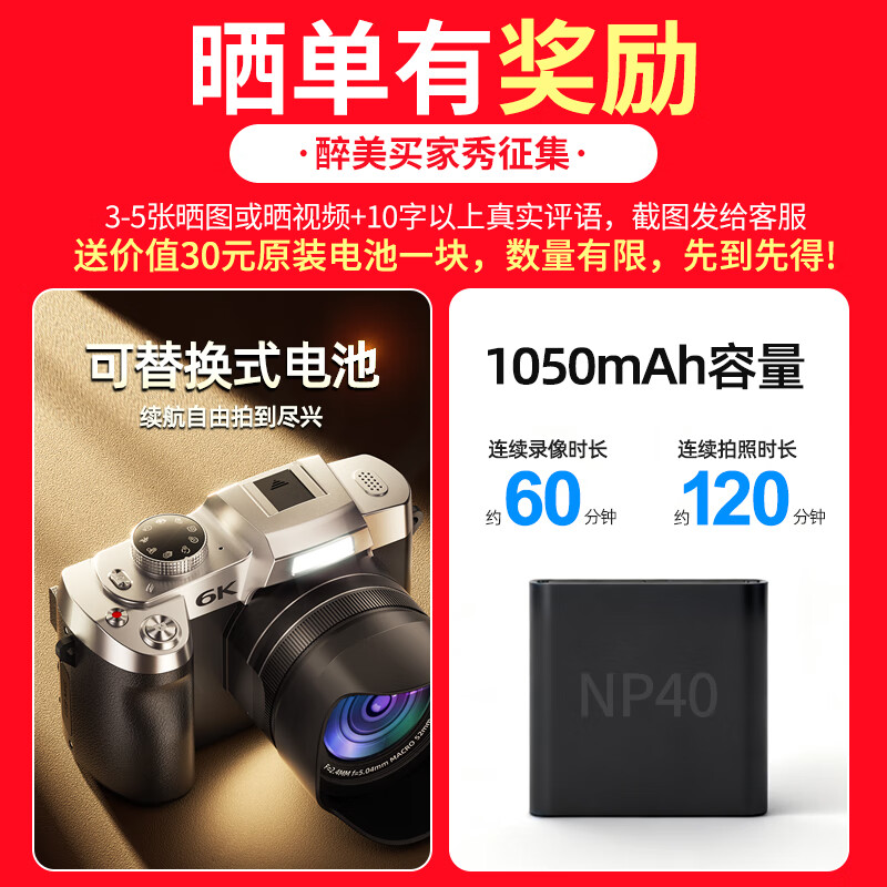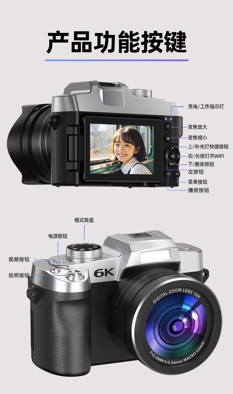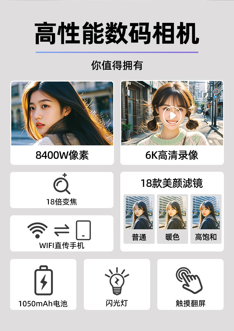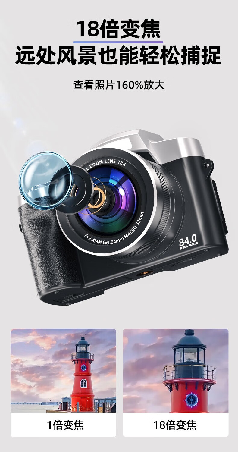 伴兮6K高清微单数码相机学生党可上传手机替代ccd相机拍照旅游专用摄影入门级照相机高中生翻转屏自拍 64G卡【6K超清翻转触屏+8400万像素】京仓 索尼传感器丨WiFi传图丨美颜滤镜丨高倍变焦