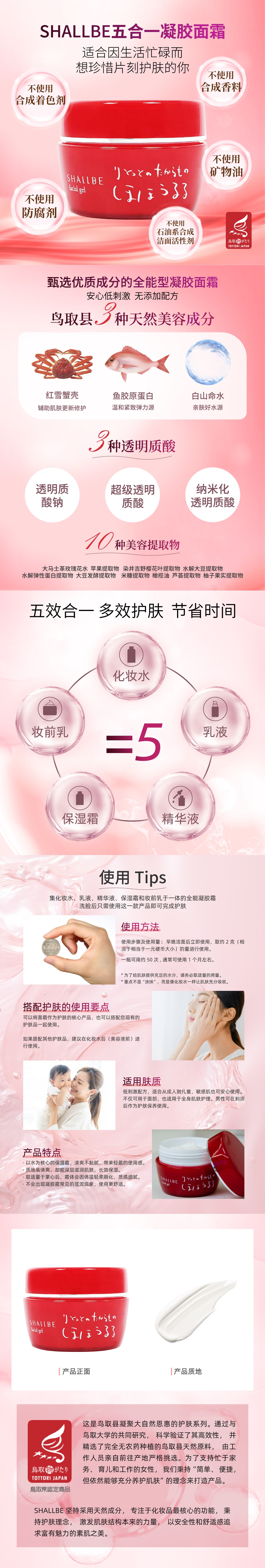 SHALLBE五合一保湿凝胶面霜100g 日本进口 纯天然配方保湿维稳敏感肌可用