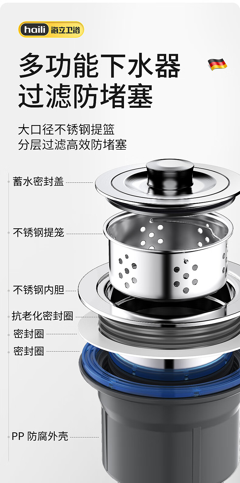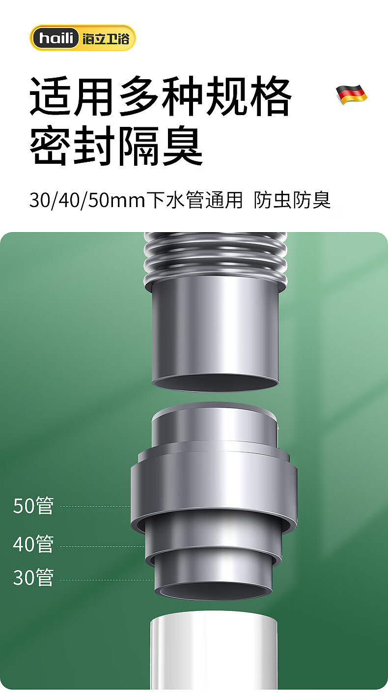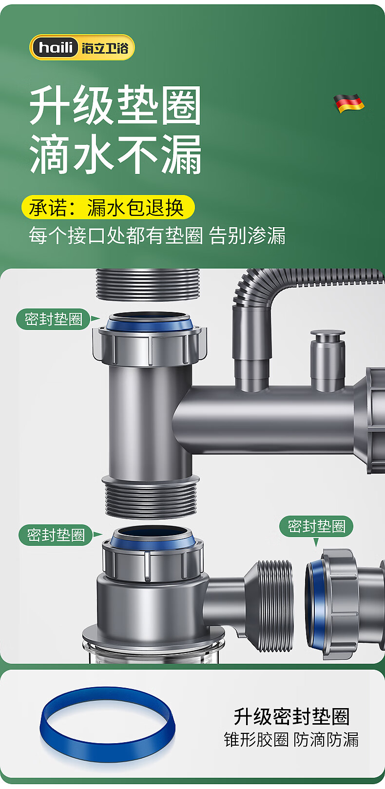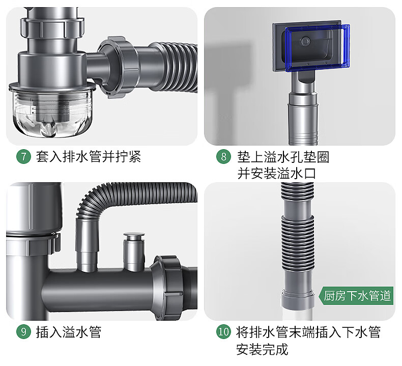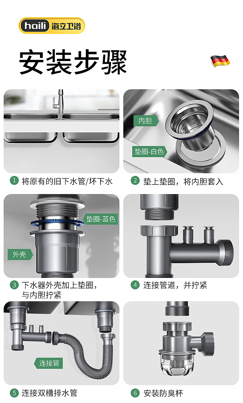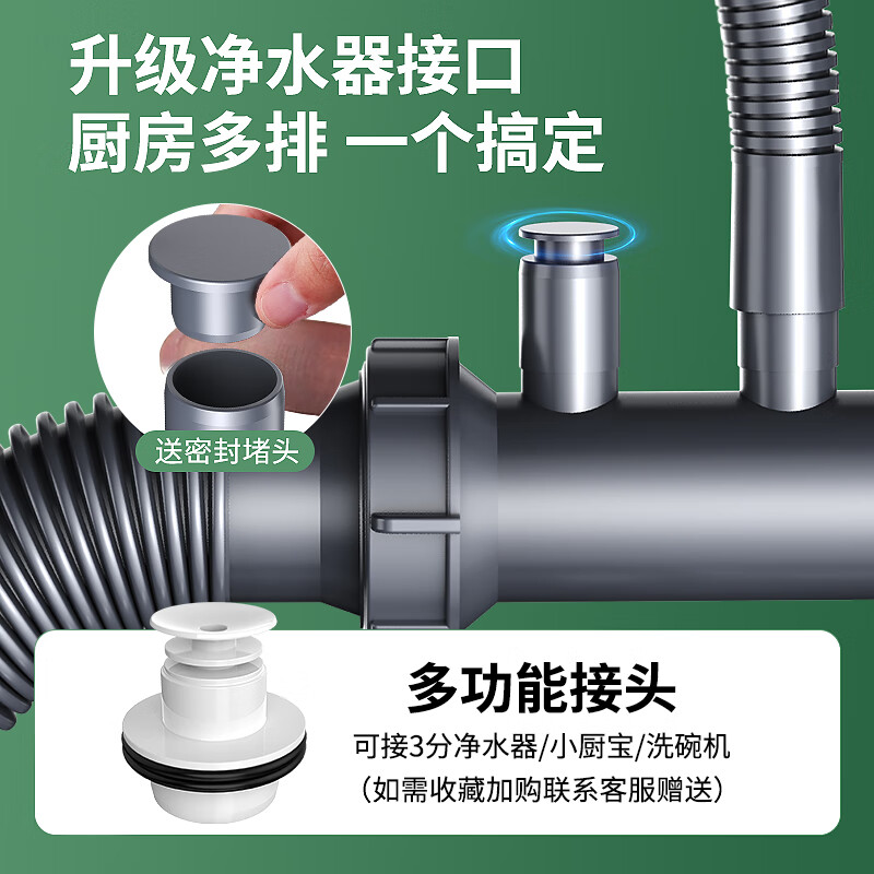 海立厨房洗菜盆下水管110双水槽下水器洗碗台盆池PP排水管防臭套装S16