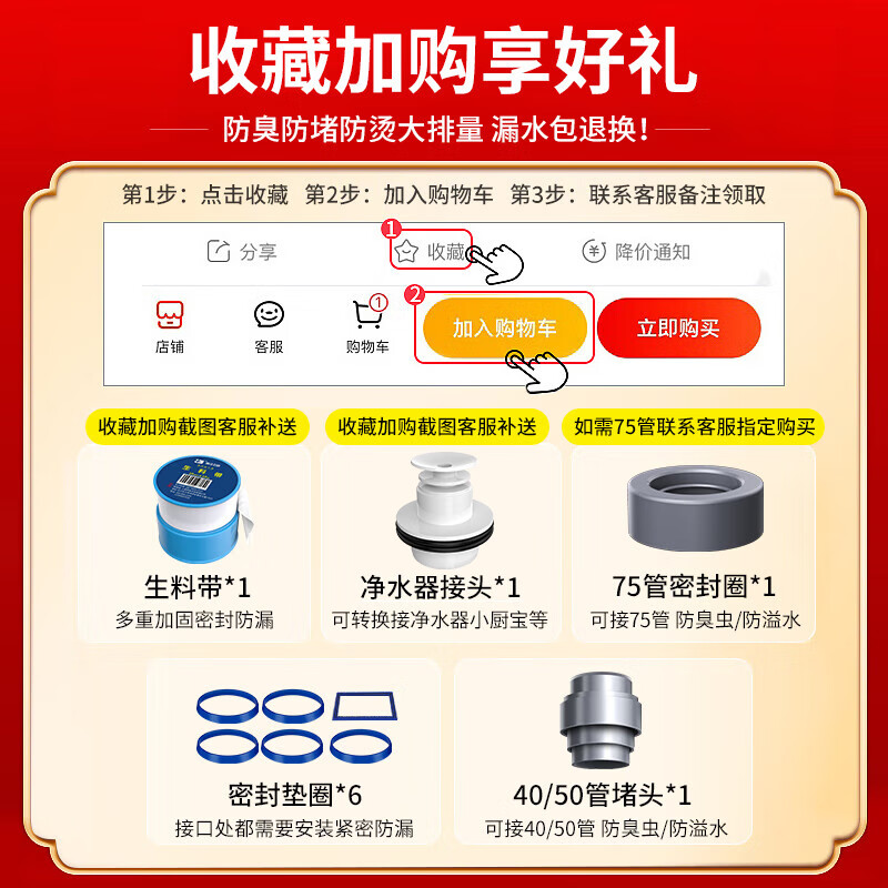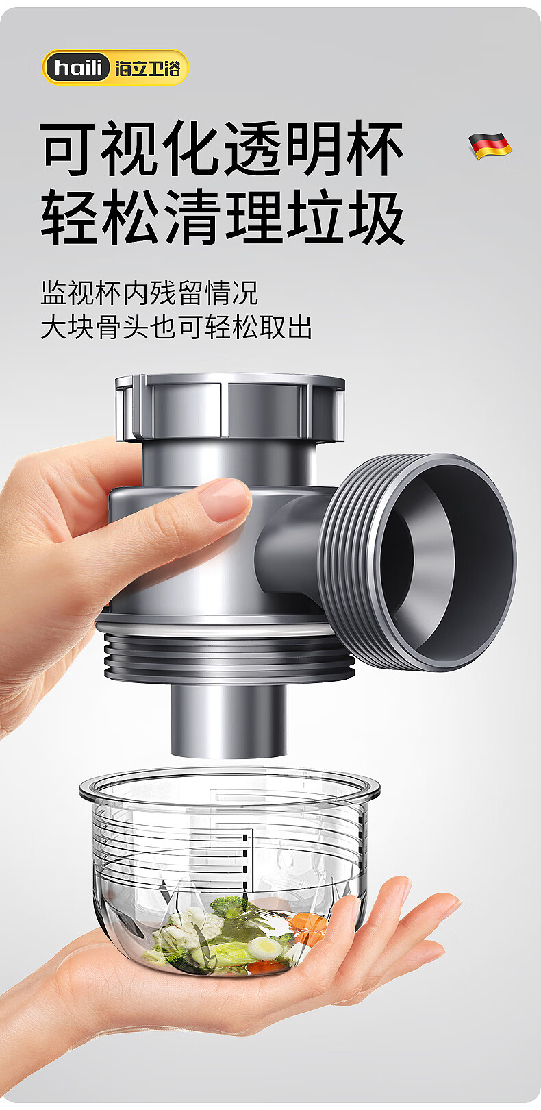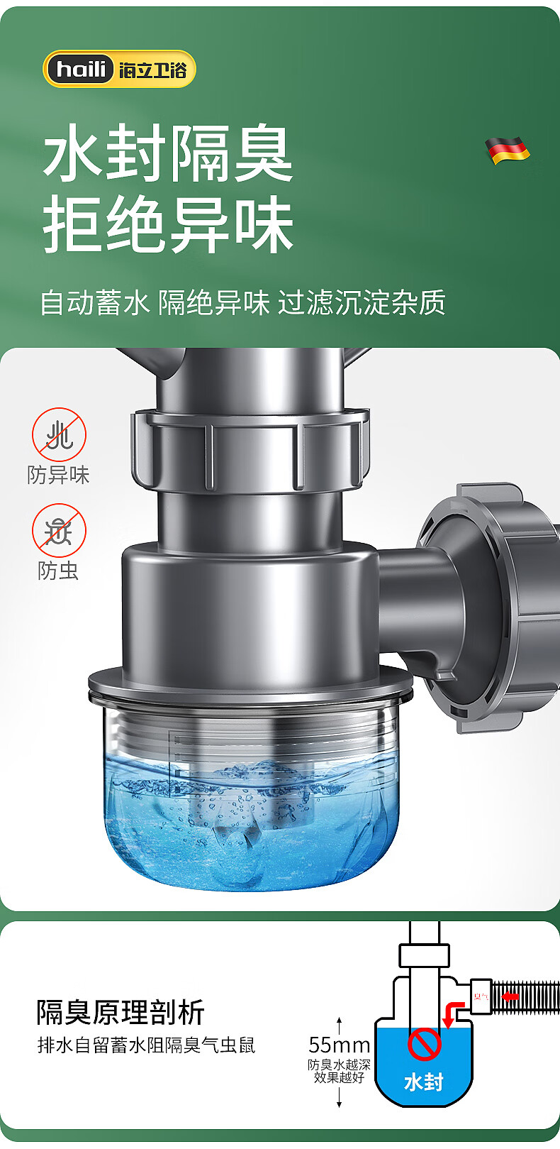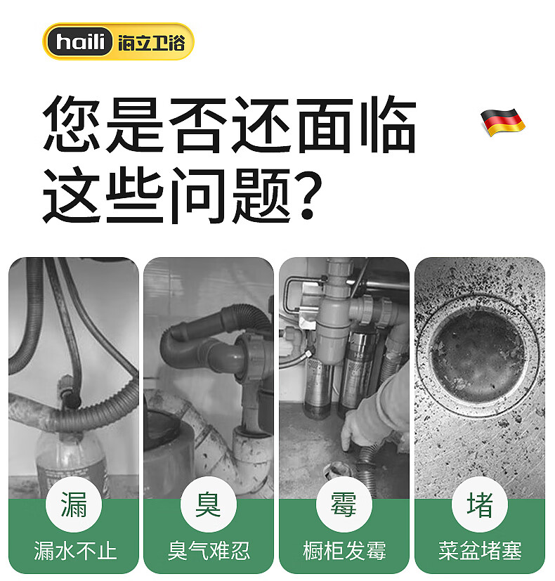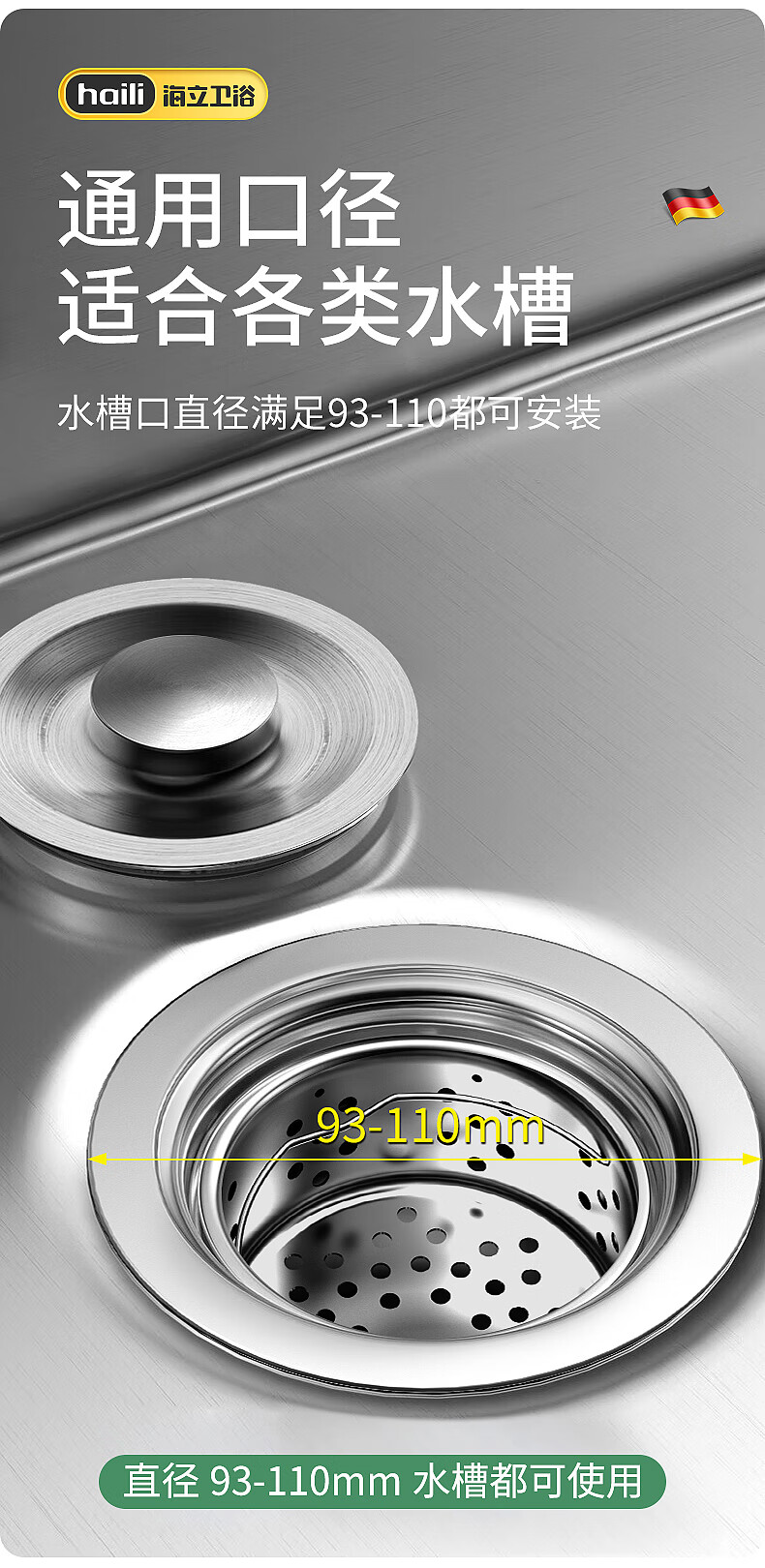 海立厨房洗菜盆下水管110双水槽下水器洗碗台盆池PP排水管防臭套装S16