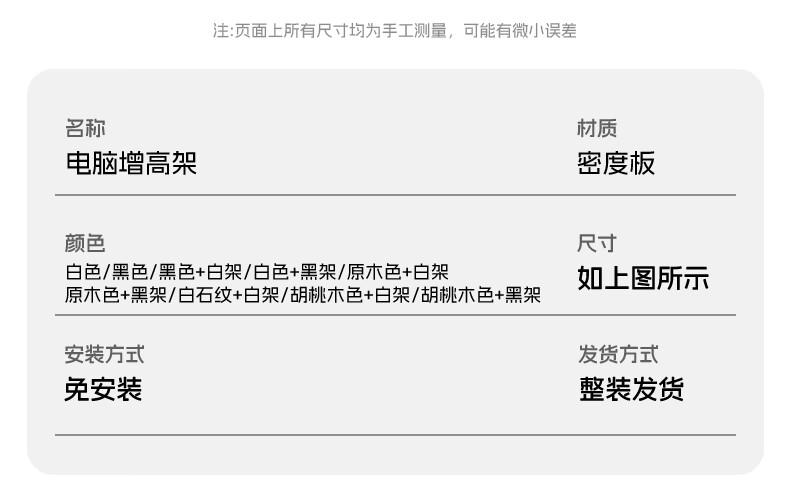 木格格电脑桌面增高架置物架笔记本底座窄款免安装显示器台式办公室工位 30*15-8-白色+白架