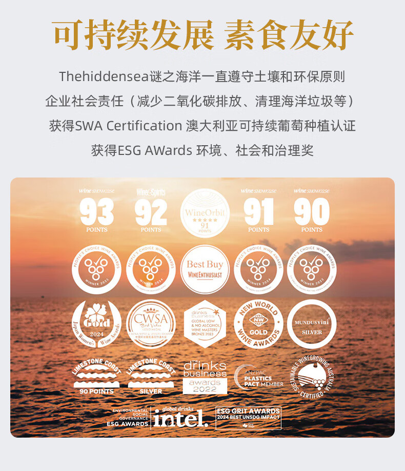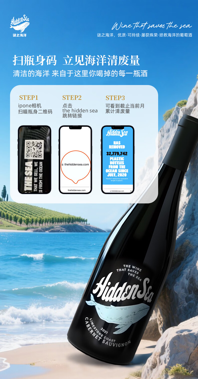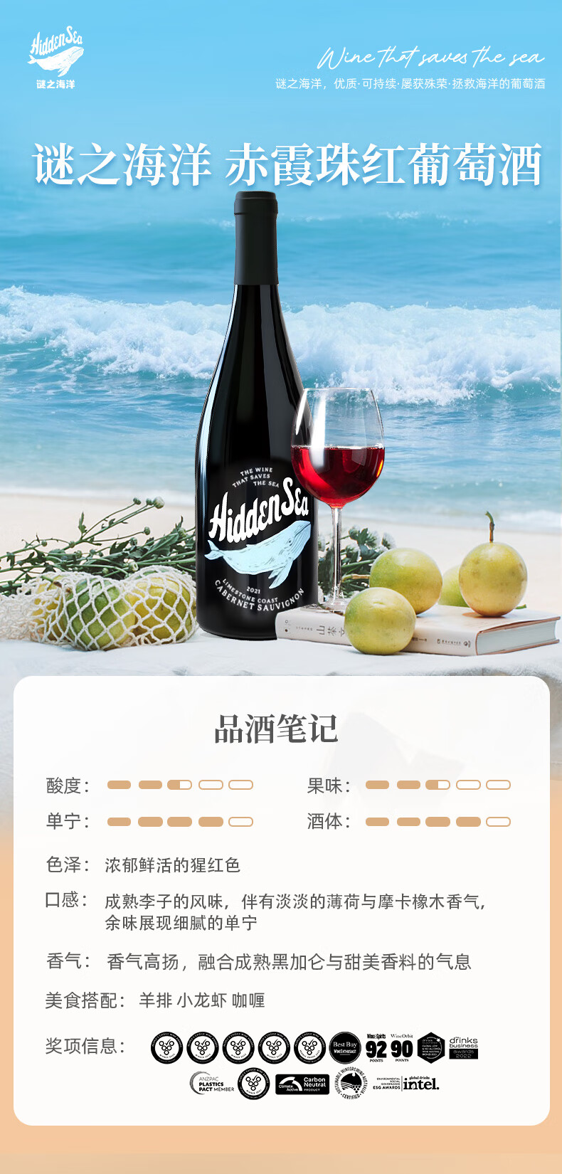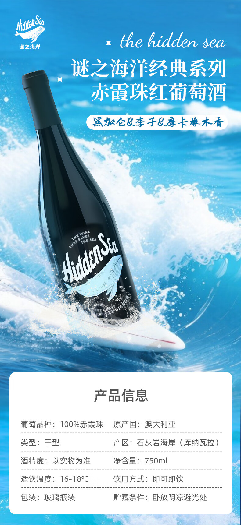 谜之海洋Thehiddensea澳大利亚进口赤霞珠干红葡萄酒750ml*6瓶 宴请送礼