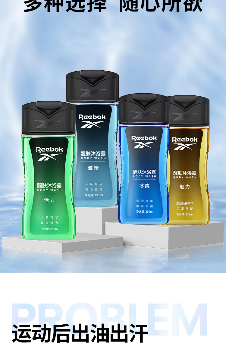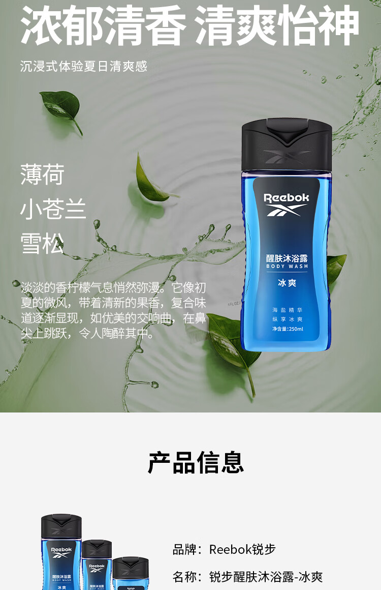 锐步(Reebok)沐浴露男士沐浴乳控油深层清洁持久留香止痒清爽沐浴露冰爽250ml