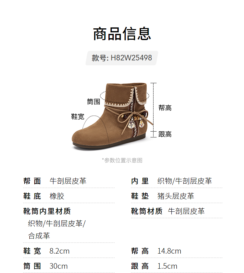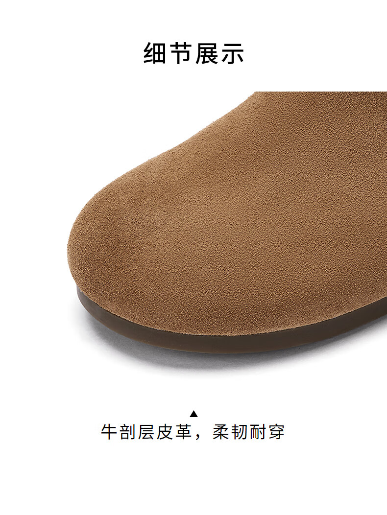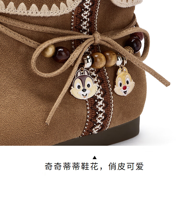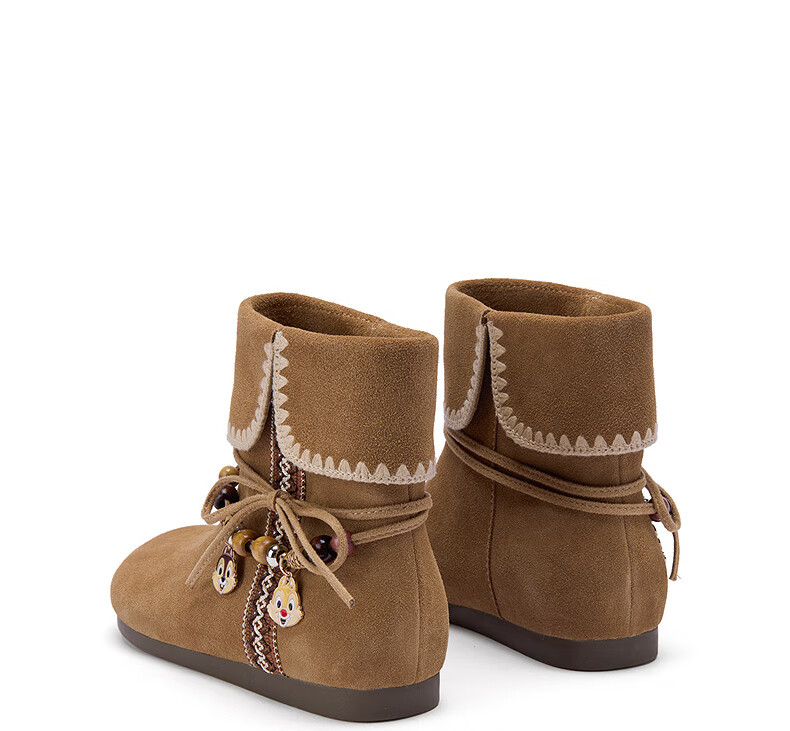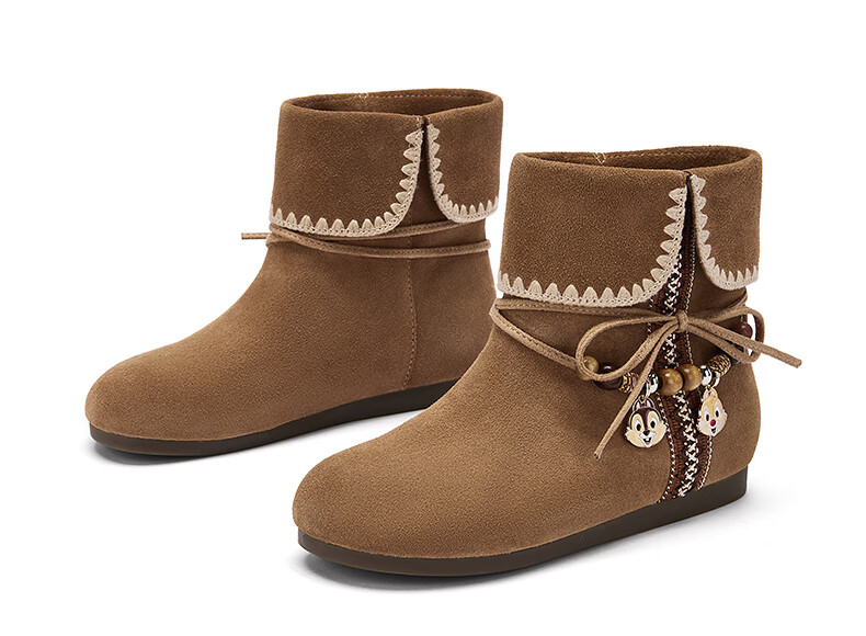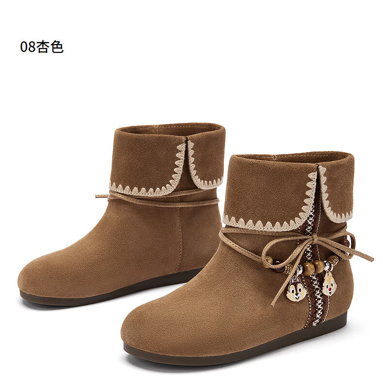 热风【迪士尼系列】女士西部靴2025年冬季新款时尚户外短筒休闲靴 08杏色 36