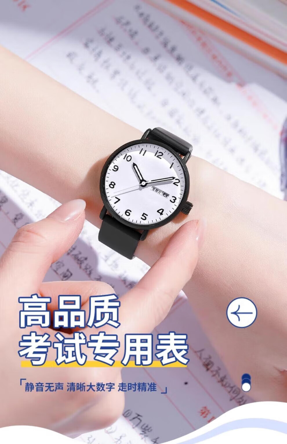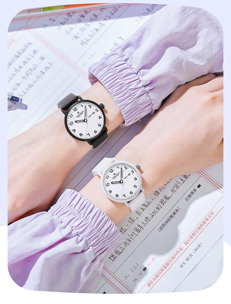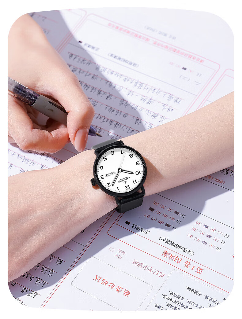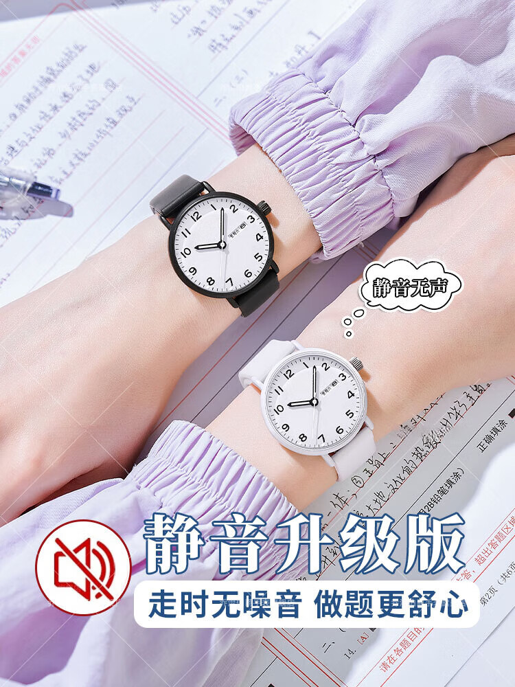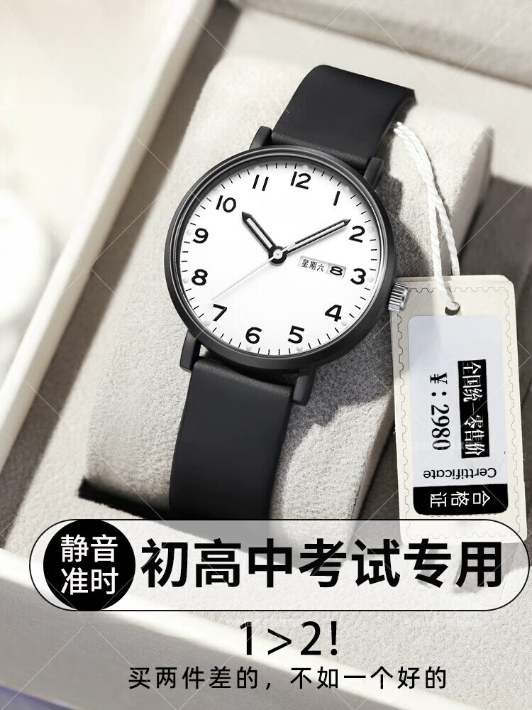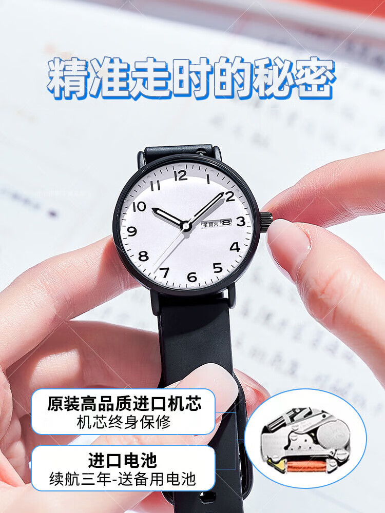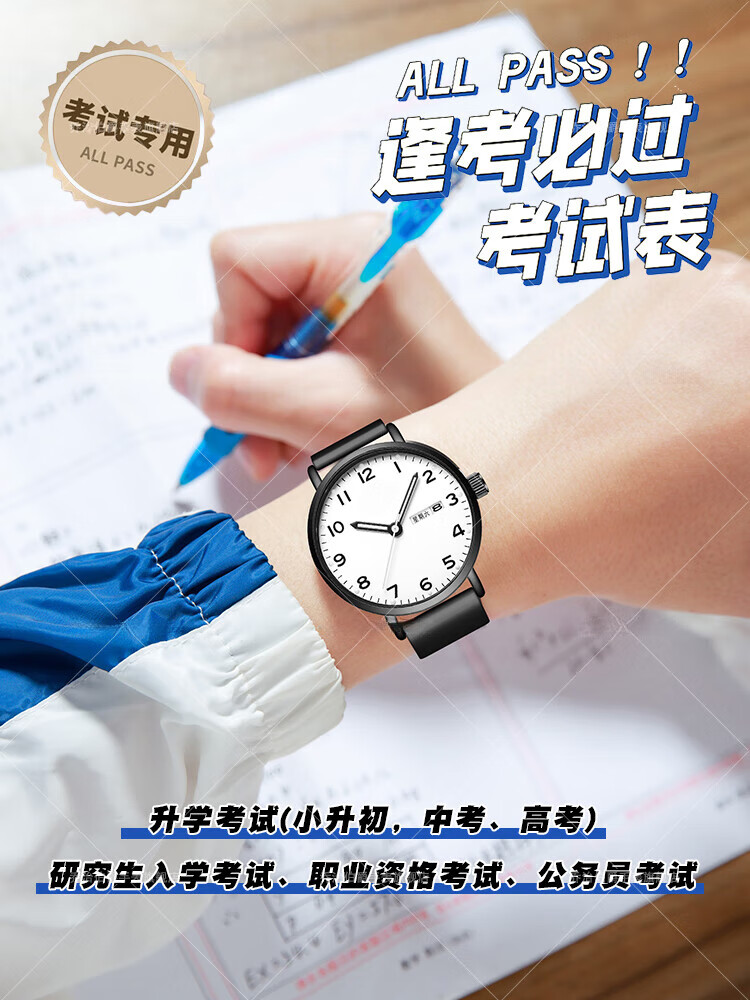 DEATKN公务员考试手表男款青少年女款初中生高中学生中考手表男 升级款-黑白【护眼夜光+准时+终身质保】