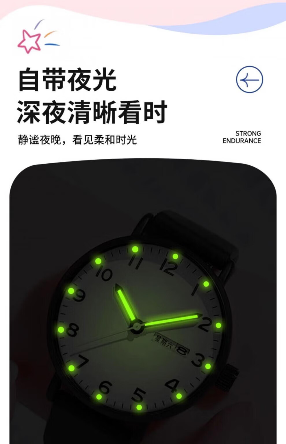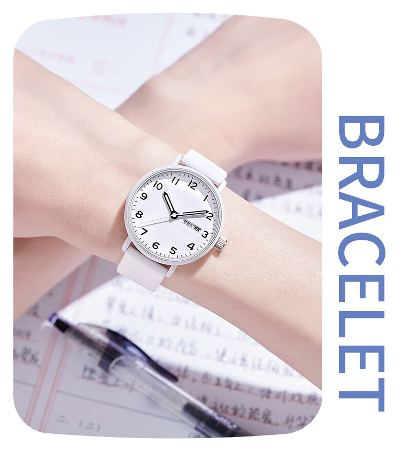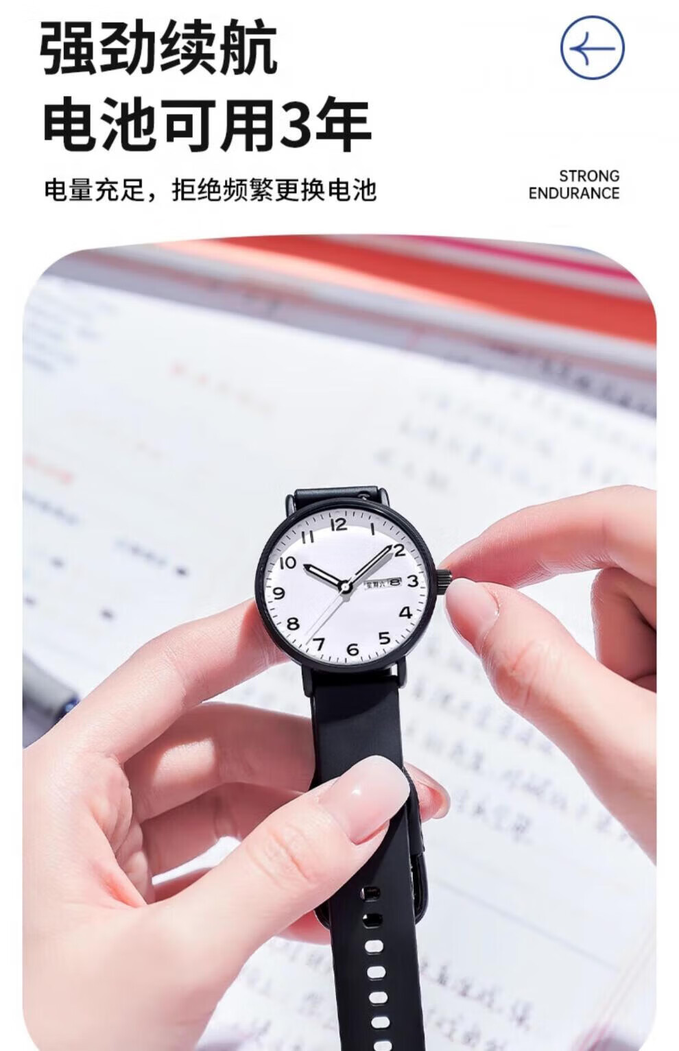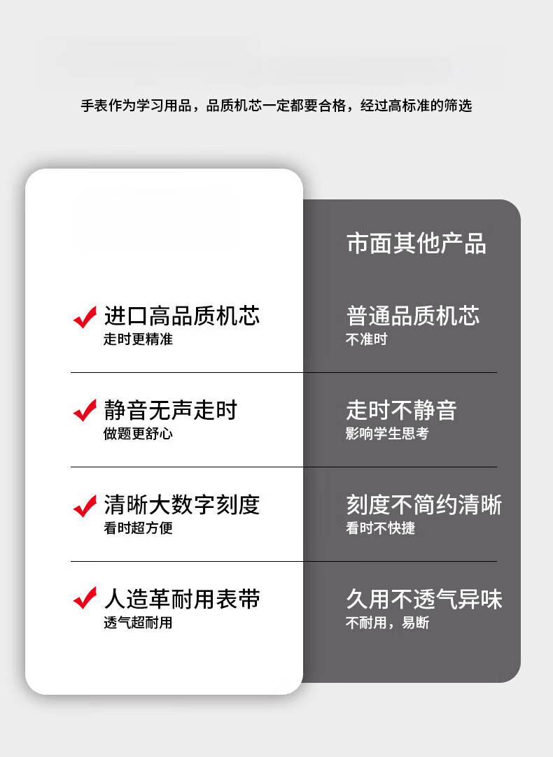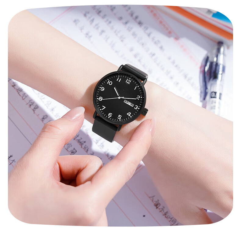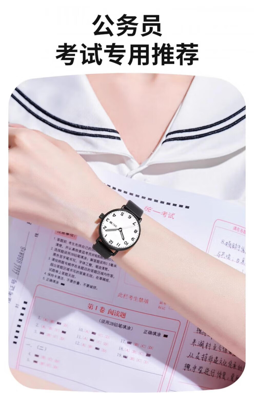 DEATKN公务员考试手表男款青少年女款初中生高中学生中考手表男 升级款-黑白【护眼夜光+准时+终身质保】