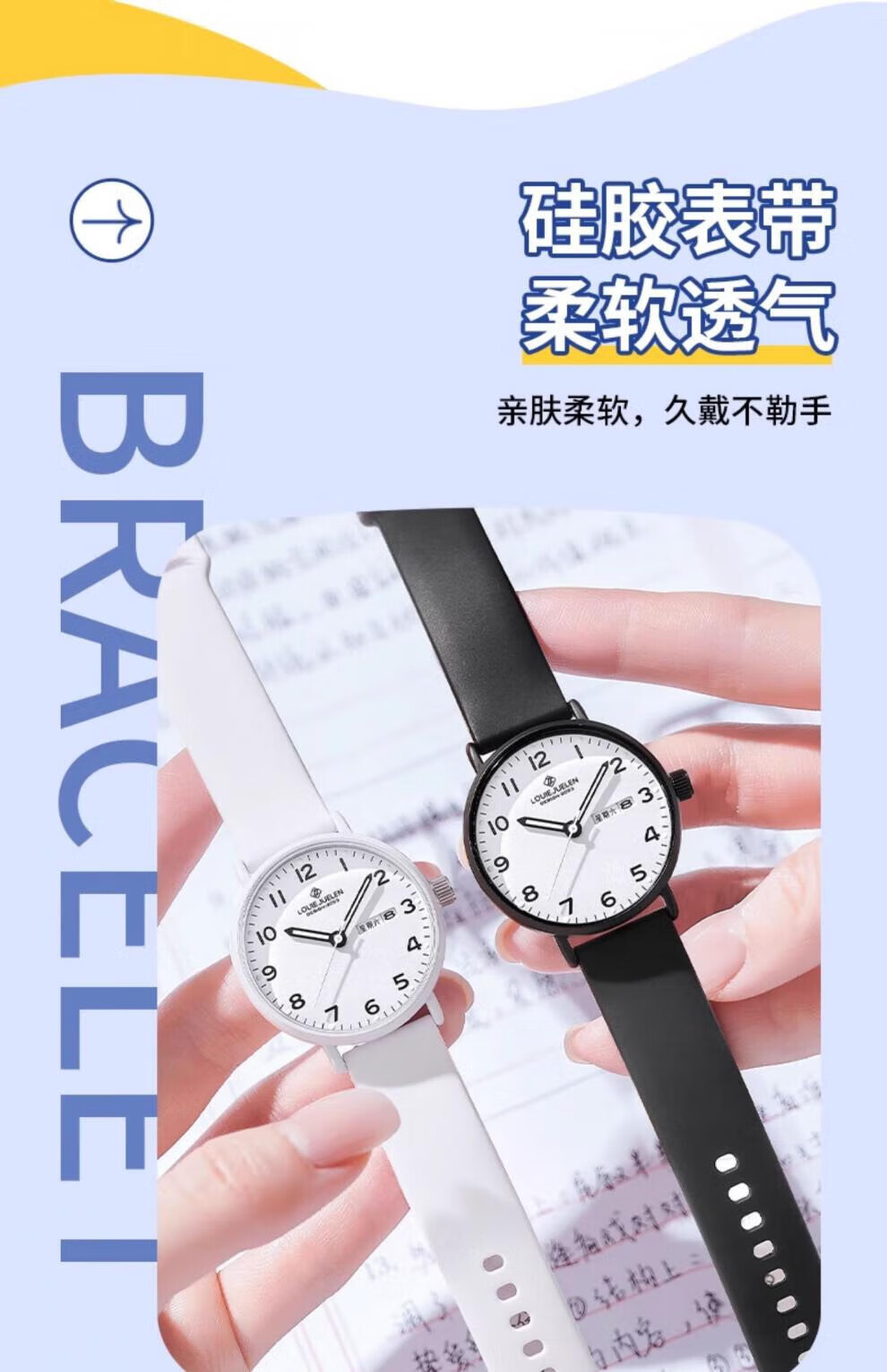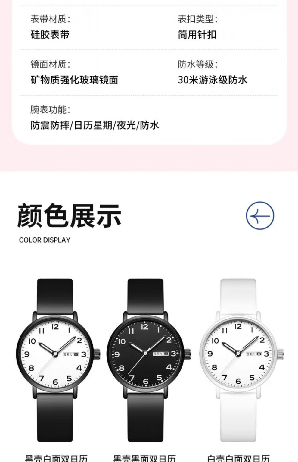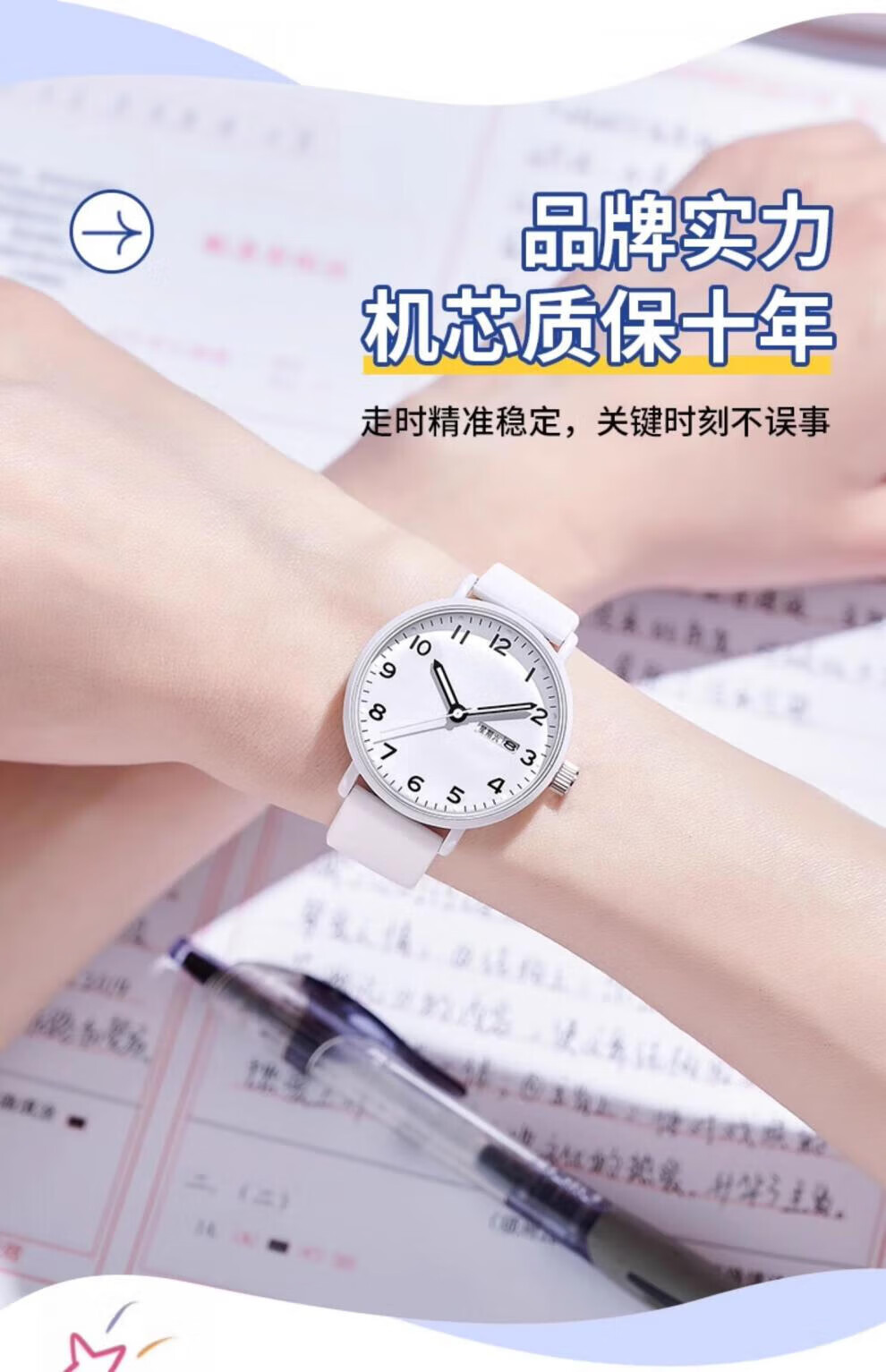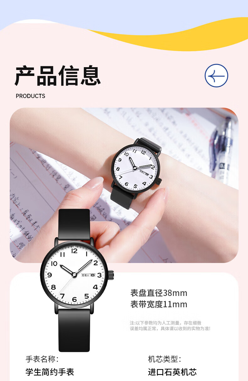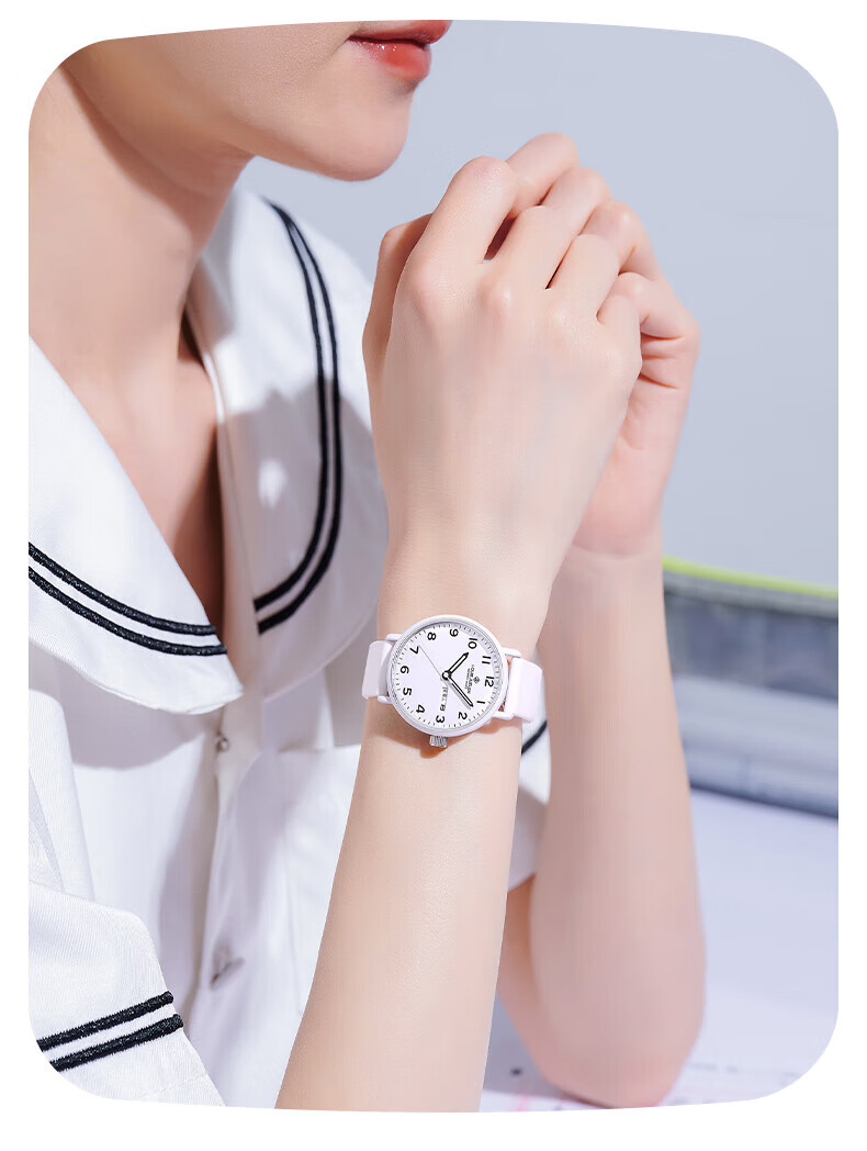 DEATKN公务员考试手表男款青少年女款初中生高中学生中考手表男 升级款-黑白【护眼夜光+准时+终身质保】