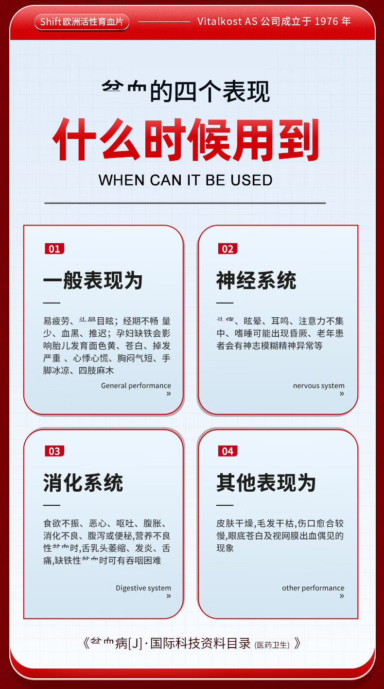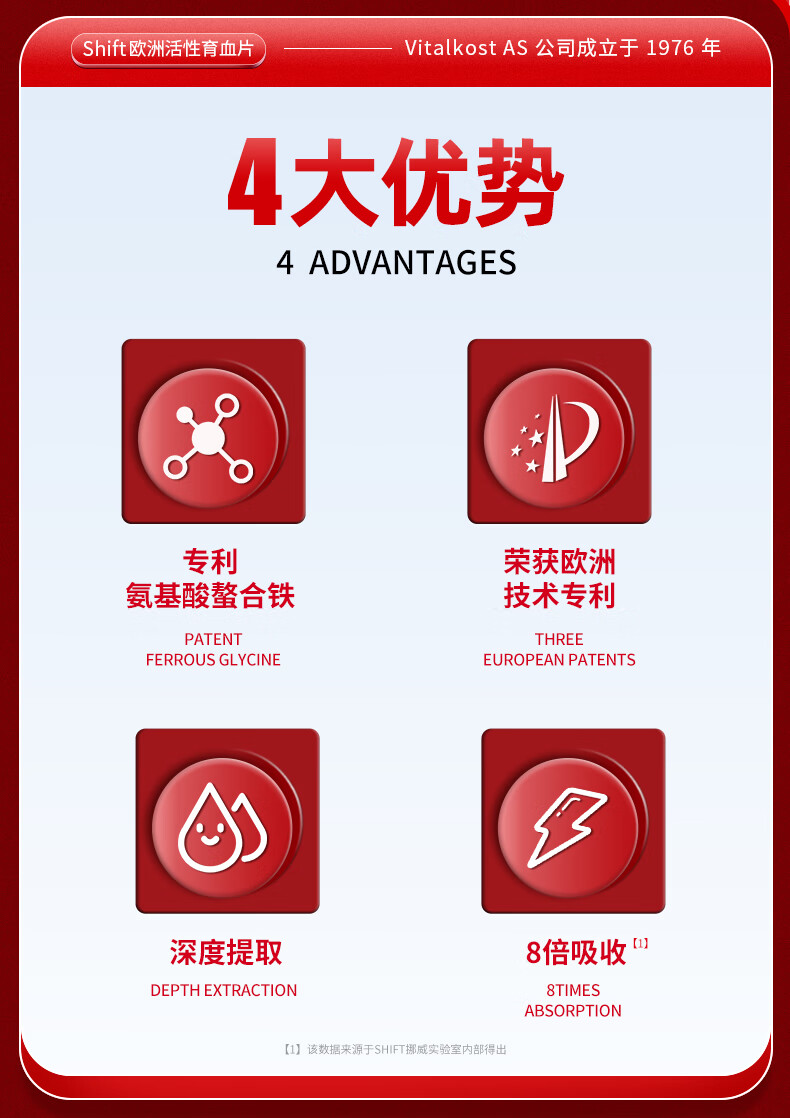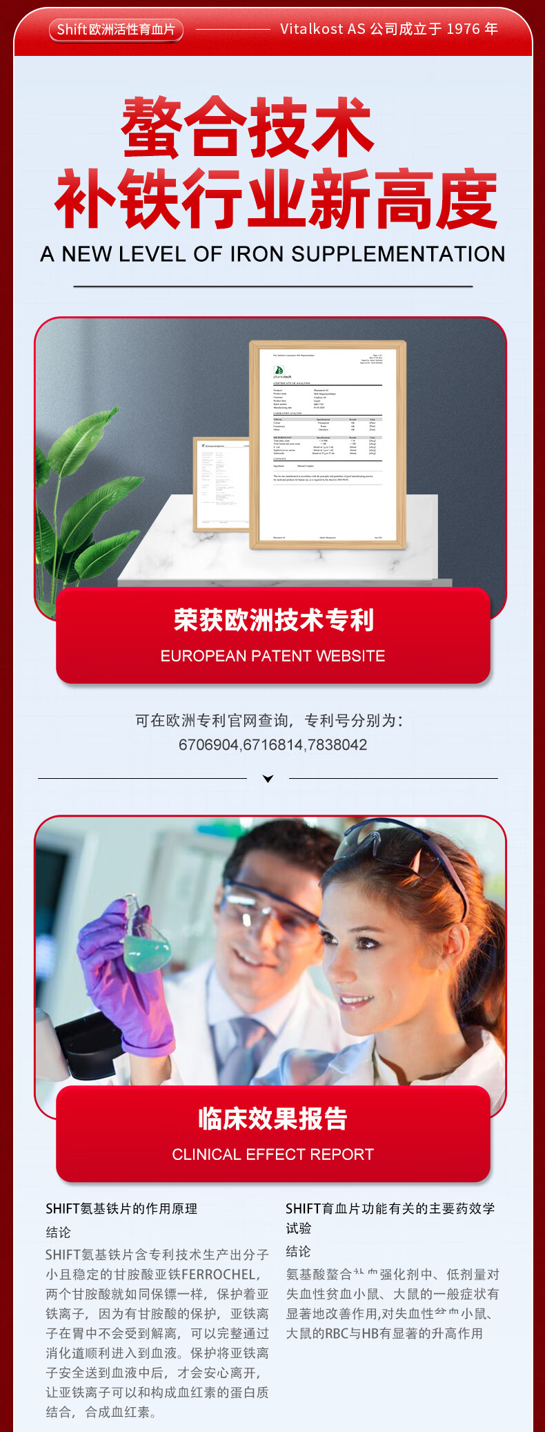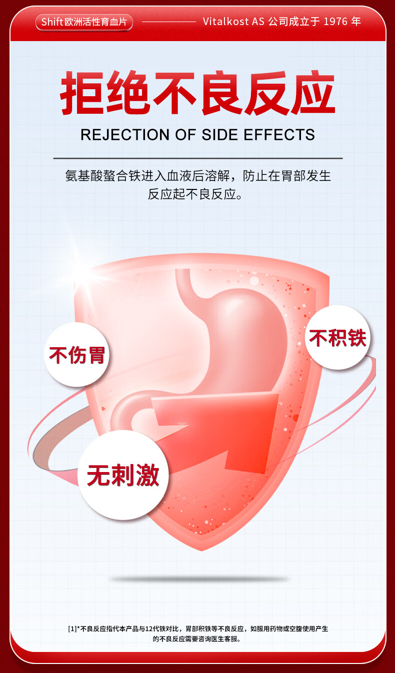 Shift活性铁 补血片补铁剂 血红素 孕妇女性贫血哺乳期 挪威进口 90片