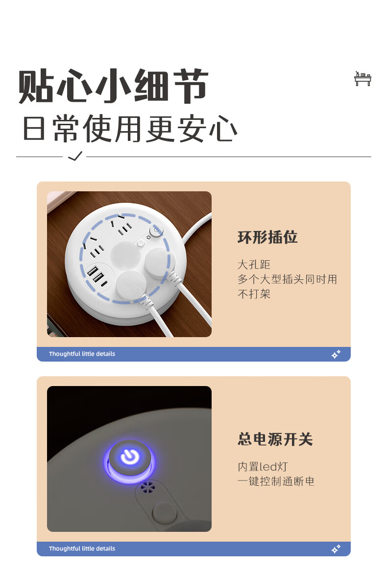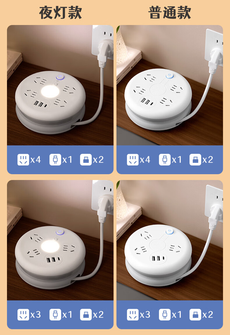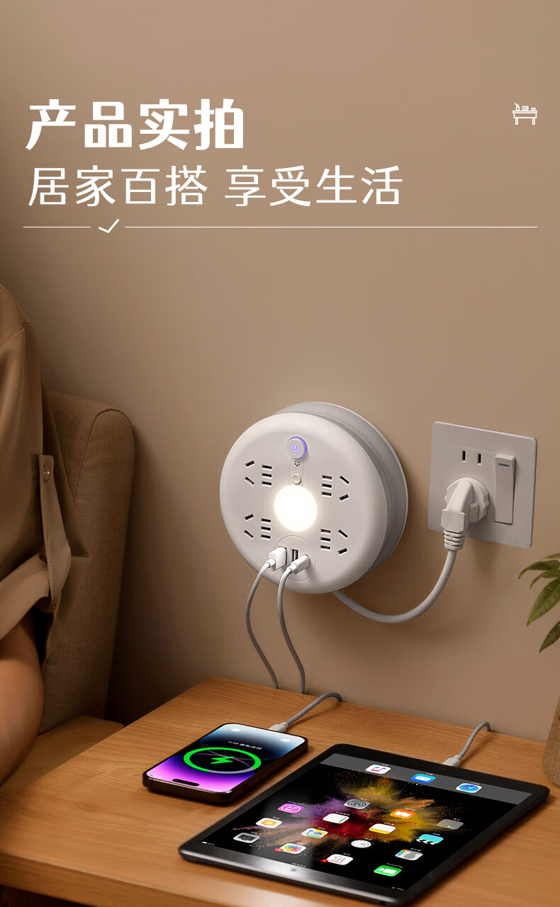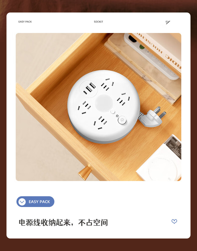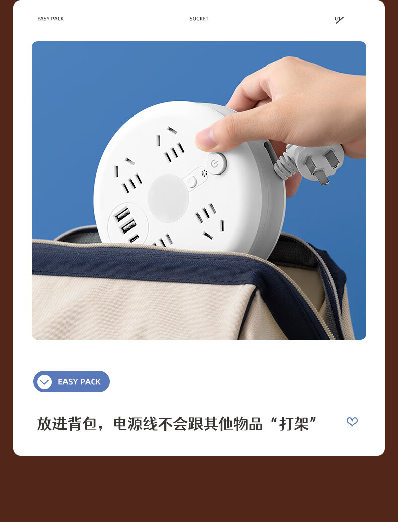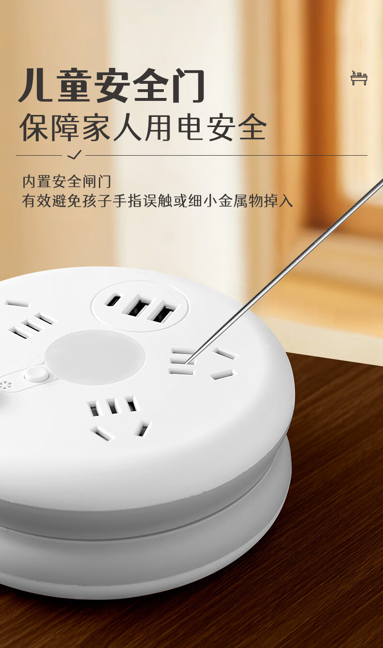 苏士赫尔摩多功能可收纳卷线隐藏2USB+Type-C插座可爬墙壁挂插线板/插排/插板/接线板/拖线板 总控4位3.9米