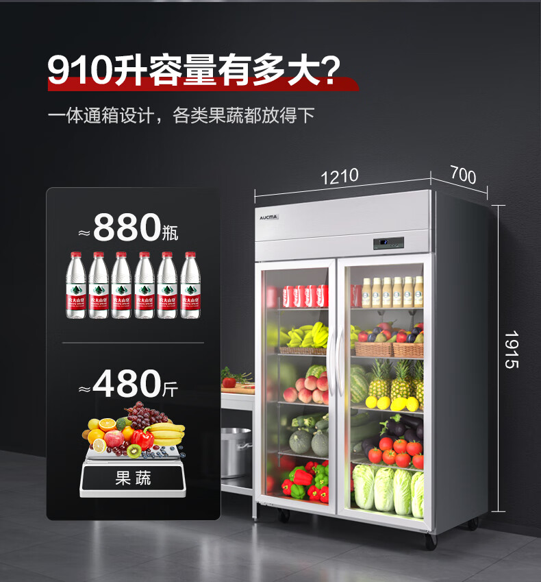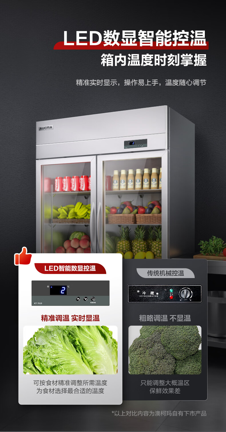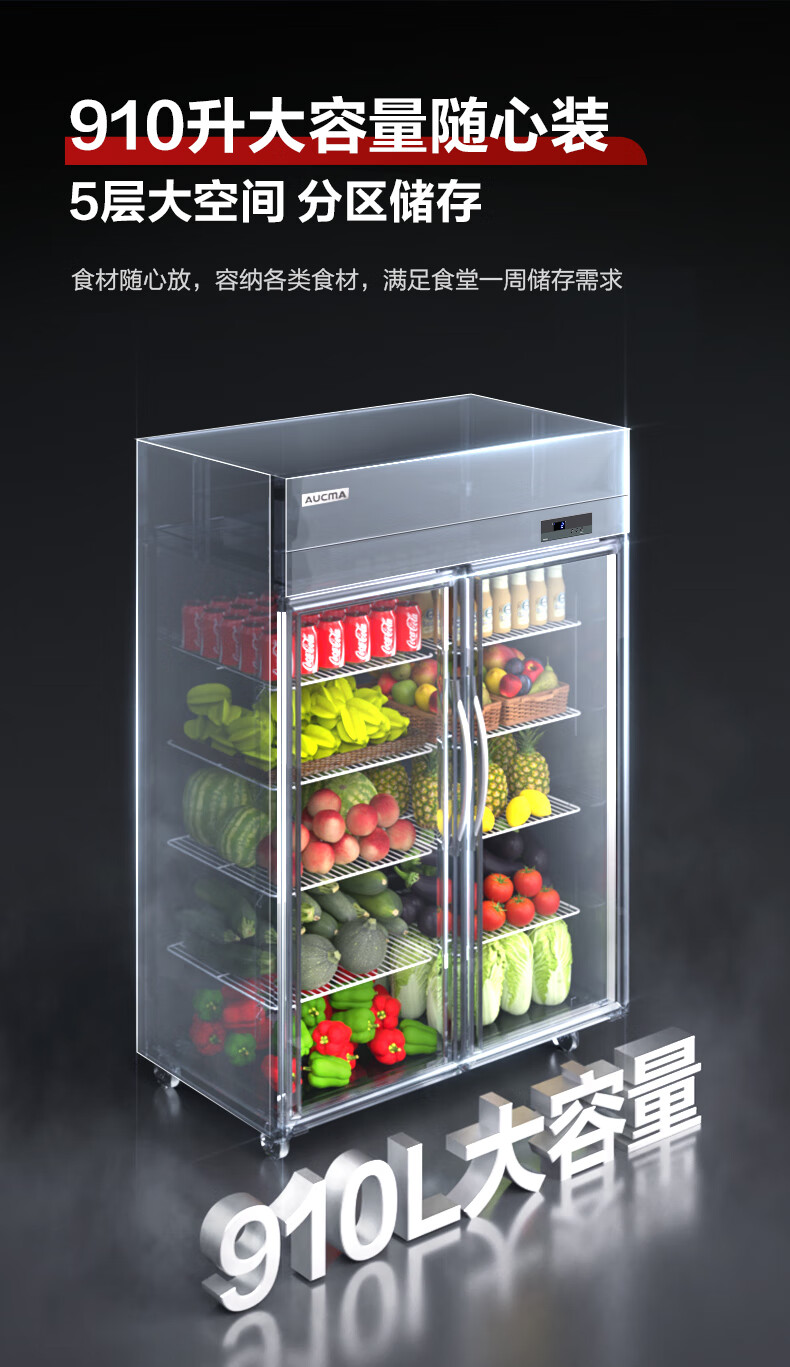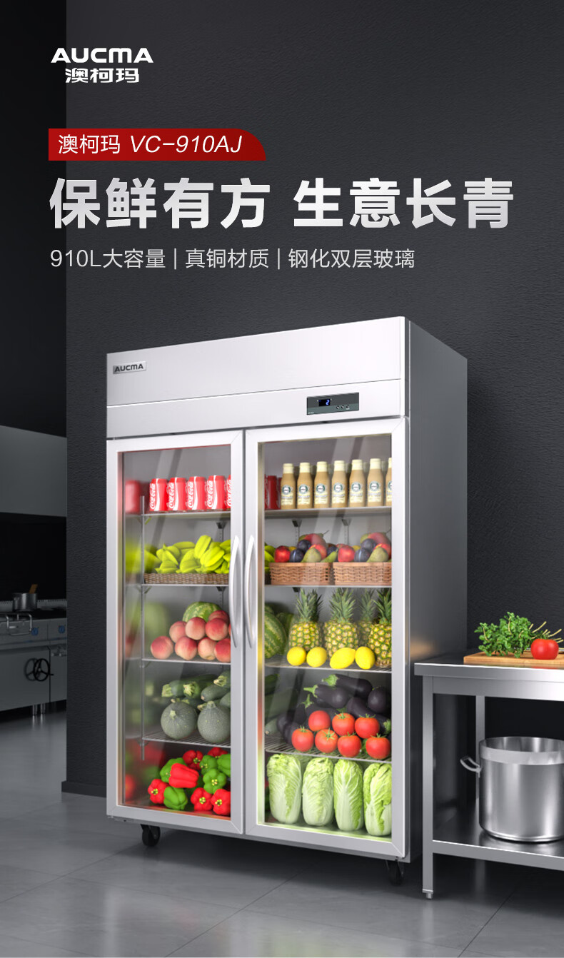 澳柯玛(AUCMA)展示柜冷藏保鲜柜双开门立式冰柜冰箱商用大容量水果蔬菜饮料啤酒串串麻辣烫食堂超市饭店陈列柜 910升双门铜管冷藏保鲜柜 VC-910AJ
