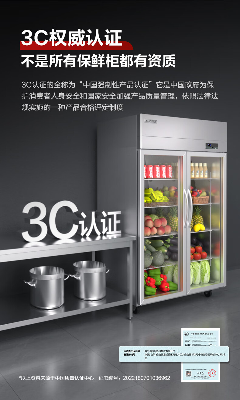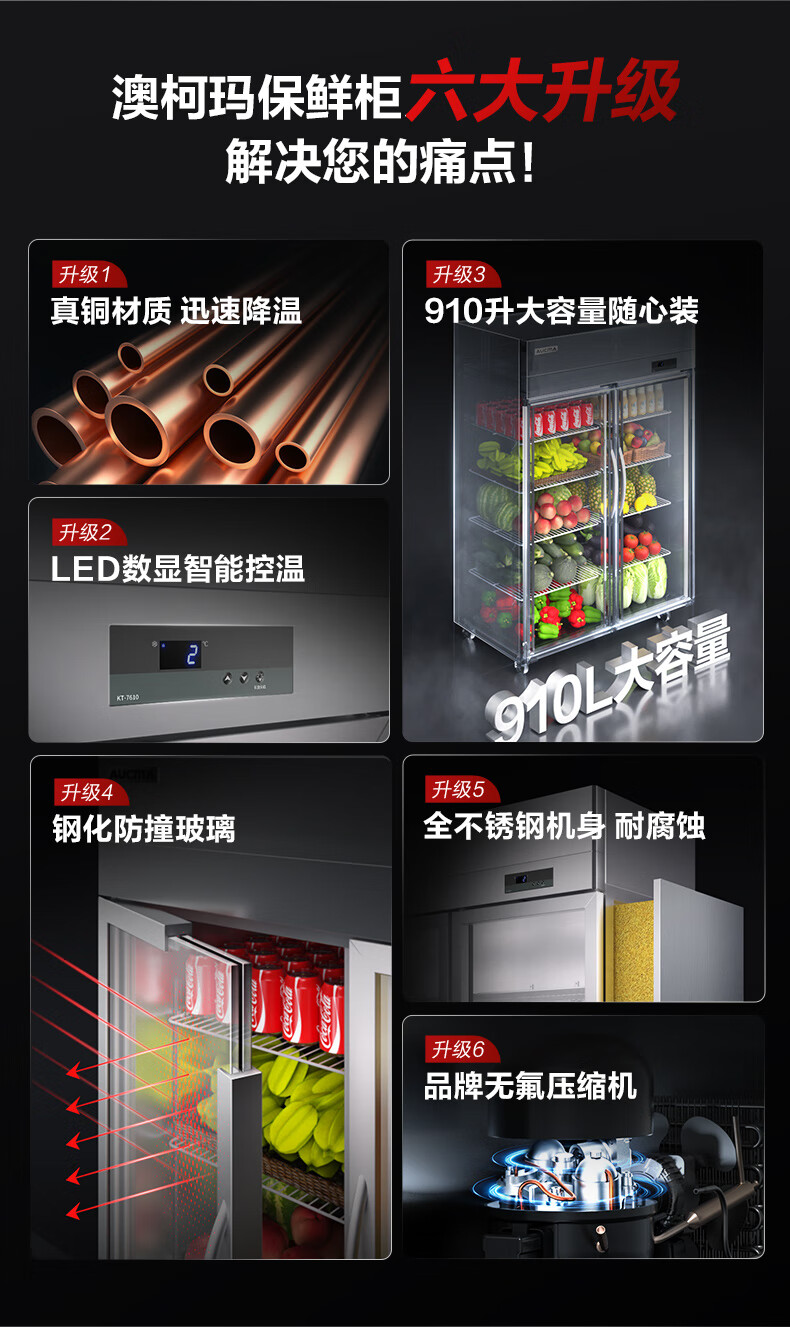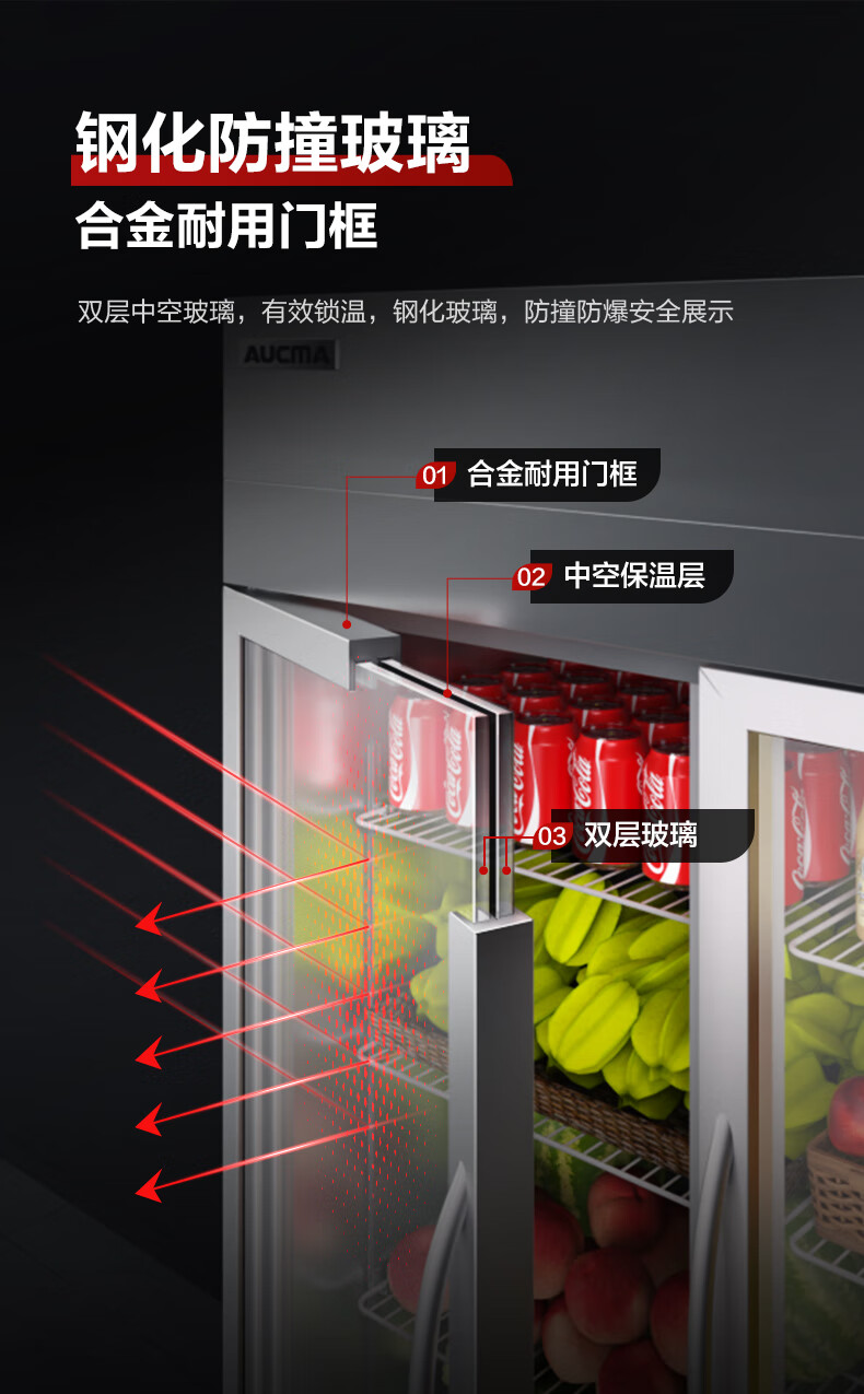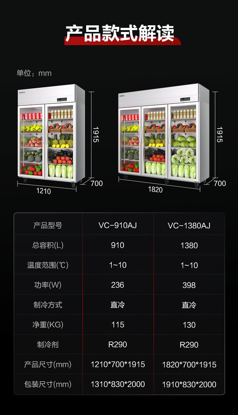 澳柯玛(AUCMA)展示柜冷藏保鲜柜双开门立式冰柜冰箱商用大容量水果蔬菜饮料啤酒串串麻辣烫食堂超市饭店陈列柜 910升双门铜管冷藏保鲜柜 VC-910AJ