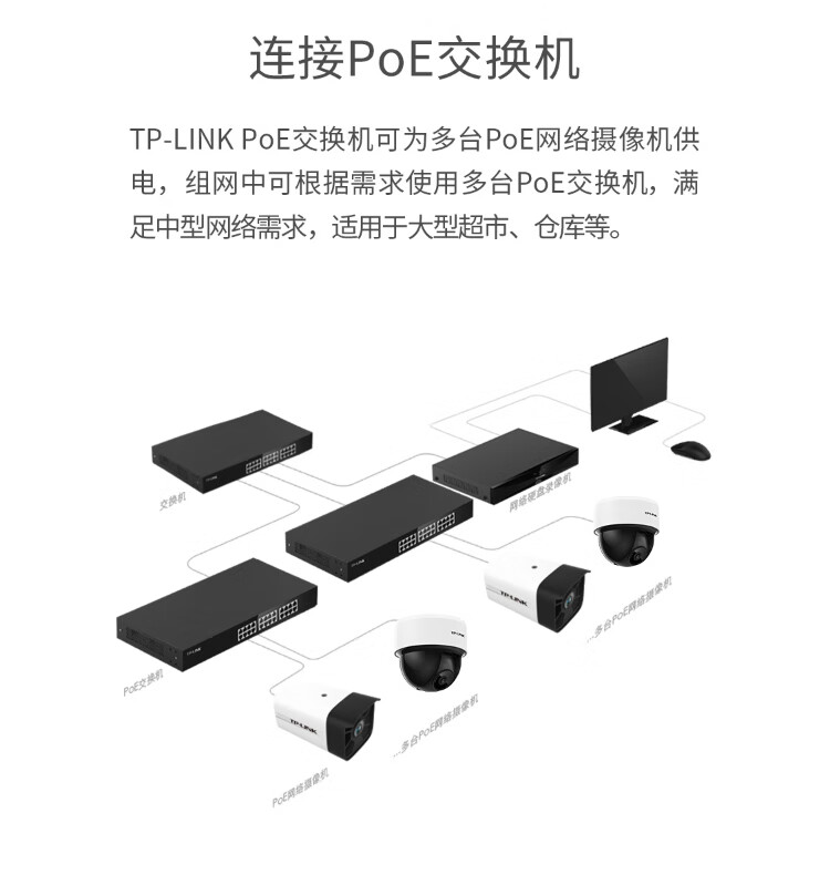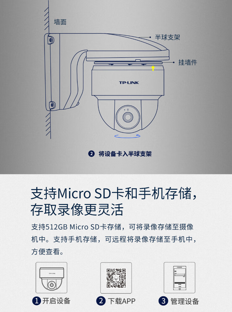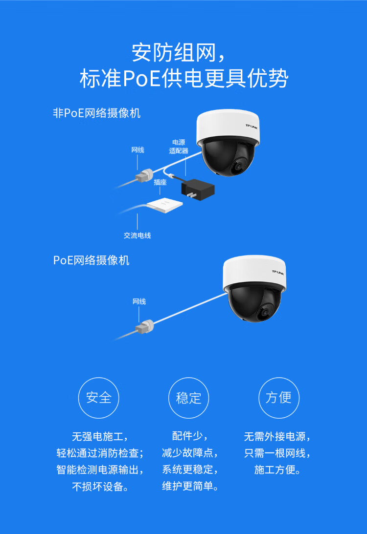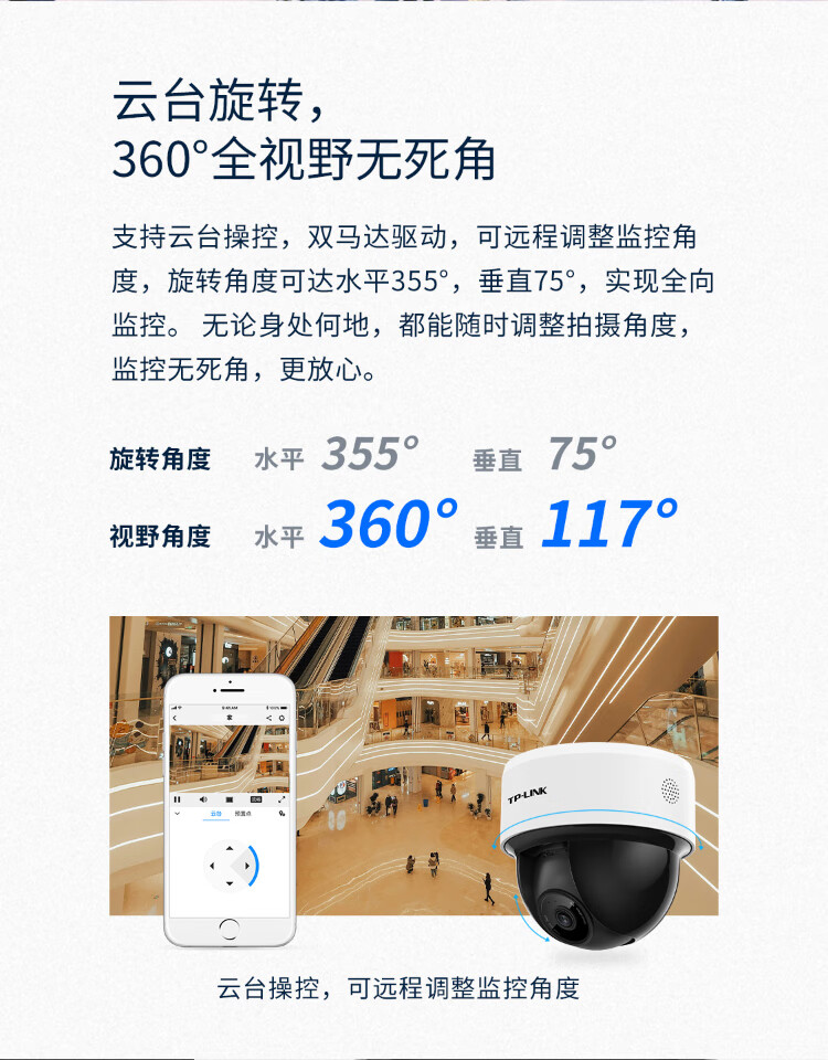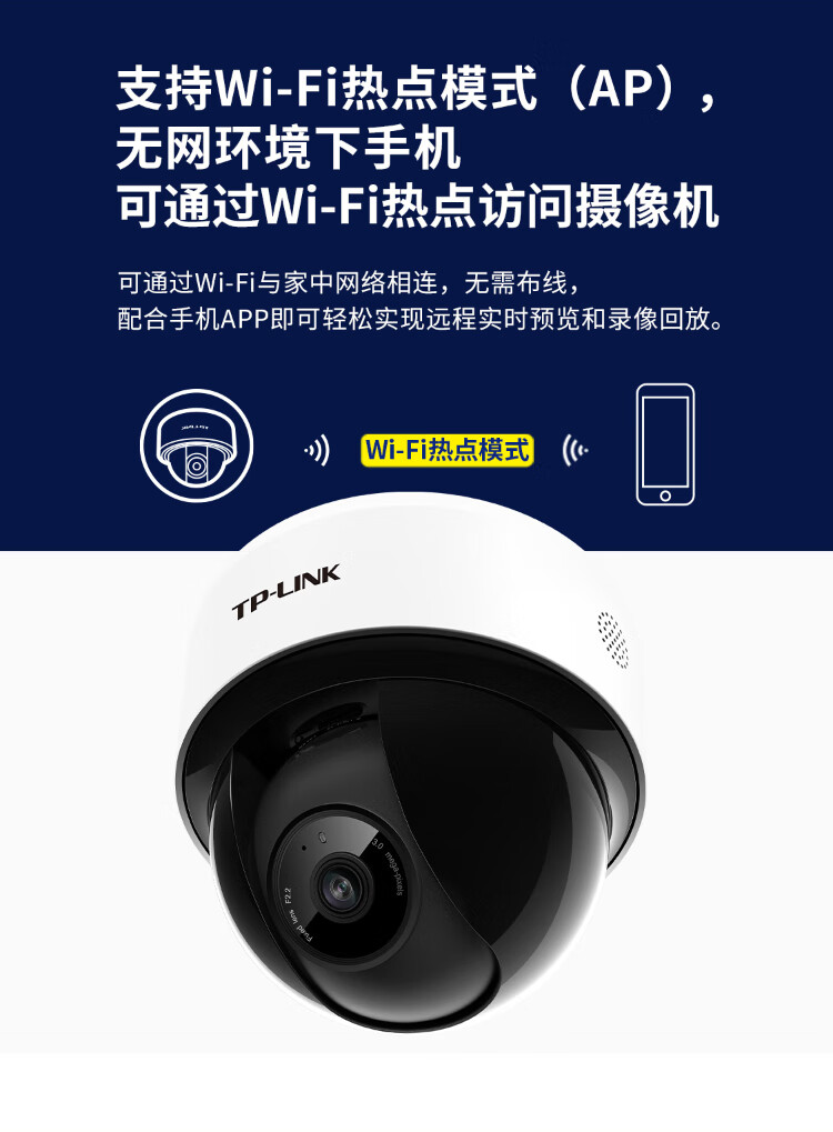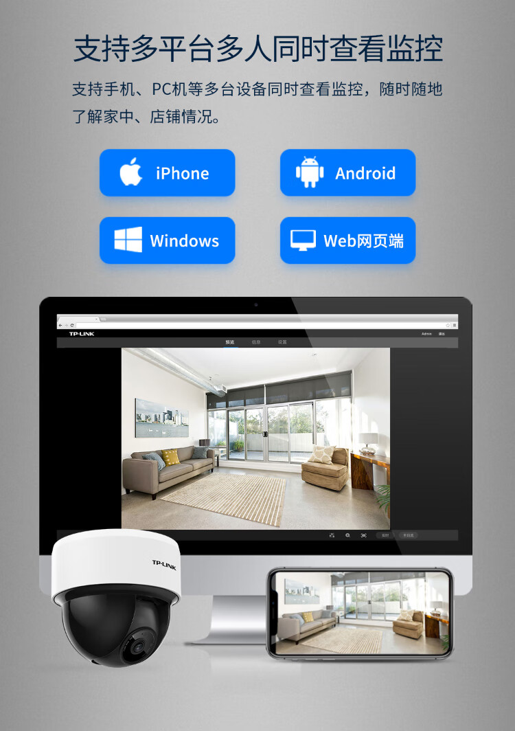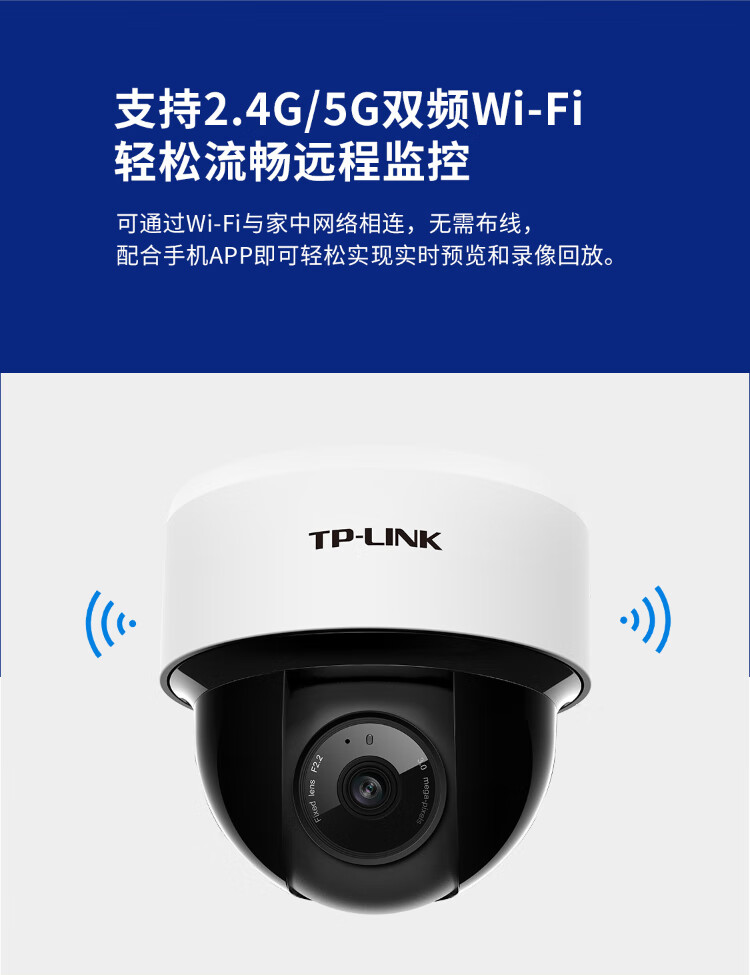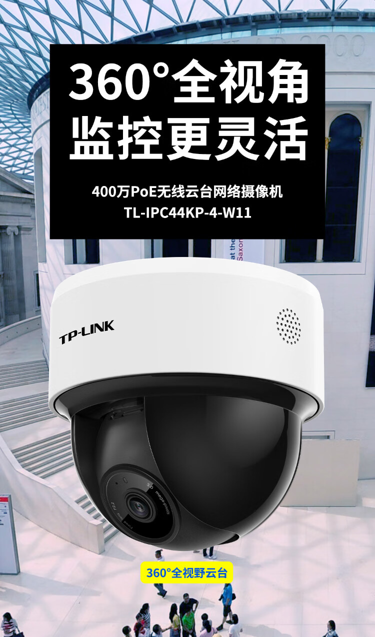 普联(TP-LINK)400万POE供电5G双频wifi无线摄像头家用监控器360全景无线家庭室内tplink网络手机远程IPC44KP-4-W