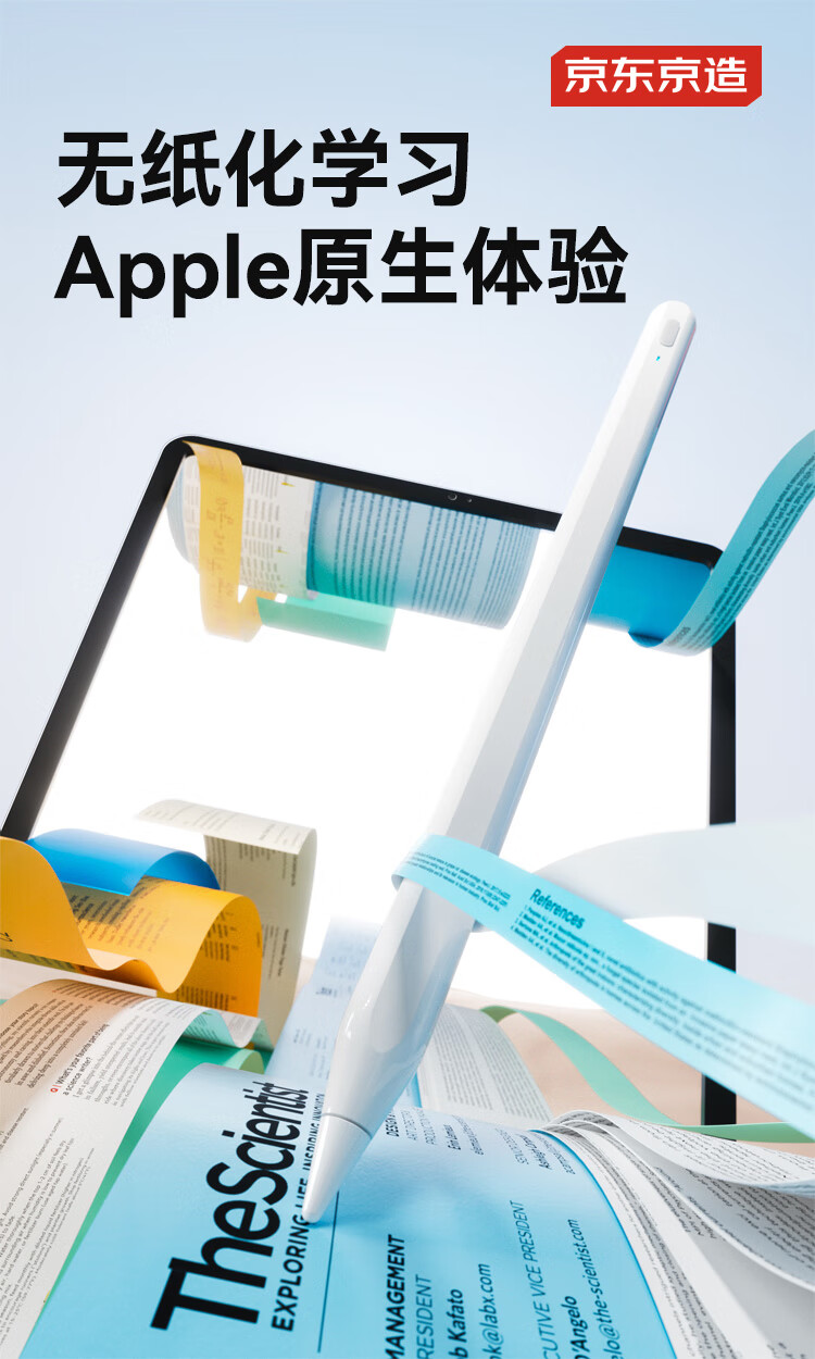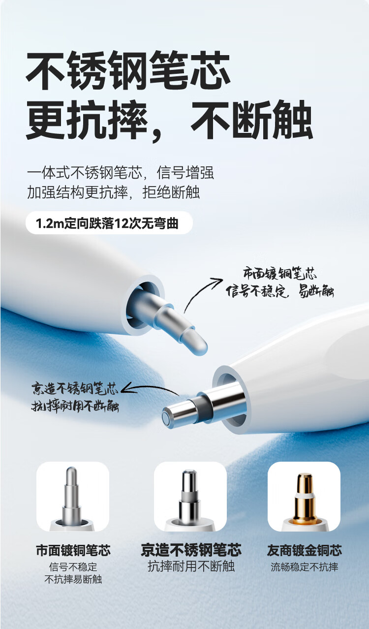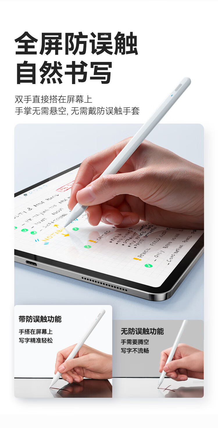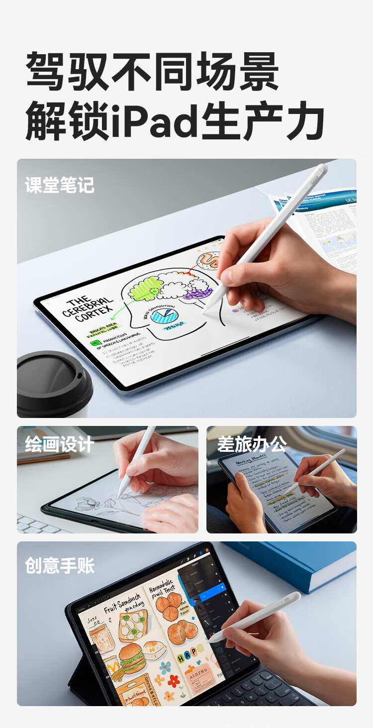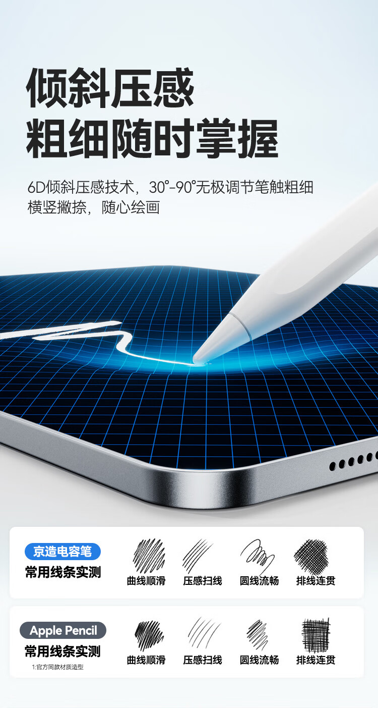 京东京造电容笔iPad苹果笔适用25年Pro/Air/Mini/iPad11平板触控触屏手写笔applepencil二代防误触
