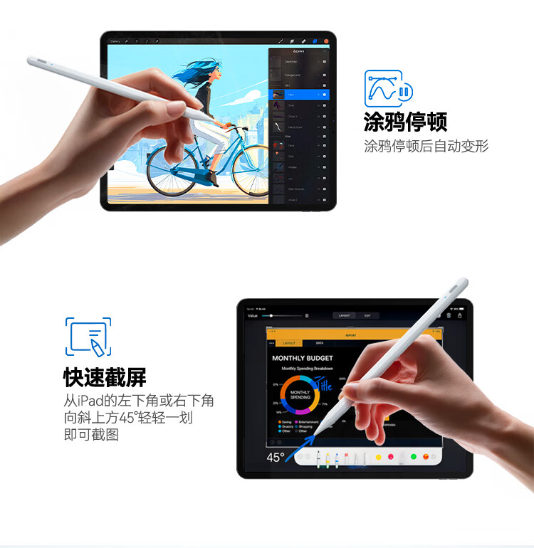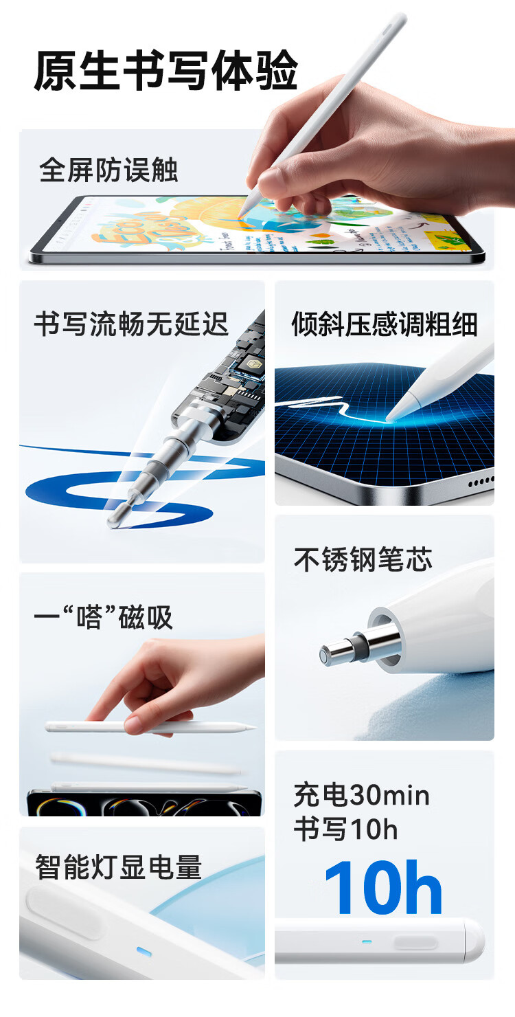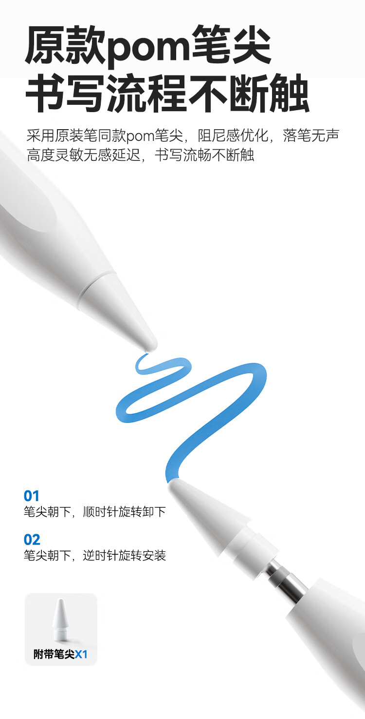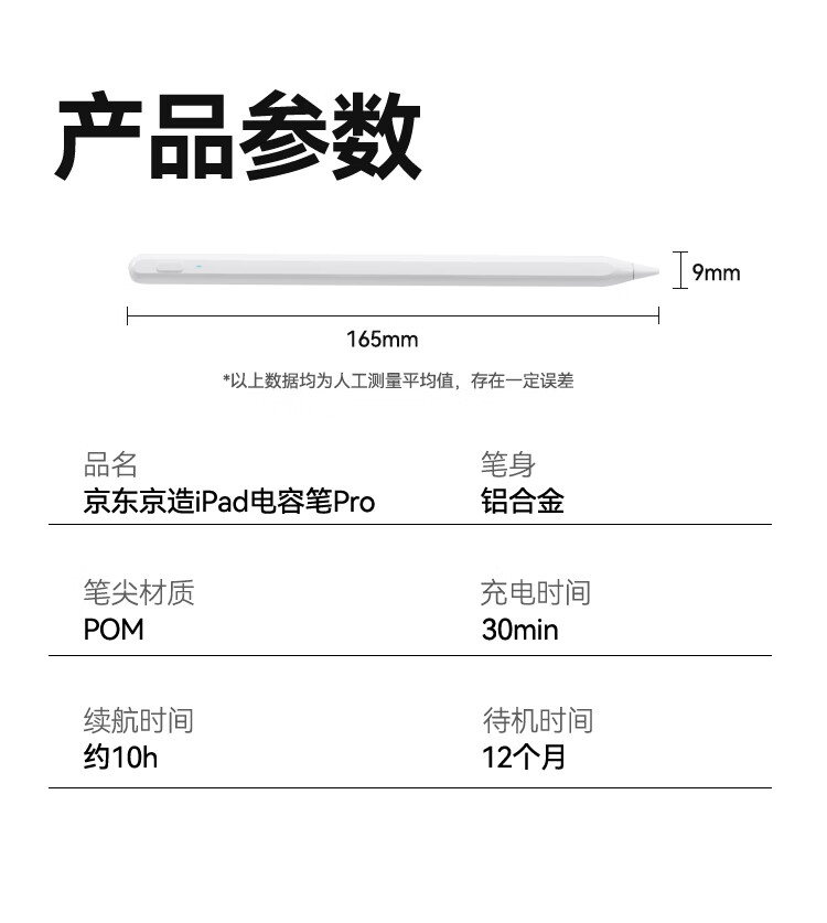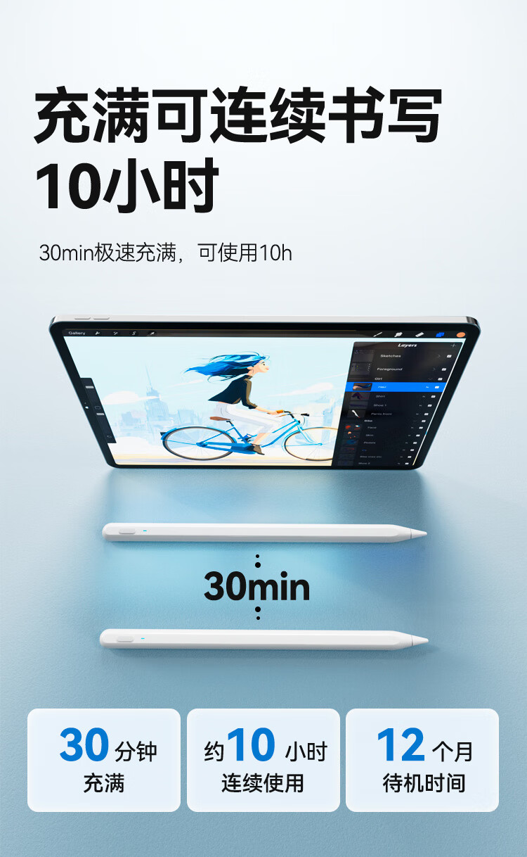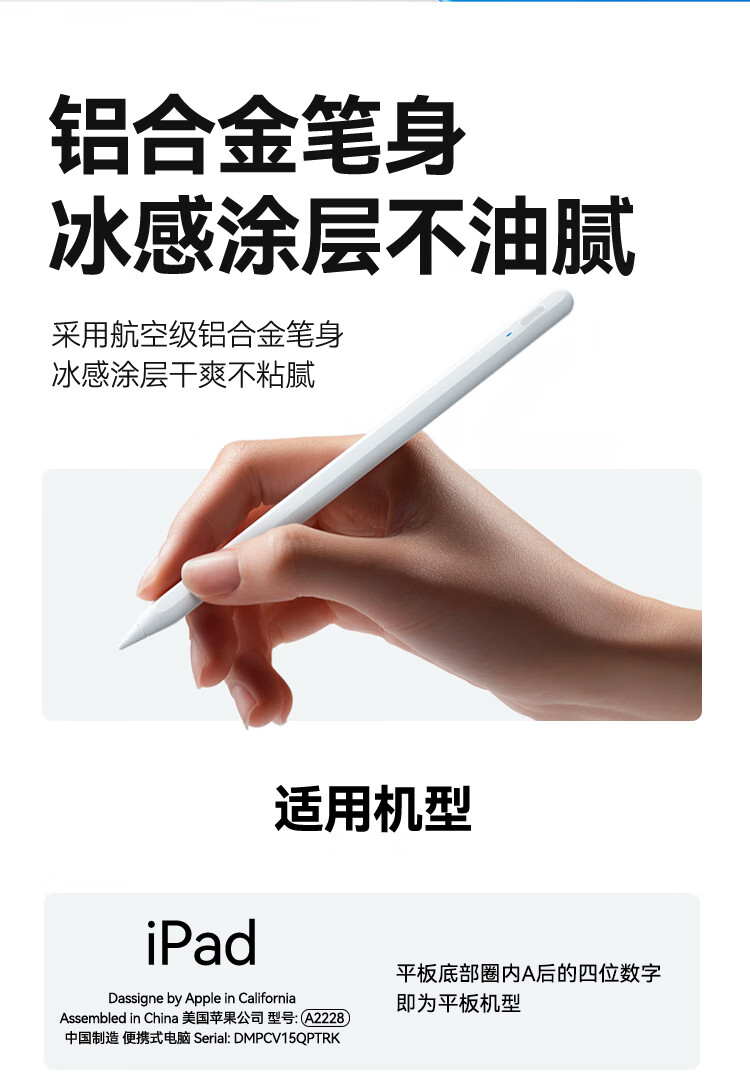 京东京造电容笔iPad苹果笔适用25年Pro/Air/Mini/iPad11平板触控触屏手写笔applepencil二代防误触