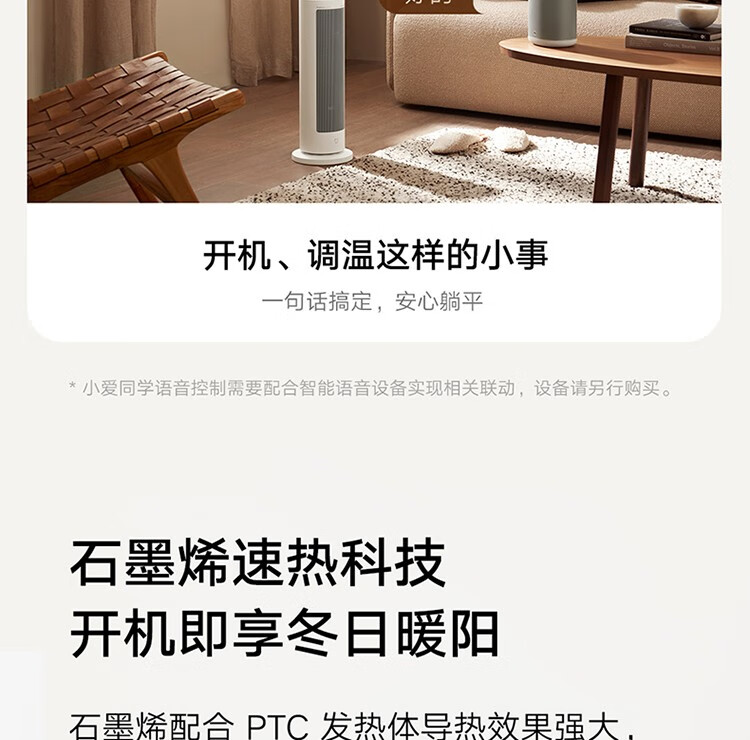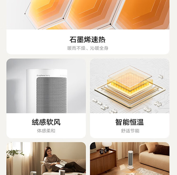 米家小米石墨烯暖风机 电暖器取暖器 石墨烯速热 2000W大功率立体制热卧室 烘干衣物 电暖气 米家石墨烯暖风机