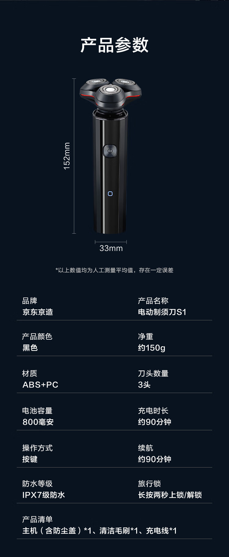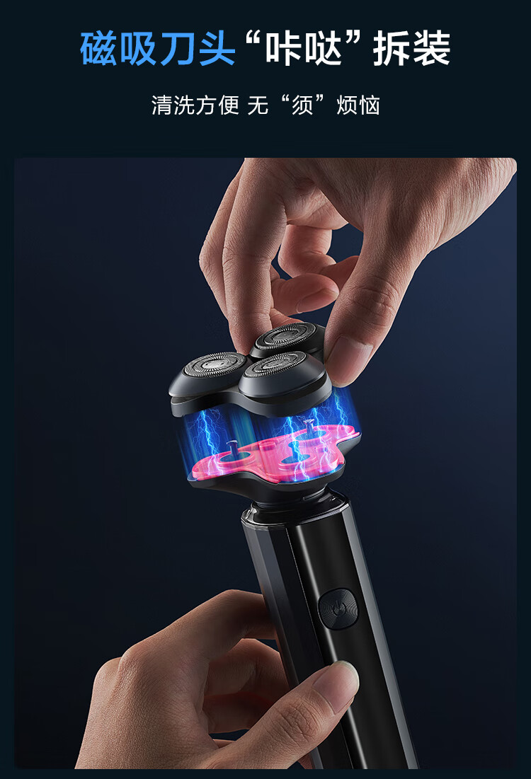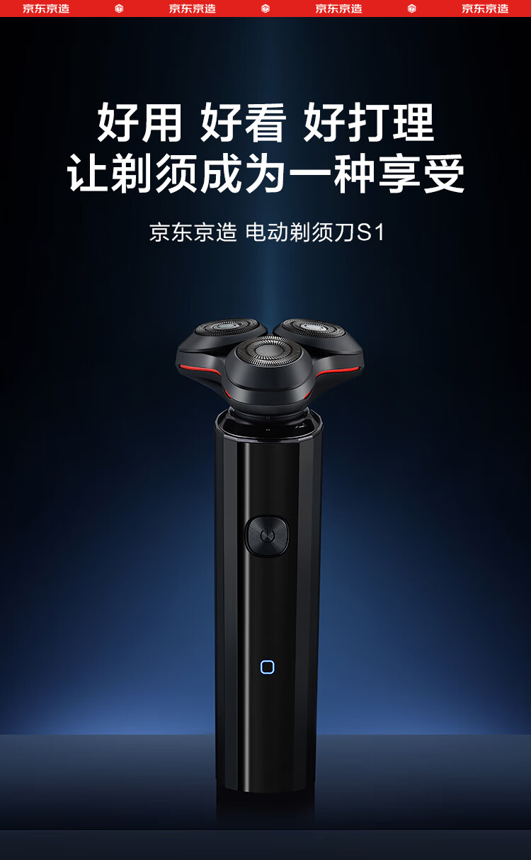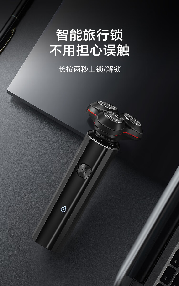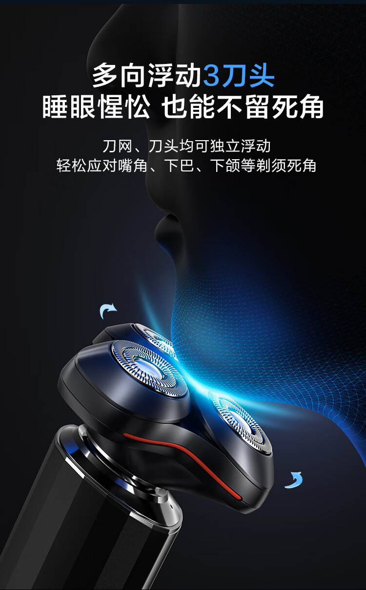 京东京造三头剃须刀便携款 长续航电动刮胡刀电动胡须刀电动剃须刀旋转式剃须刀可水洗 生日礼物男
