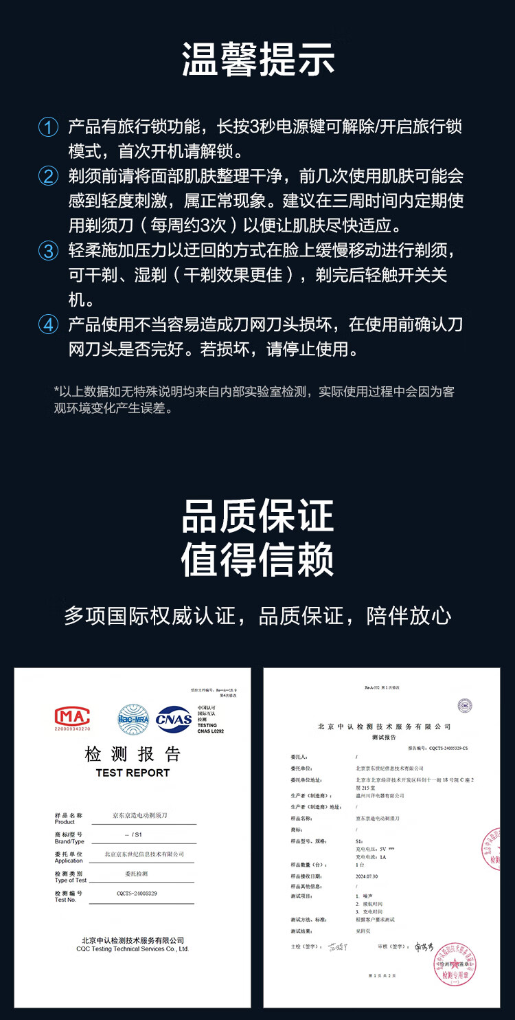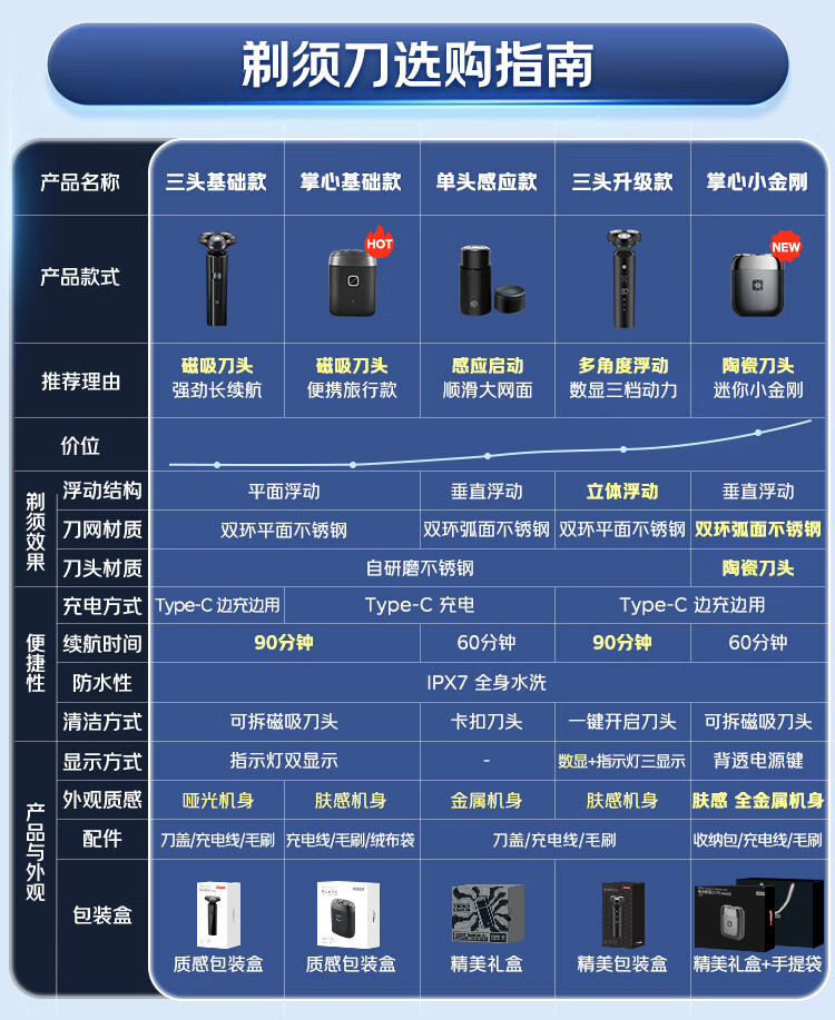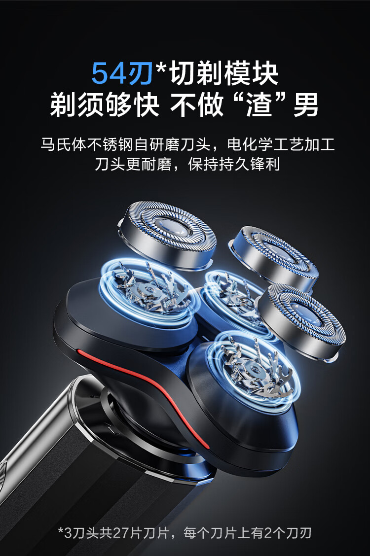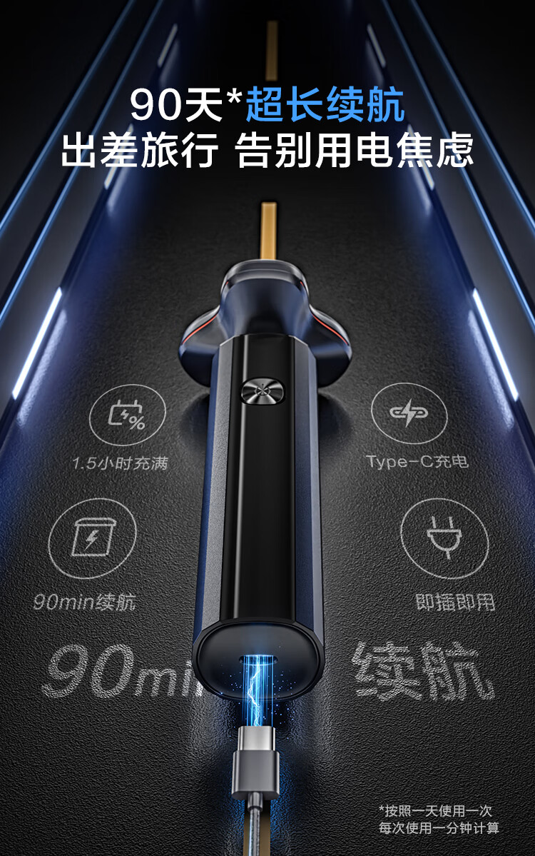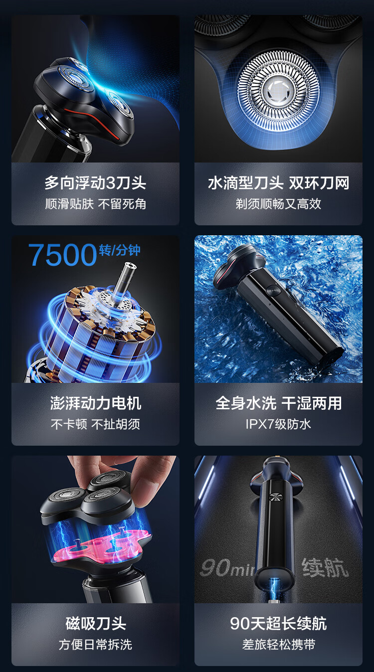 京东京造三头剃须刀便携款 长续航电动刮胡刀电动胡须刀电动剃须刀旋转式剃须刀可水洗 生日礼物男