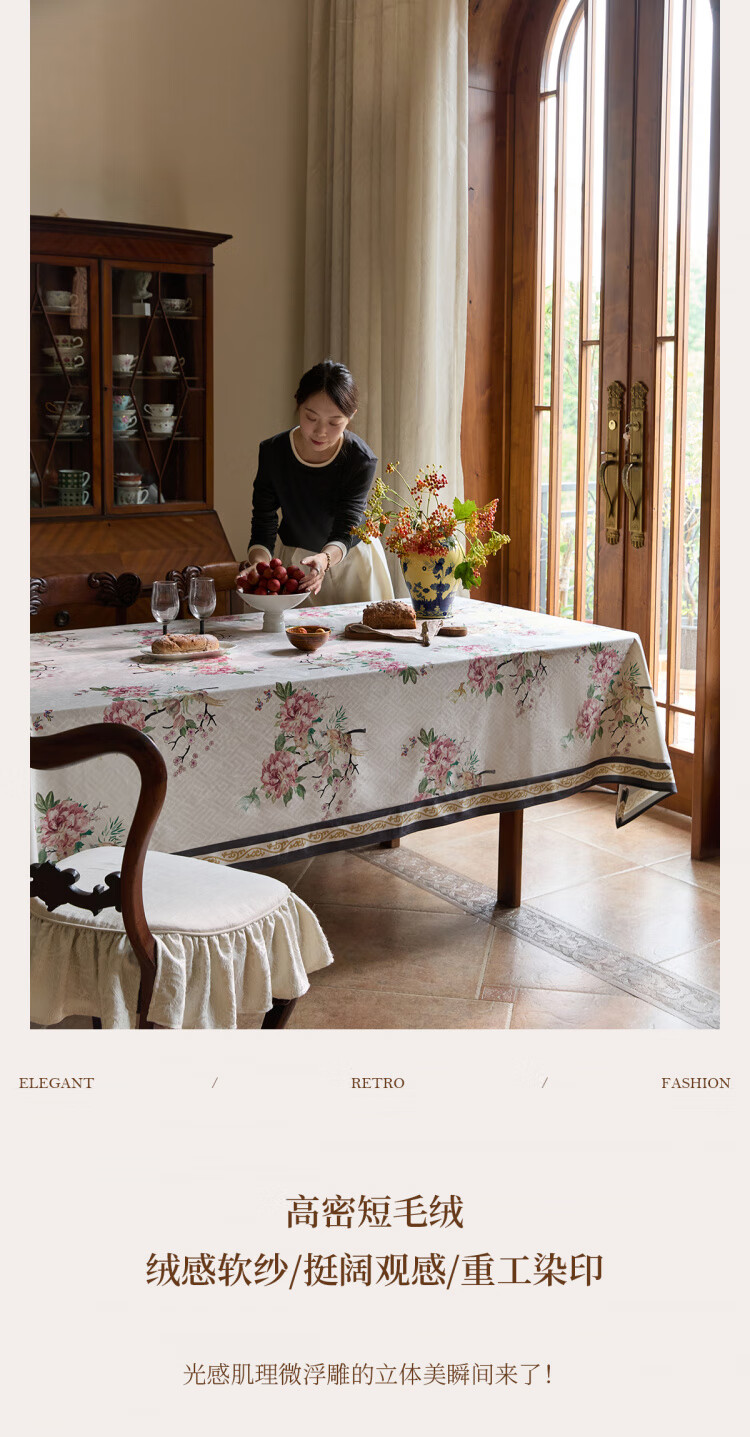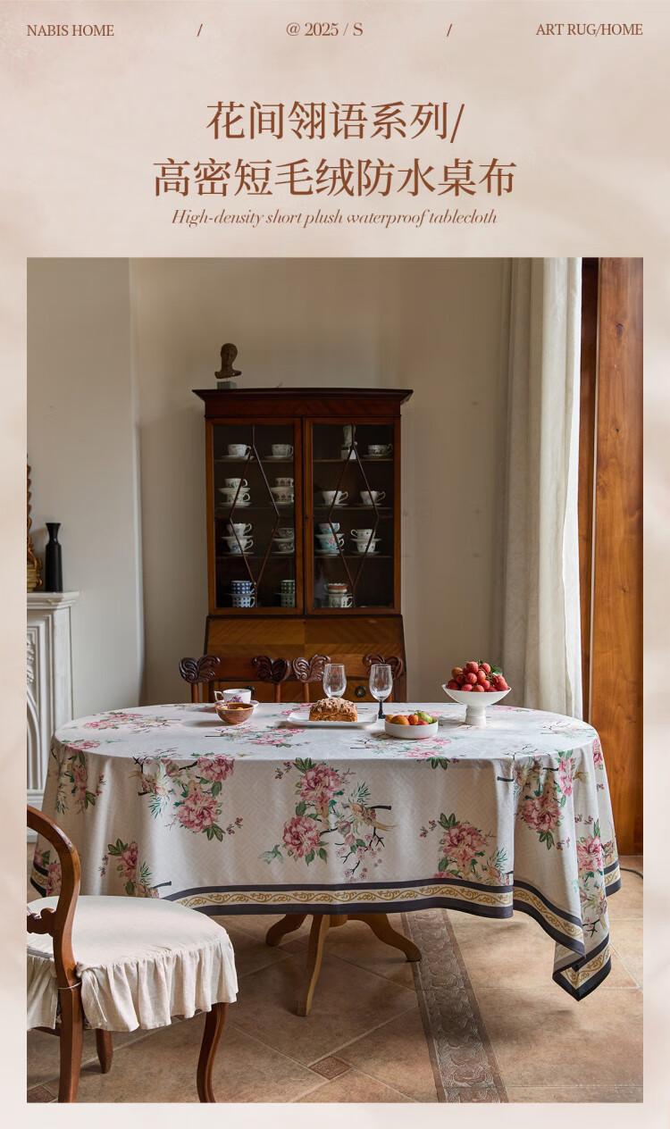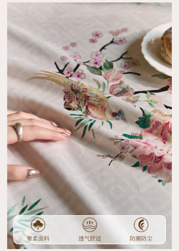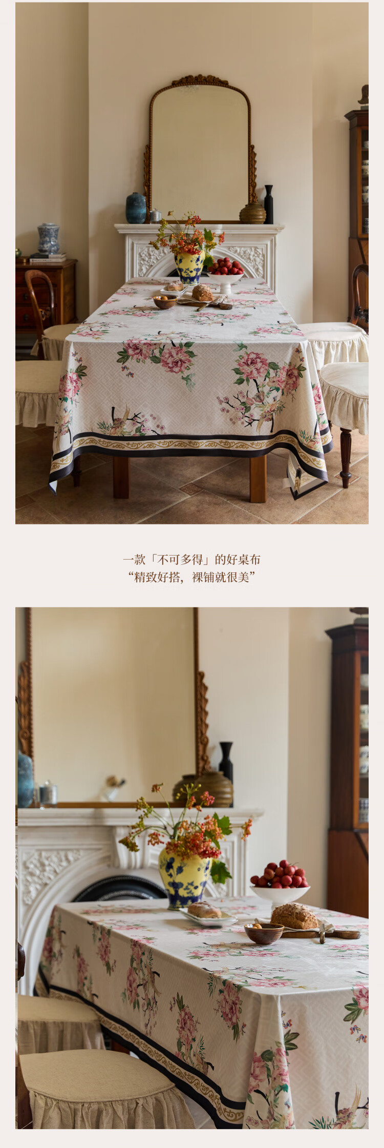 蜡笔派(Nabis)花间翎语桌布法式中国风氛围感餐桌盖布防水桌布茶几布 花间翎语-桌布 140*220cm单层卷边款/4-6人餐桌