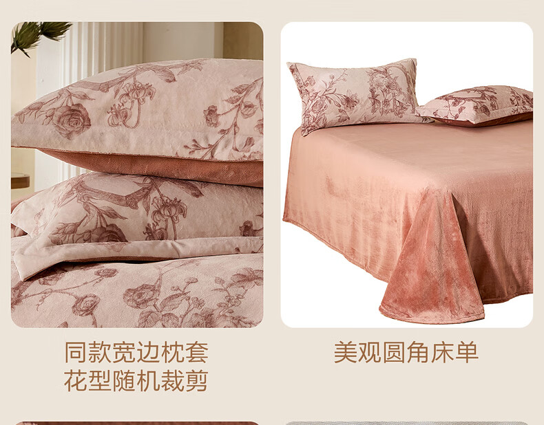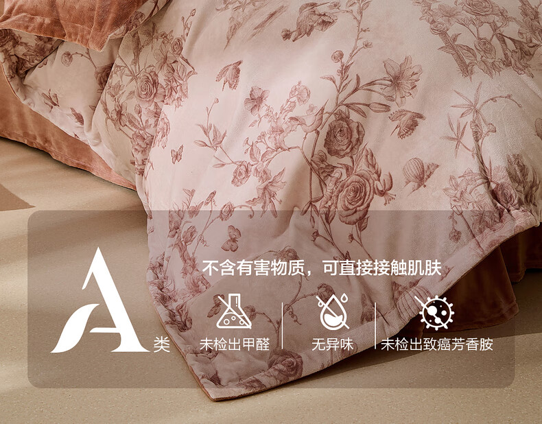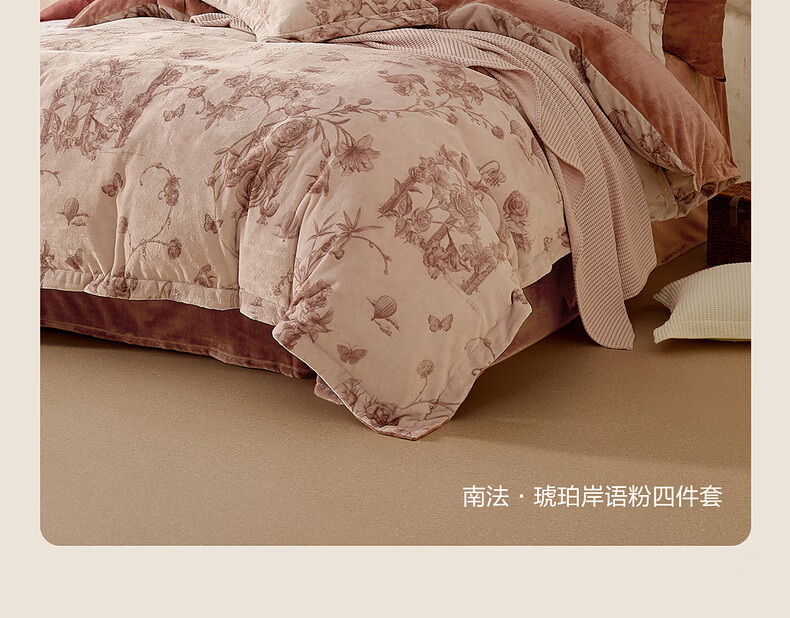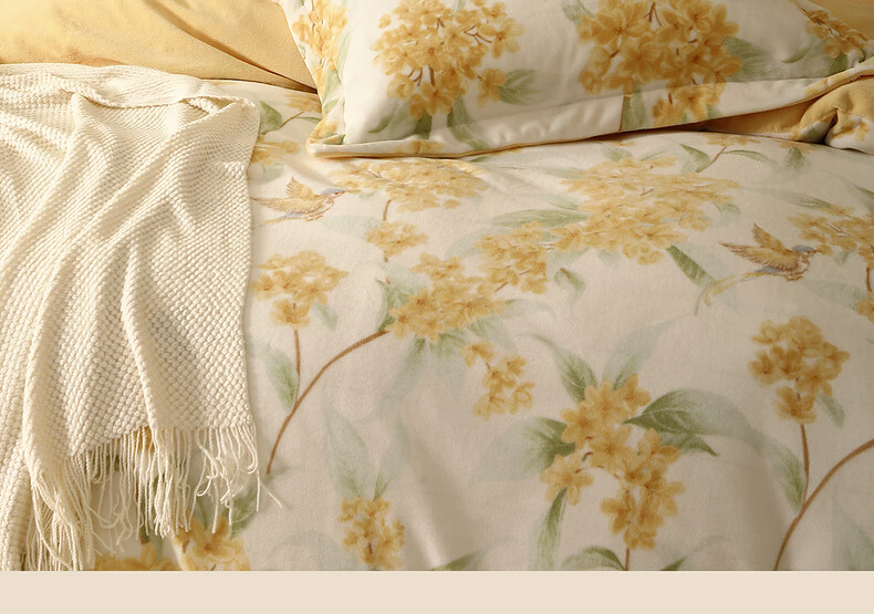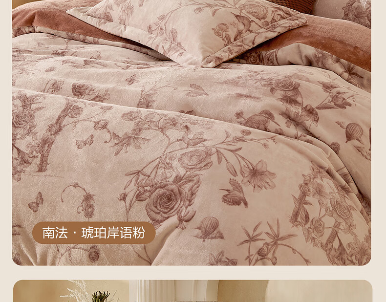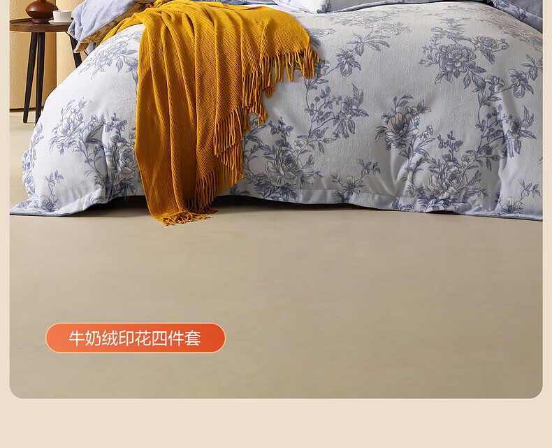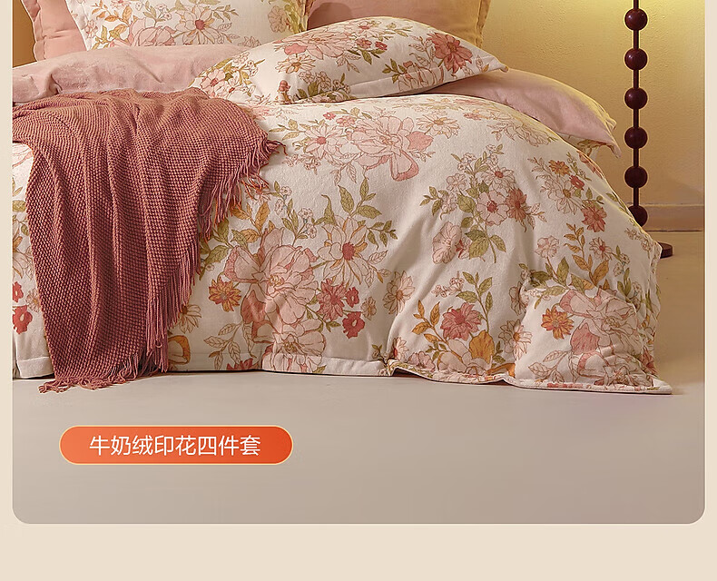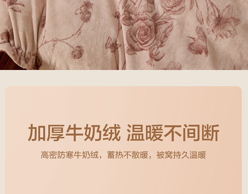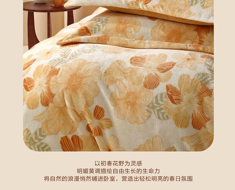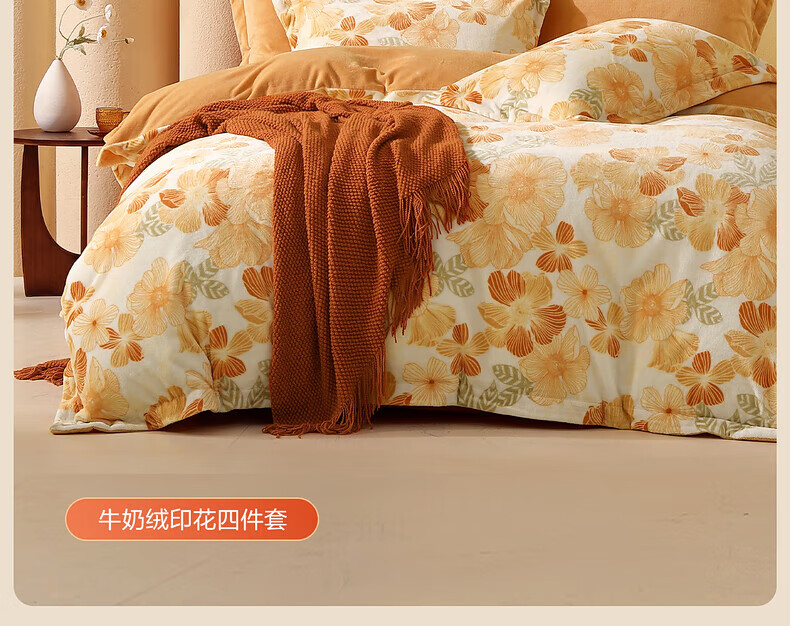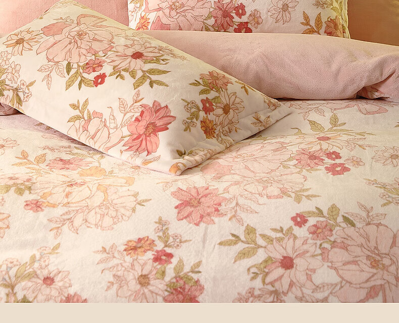 水星家纺四件套 暖绒牛奶绒四件套 秋冬加厚保暖抗静电套件 被套床单枕套 花海田园【牛奶绒&抗静电】 1.5床 床单款 (被套200*230cm)
