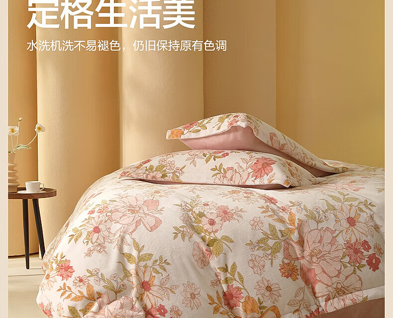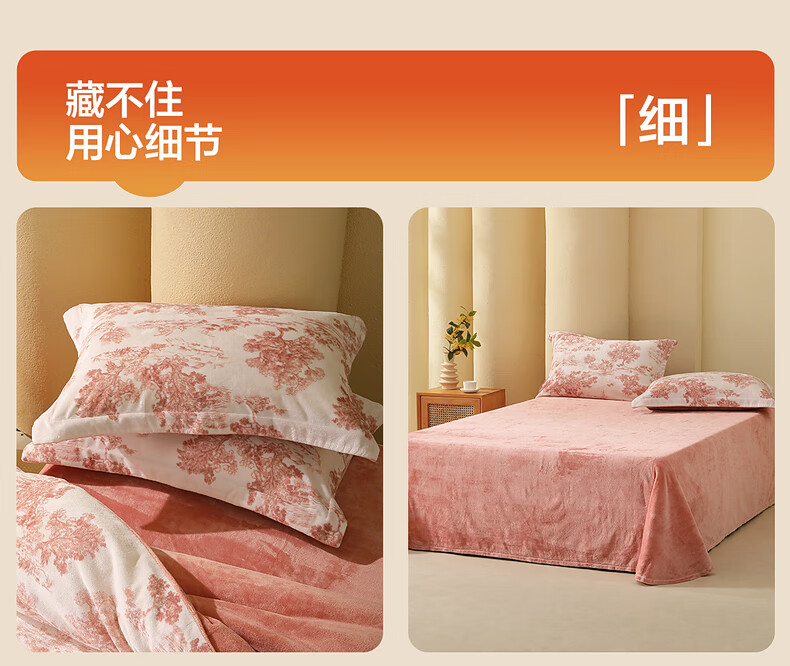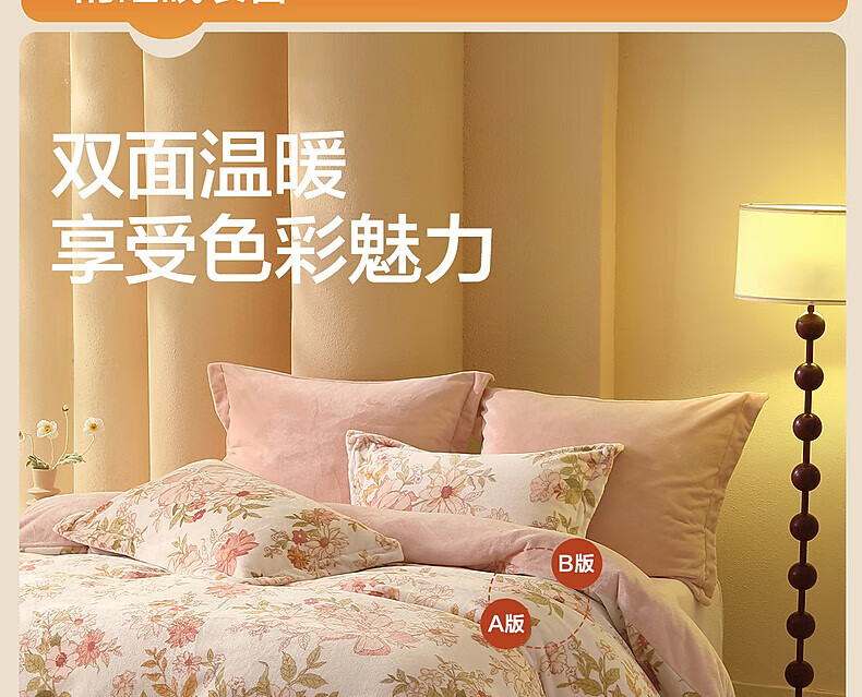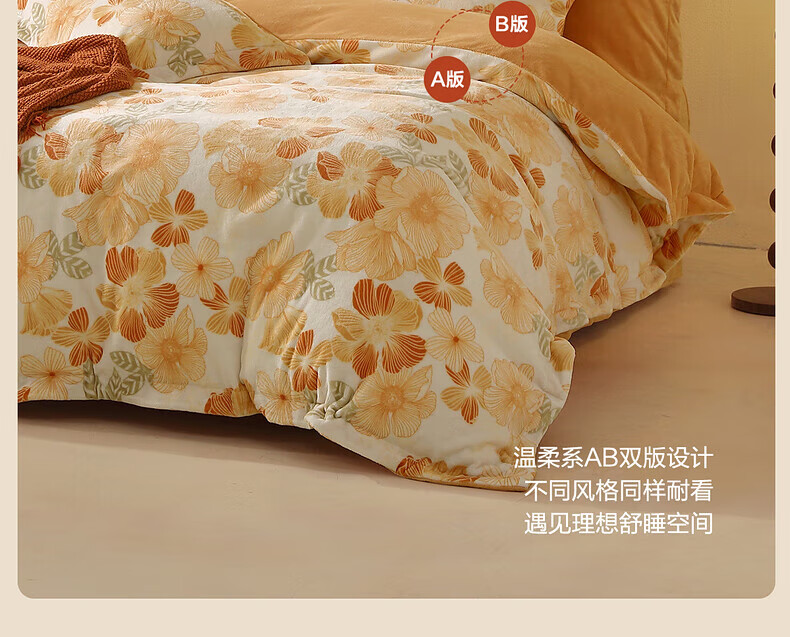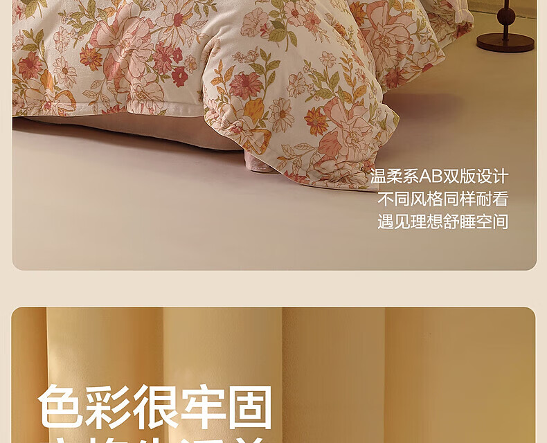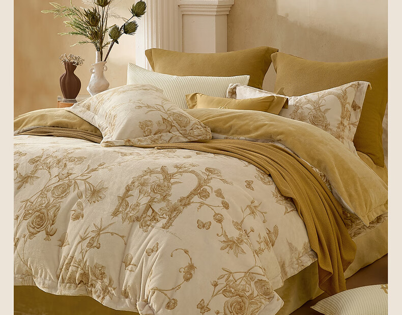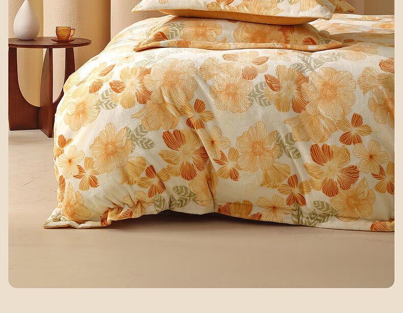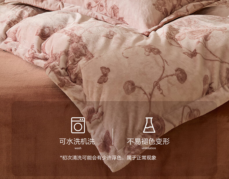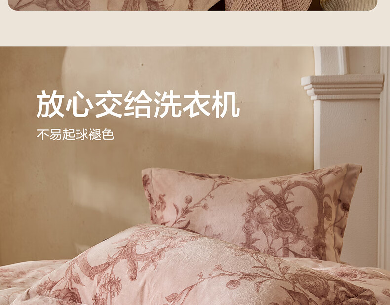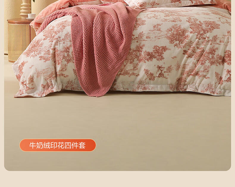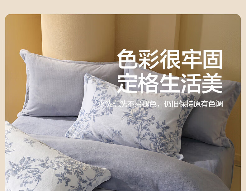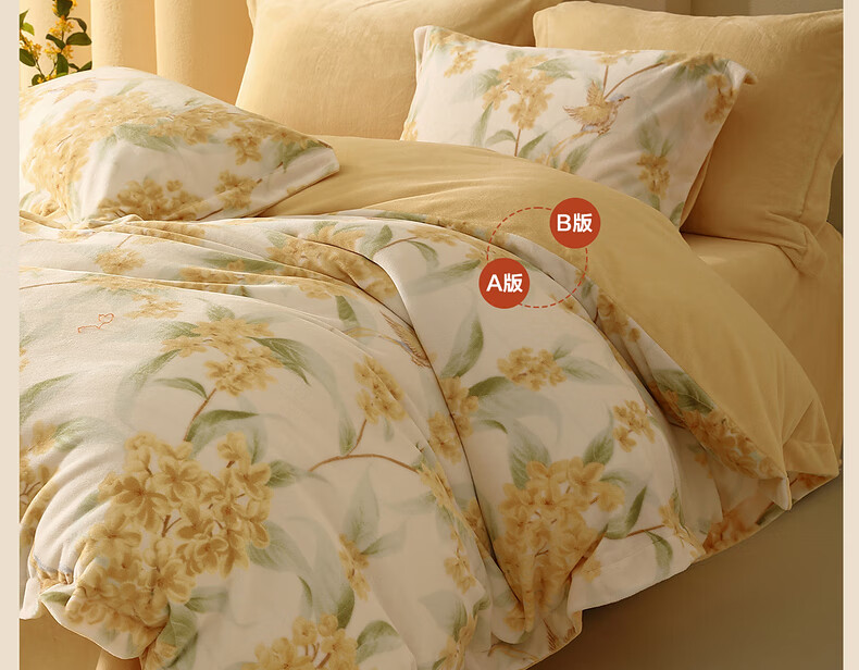水星家纺四件套 暖绒牛奶绒四件套 秋冬加厚保暖抗静电套件 被套床单枕套 花海田园【牛奶绒&抗静电】 1.5床 床单款 (被套200*230cm)