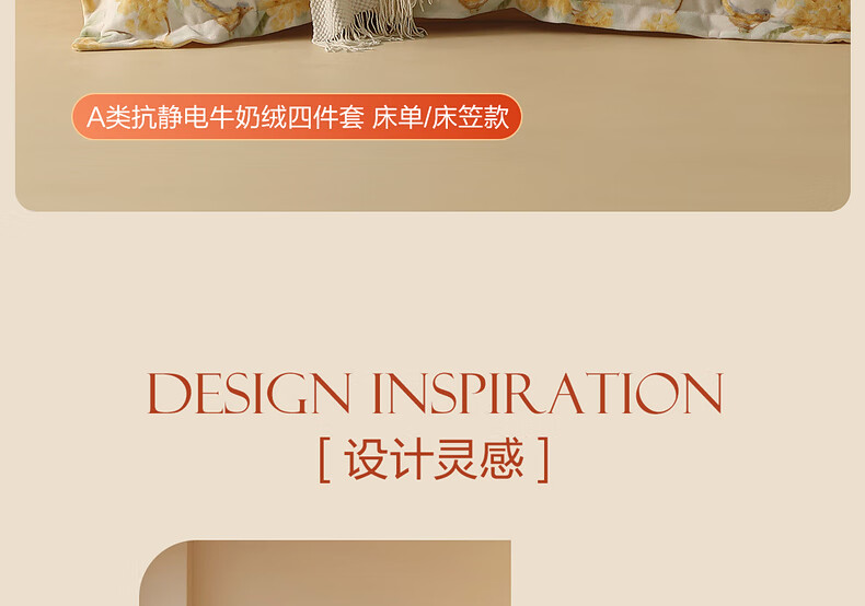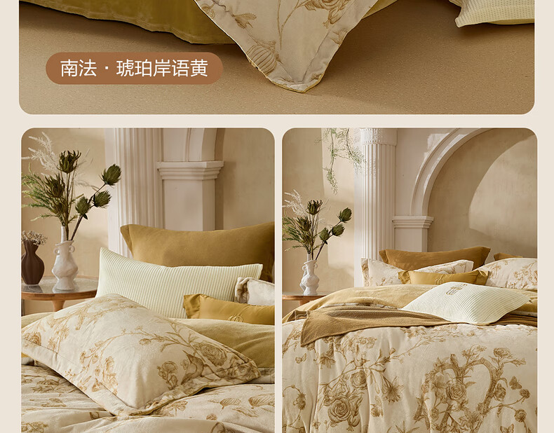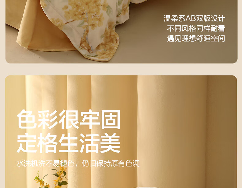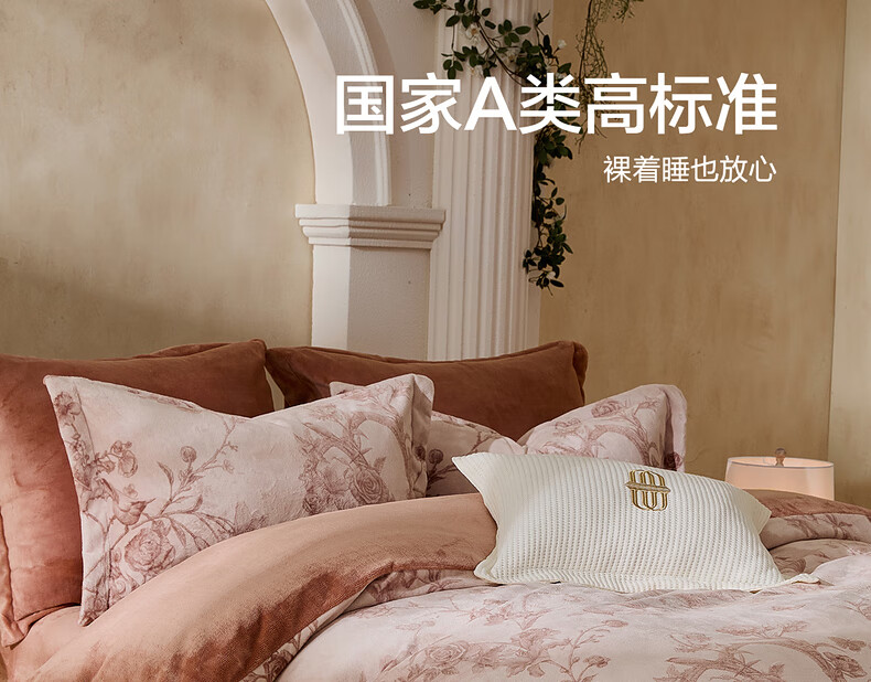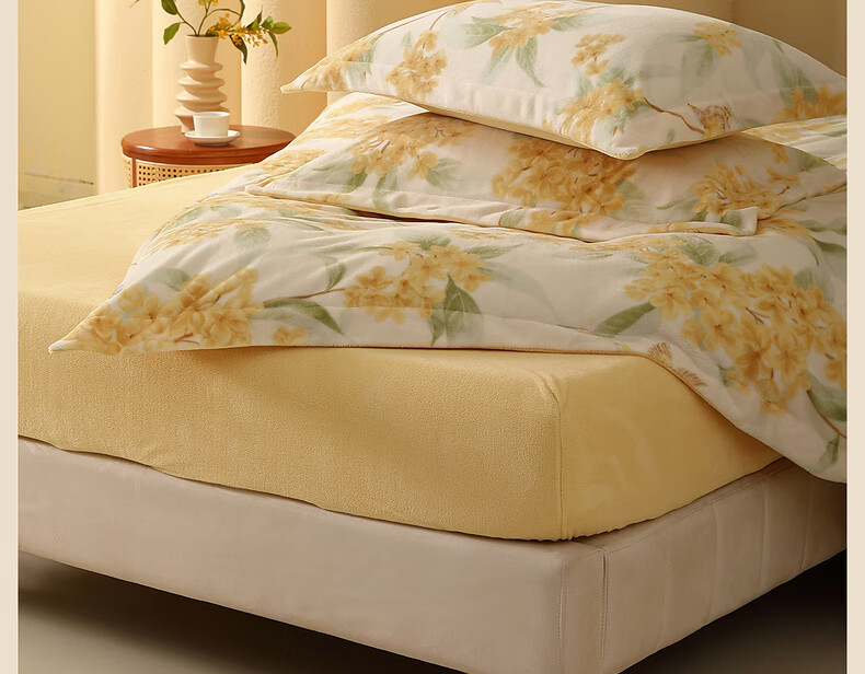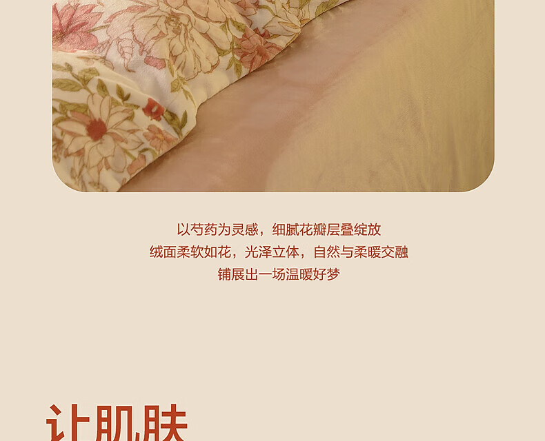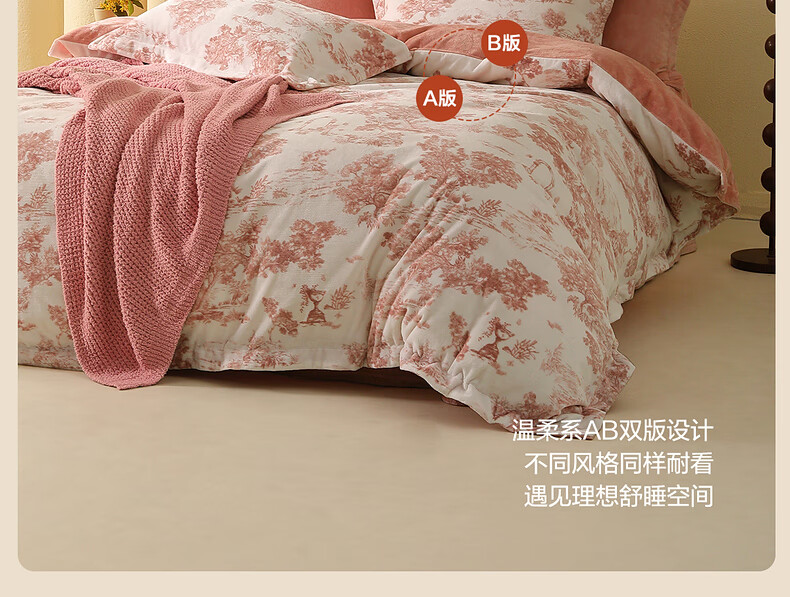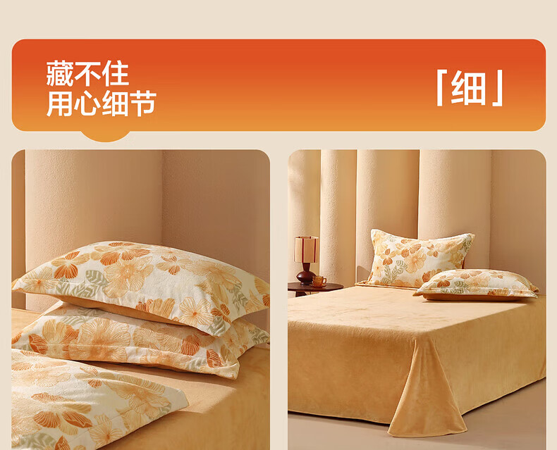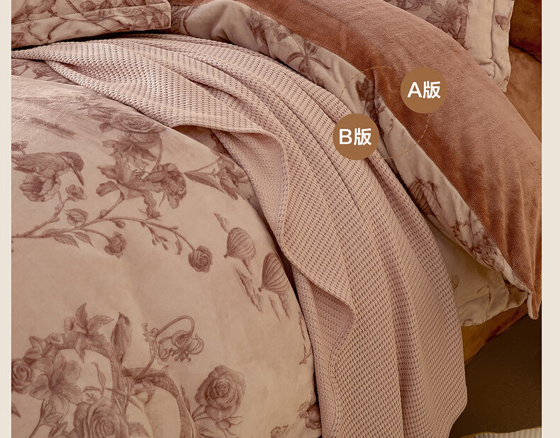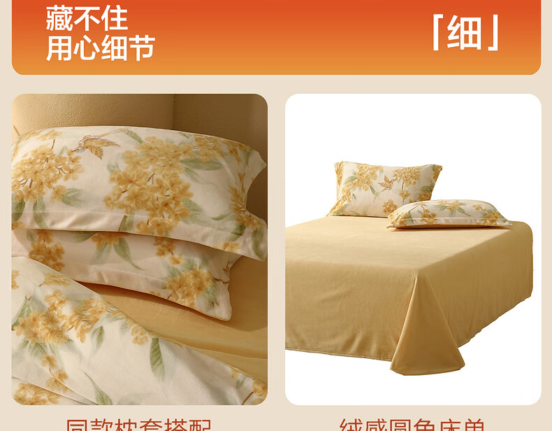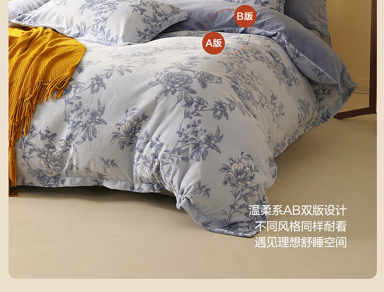 水星家纺四件套 暖绒牛奶绒四件套 秋冬加厚保暖抗静电套件 被套床单枕套 花海田园【牛奶绒&抗静电】 1.5床 床单款 (被套200*230cm)