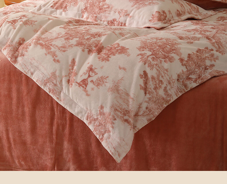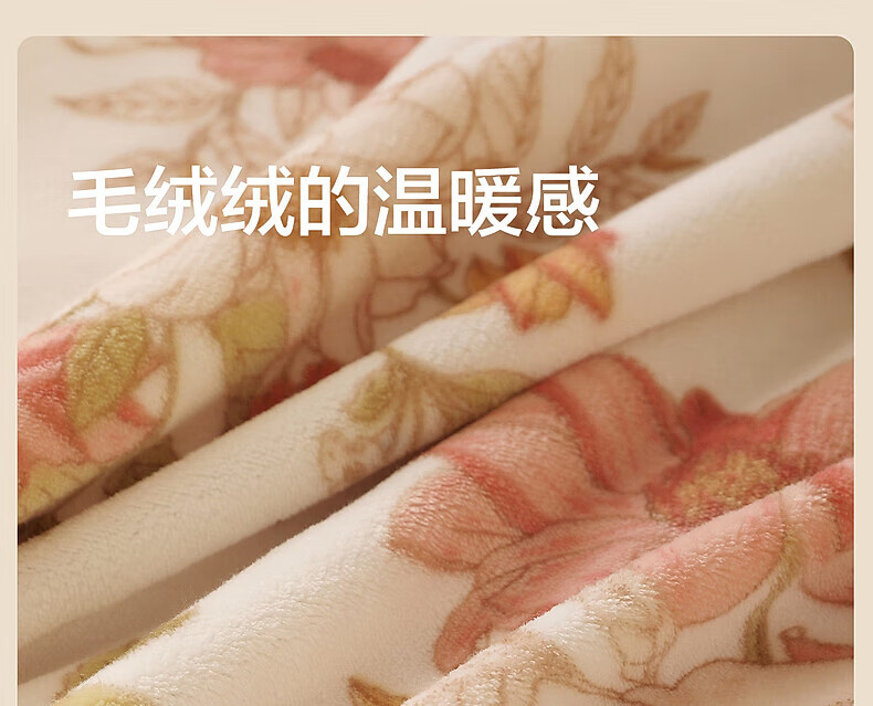 罗莱家纺 A类双面加厚绒法兰绒牛奶绒盖毯沙发毯珊瑚绒午睡毯 绒绒福气多用毯 粉色 96*120cm