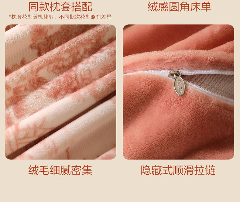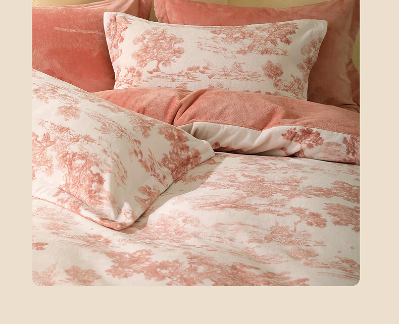 苏萱韩版法式花边款加厚牛奶绒四件套双面宝宝绒珊瑚绒被套夹棉床裙款 香缇粉 1.8m 床盖款 四件套-被套200x230cm