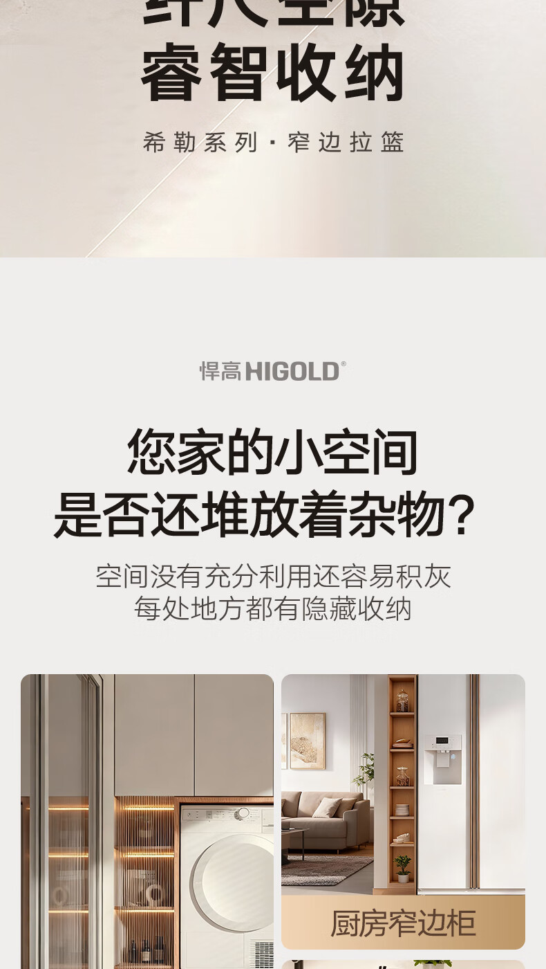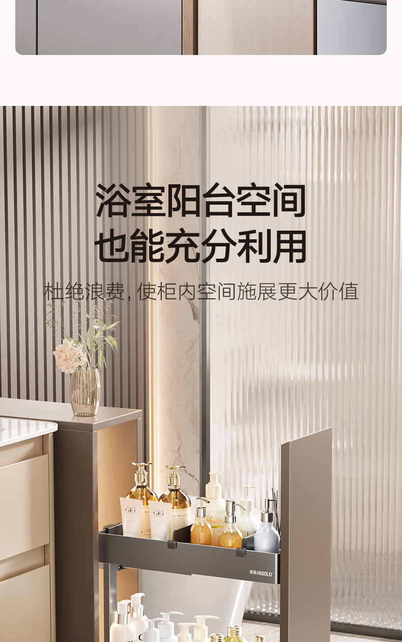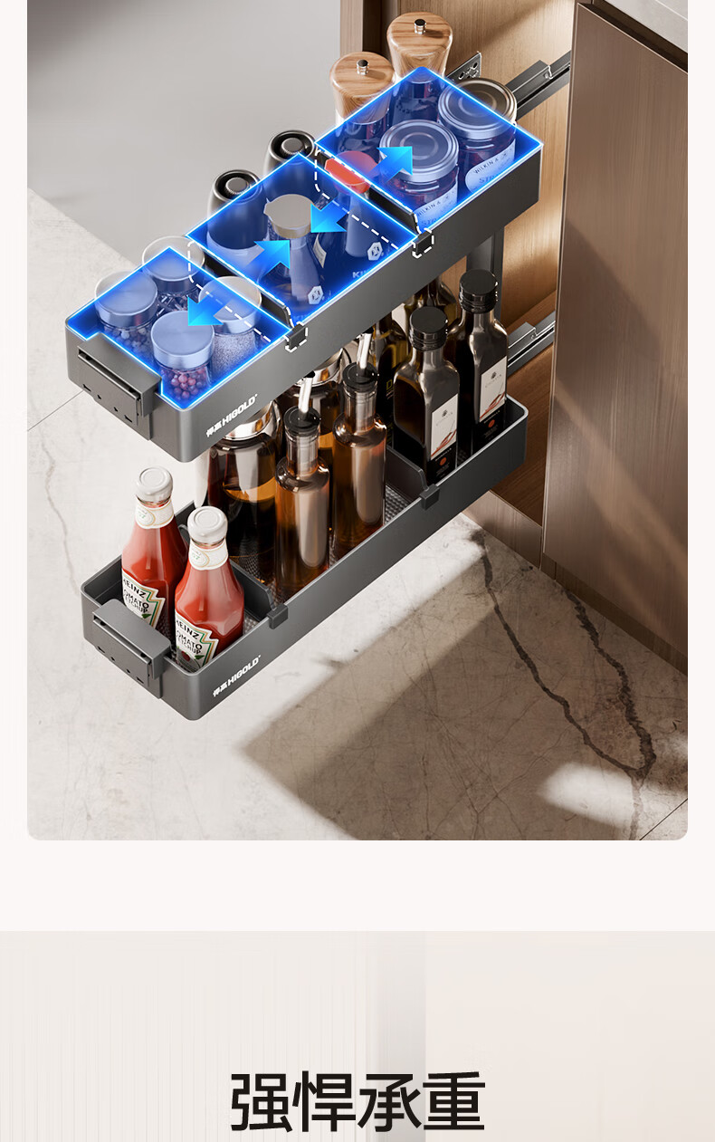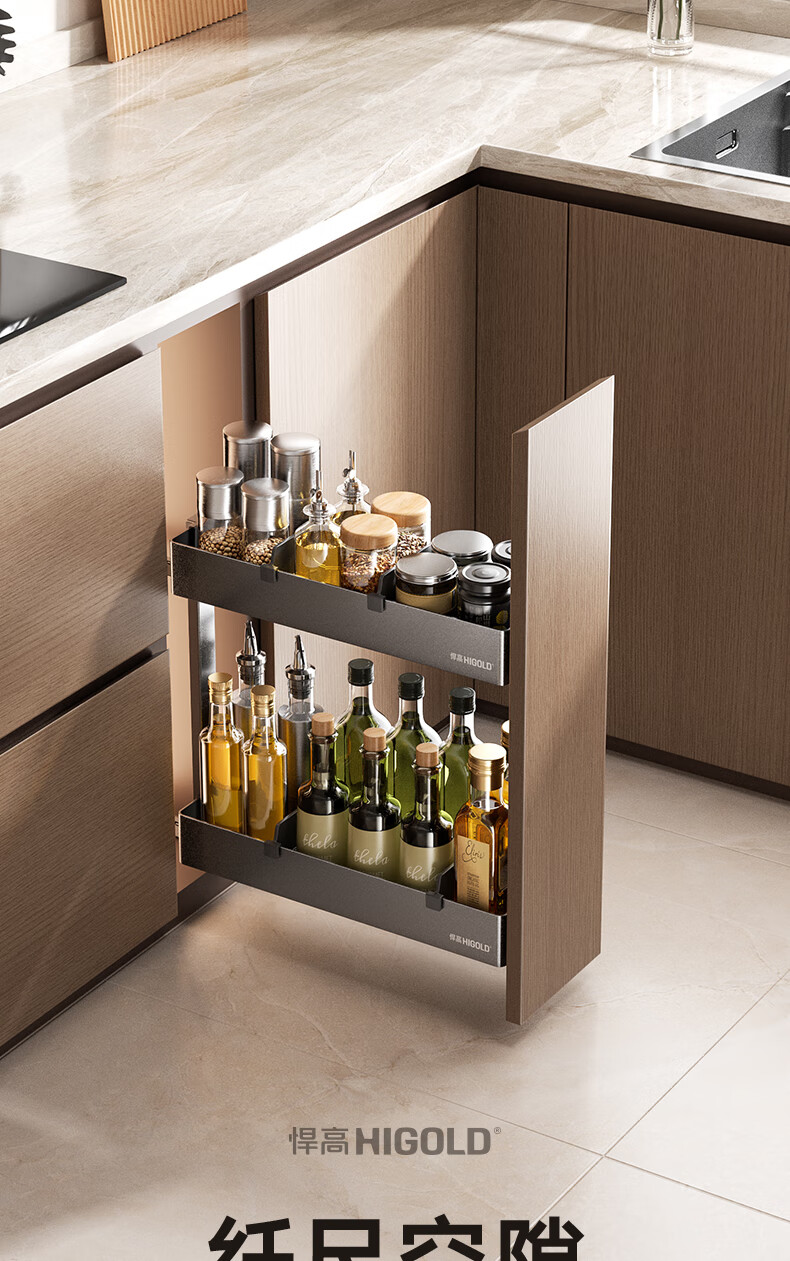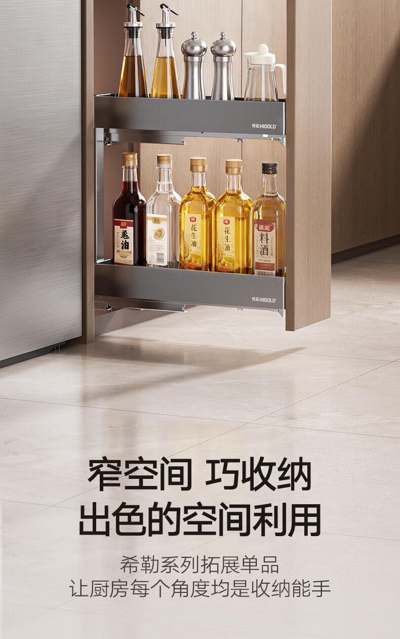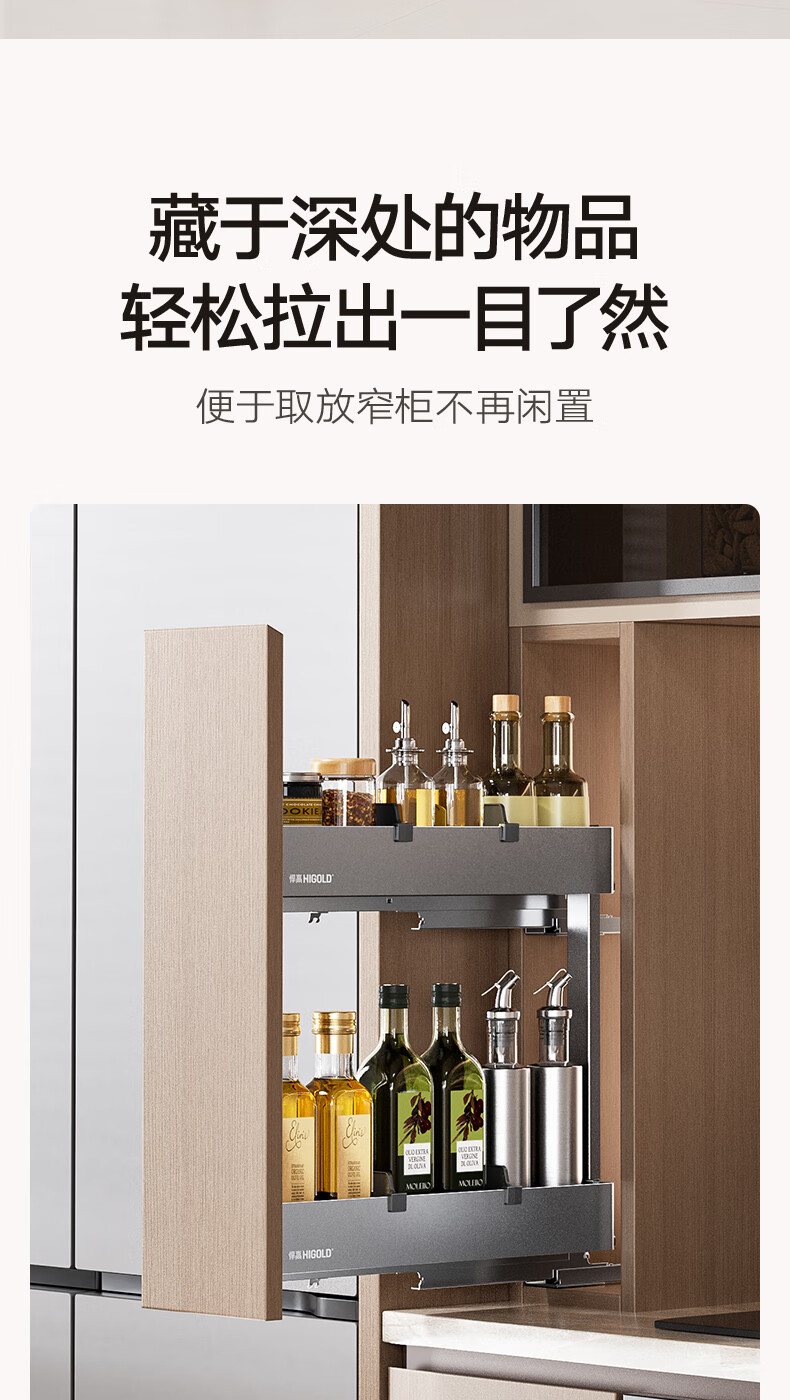 悍高(HIGOLD)厨房拉篮橱柜拉篮抽屉式窄柜拉篮铝合金调味拉篮 200柜窄拉篮-左装 预售