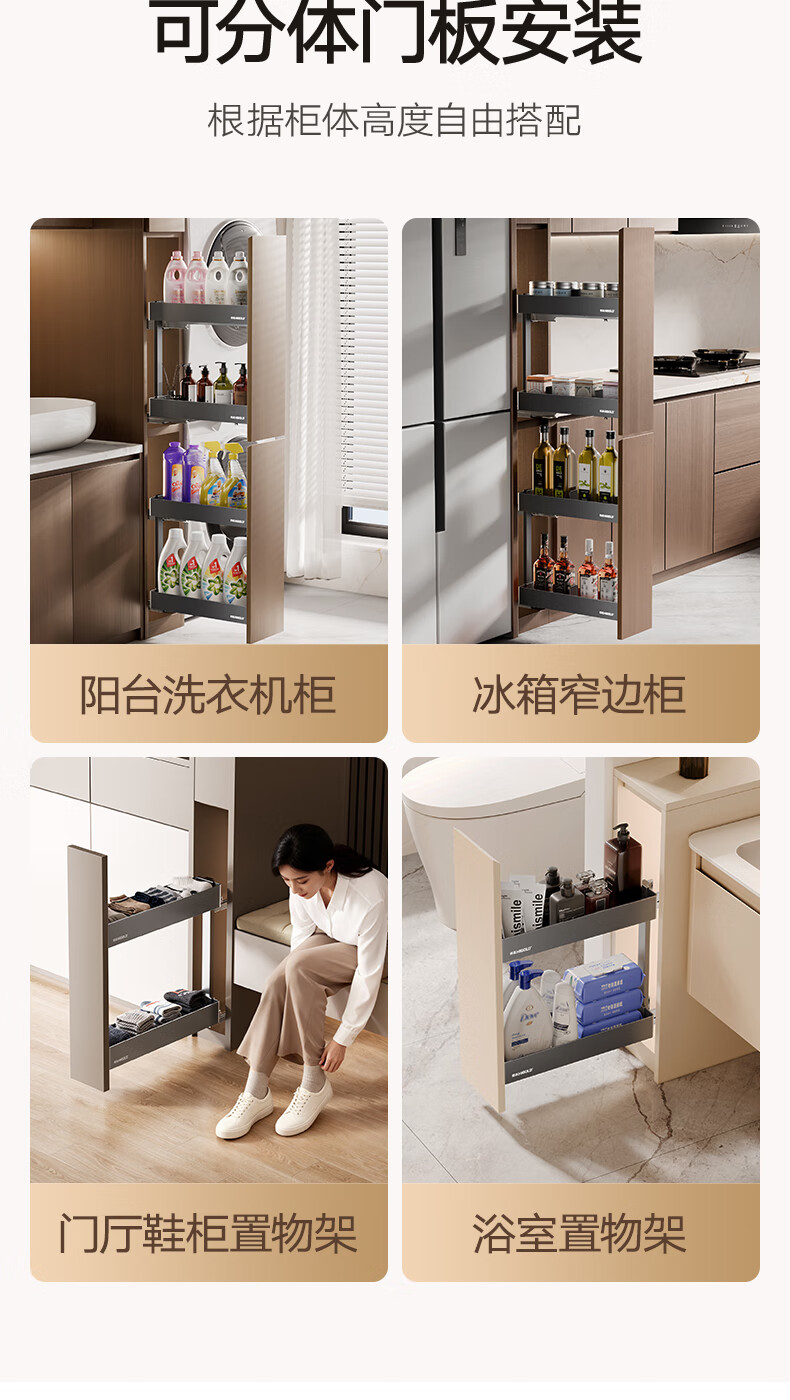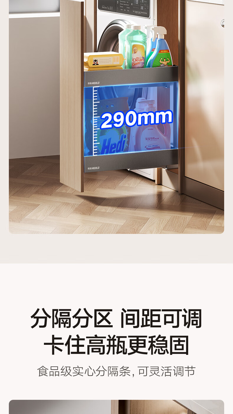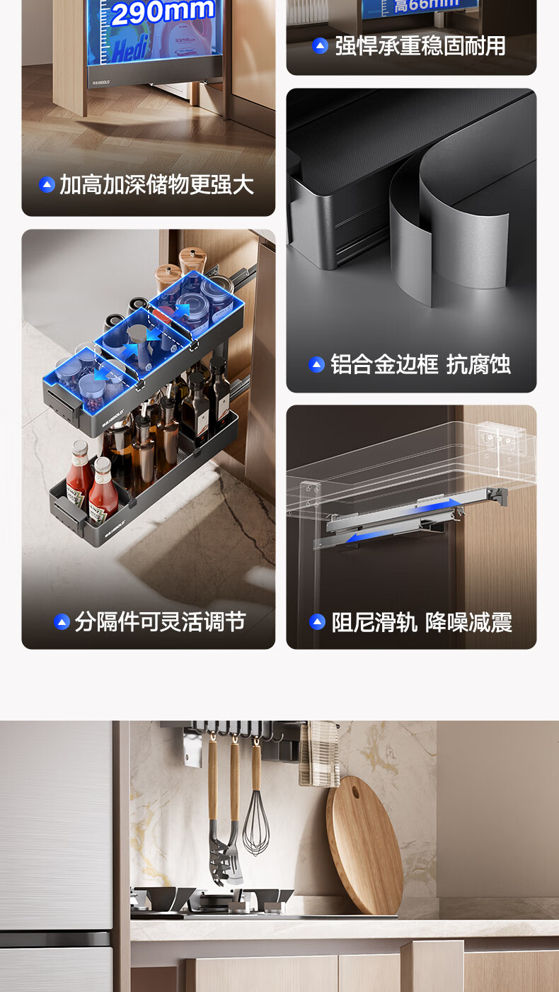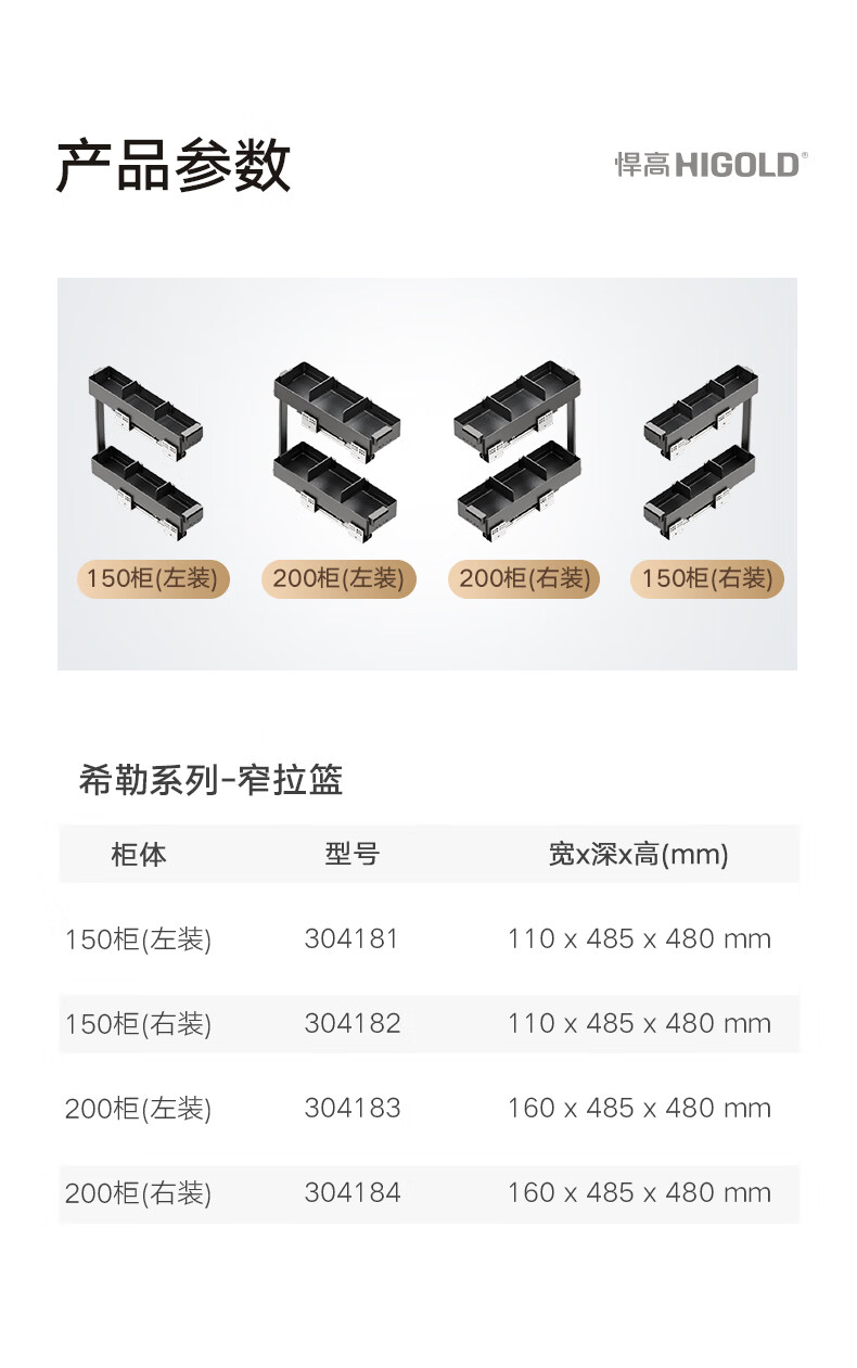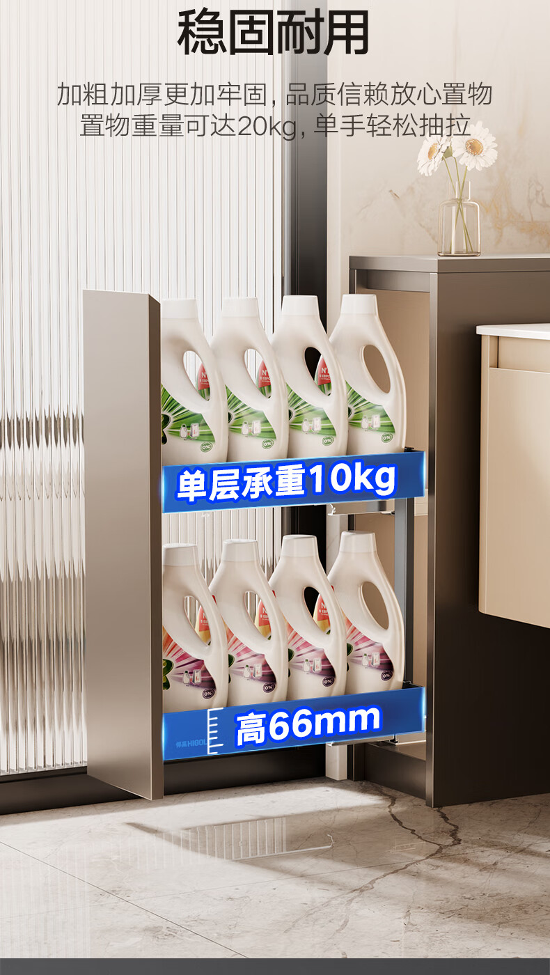 悍高(HIGOLD)厨房拉篮橱柜拉篮抽屉式窄柜拉篮铝合金调味拉篮 200柜窄拉篮-左装 预售