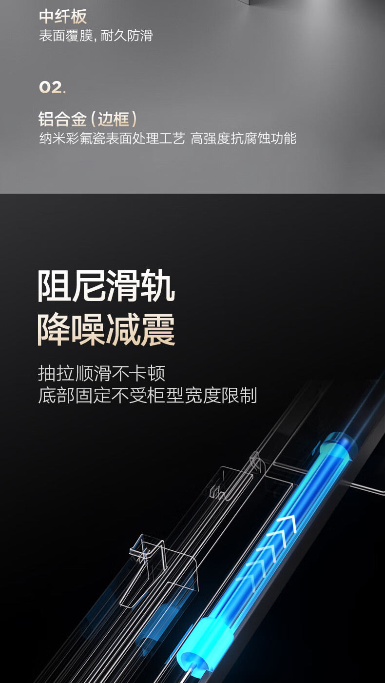 固特(GUTE)拉篮厨房橱柜抽屉式不锈钢厨房碗碟拉篮碗架碗柜调味拉篮双层板状 星空灰双层【700柜】 深度≥440