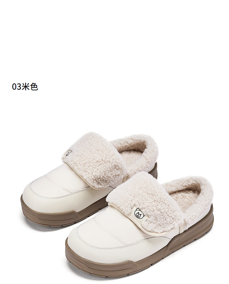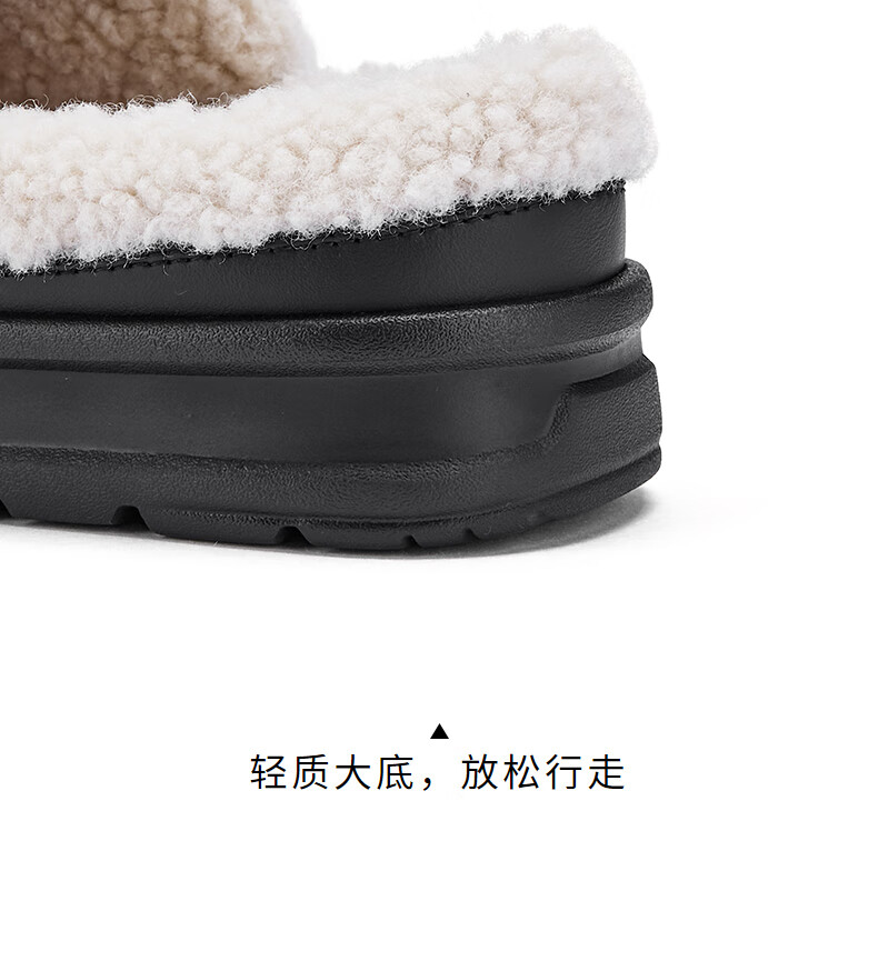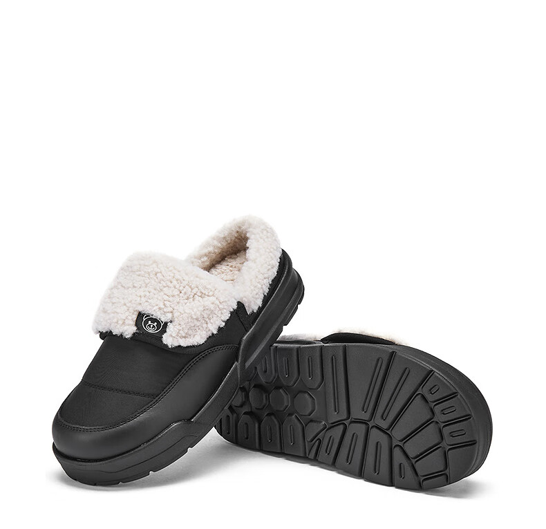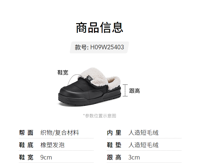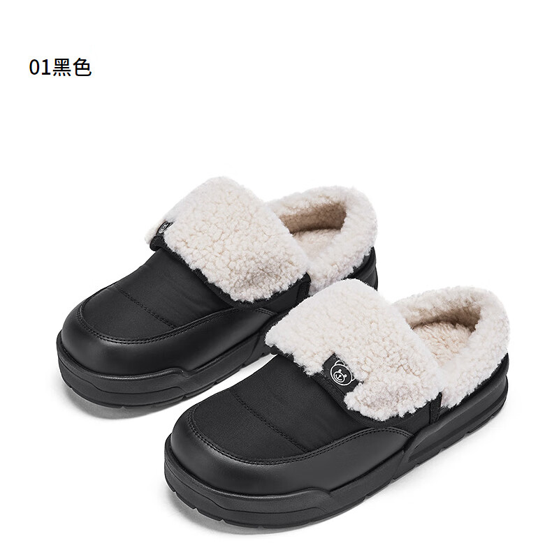 热风(Hotwind)【商场同款】雪地靴女拖鞋2025年冬季新款加绒一脚蹬舒适厚底棉鞋 01黑色 34