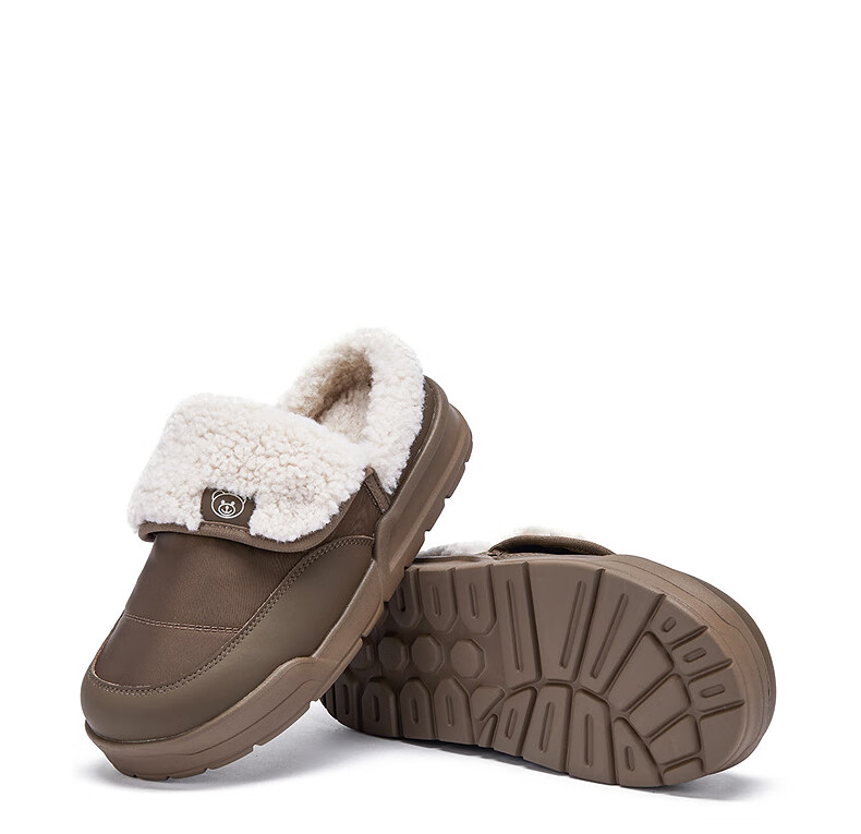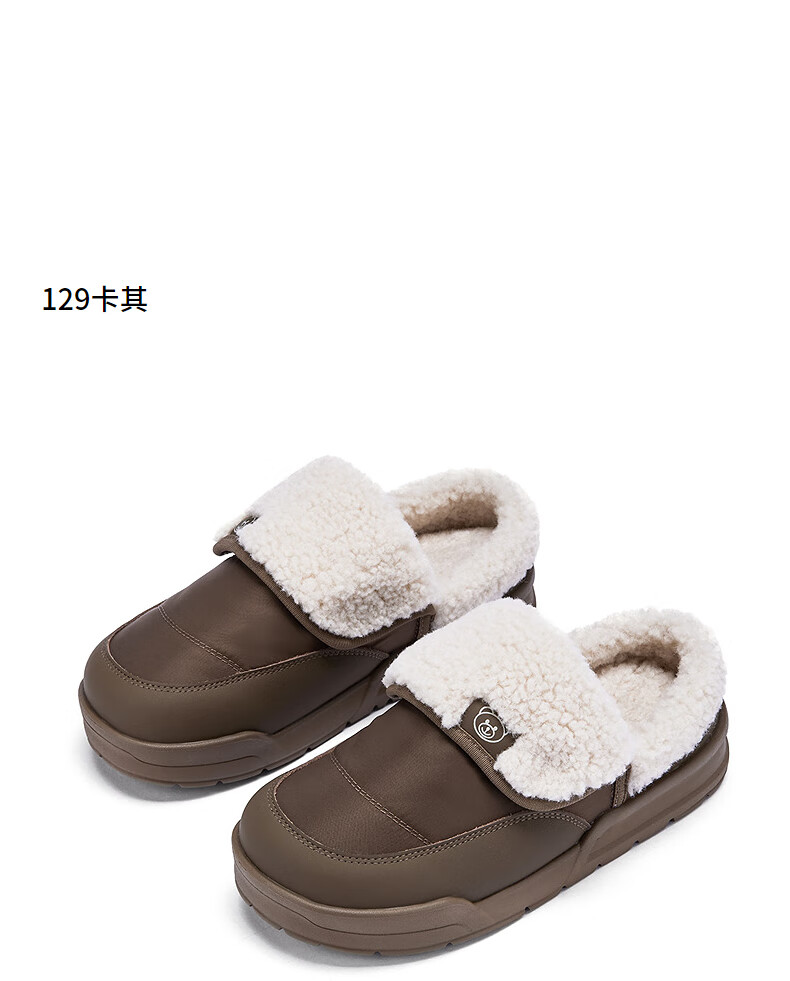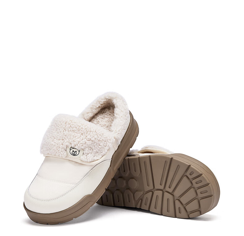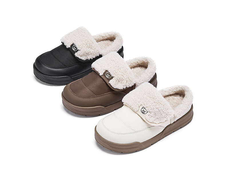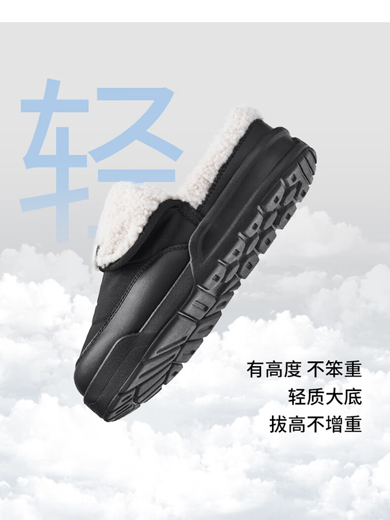 热风(Hotwind)【商场同款】雪地靴女拖鞋2025年冬季新款加绒一脚蹬舒适厚底棉鞋 01黑色 34