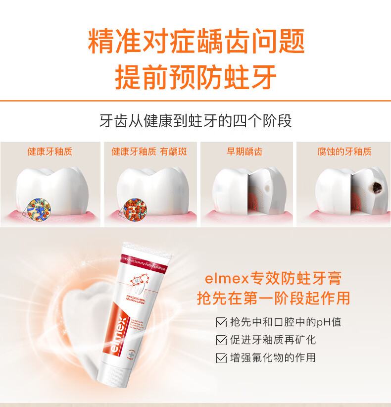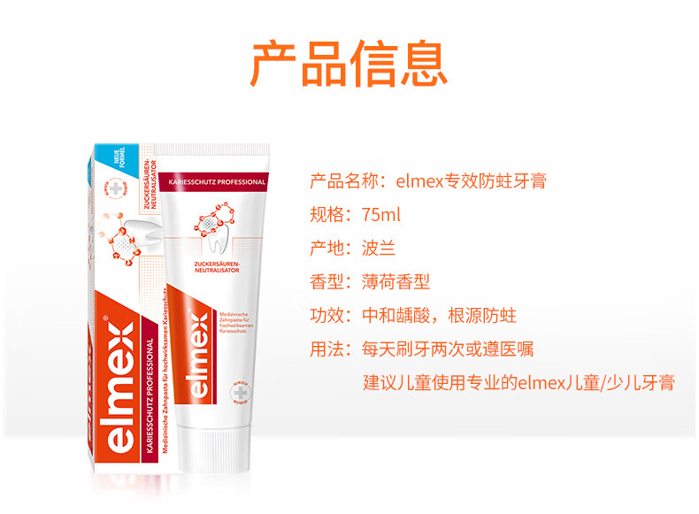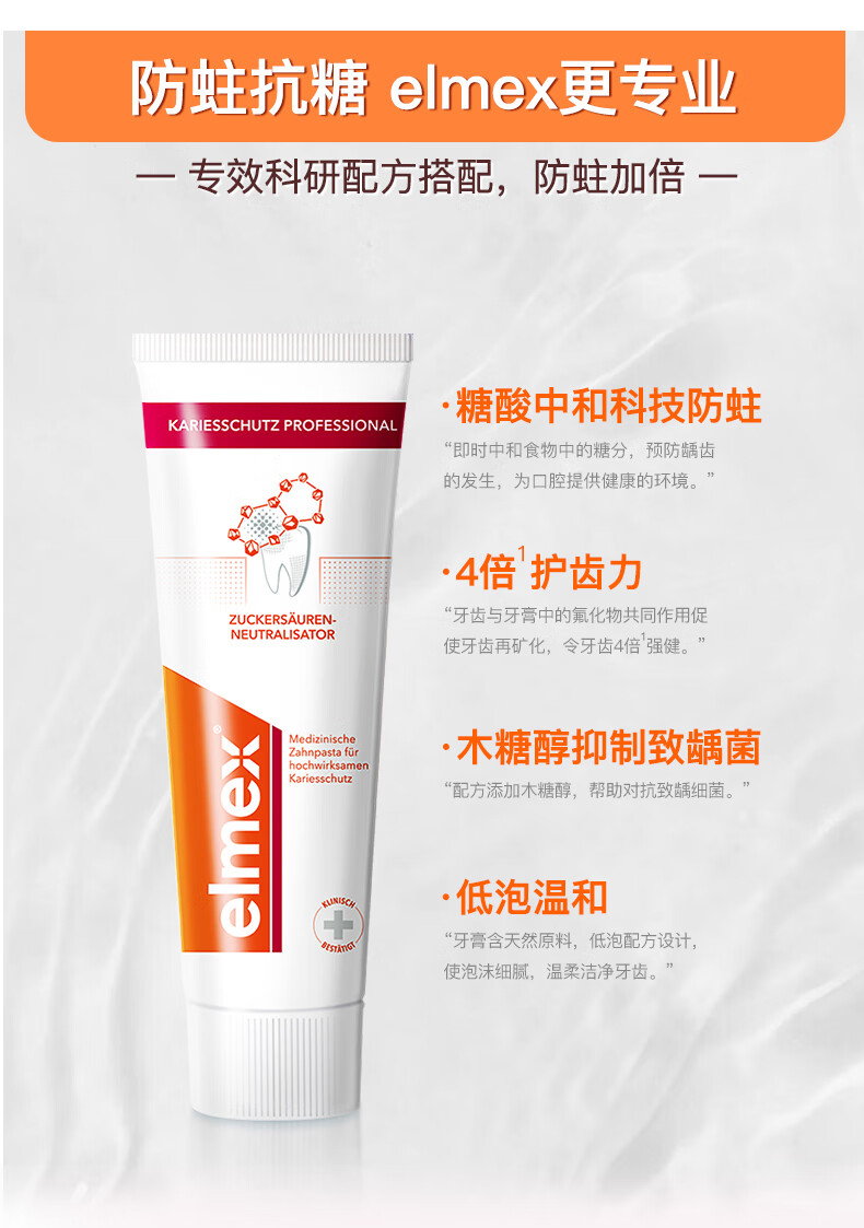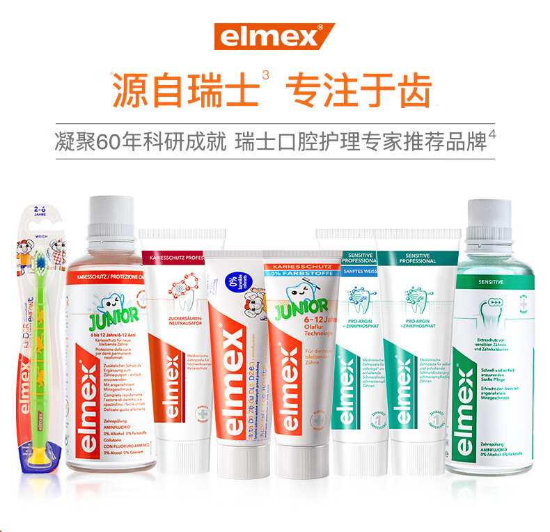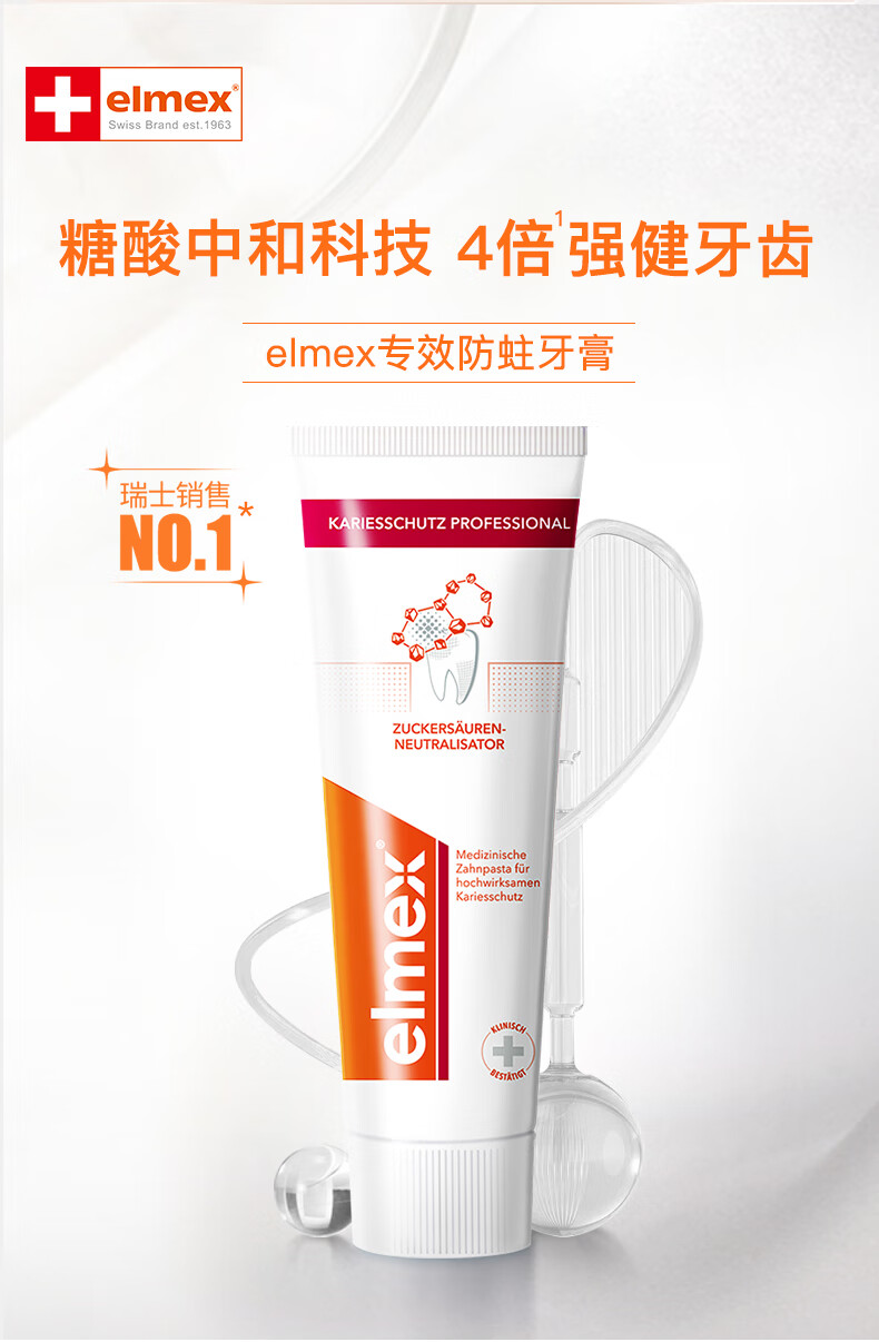 ELMEX艾美适瑞士原装进口成人防蛀牙膏 含氟专效护齿75ml*2 红色